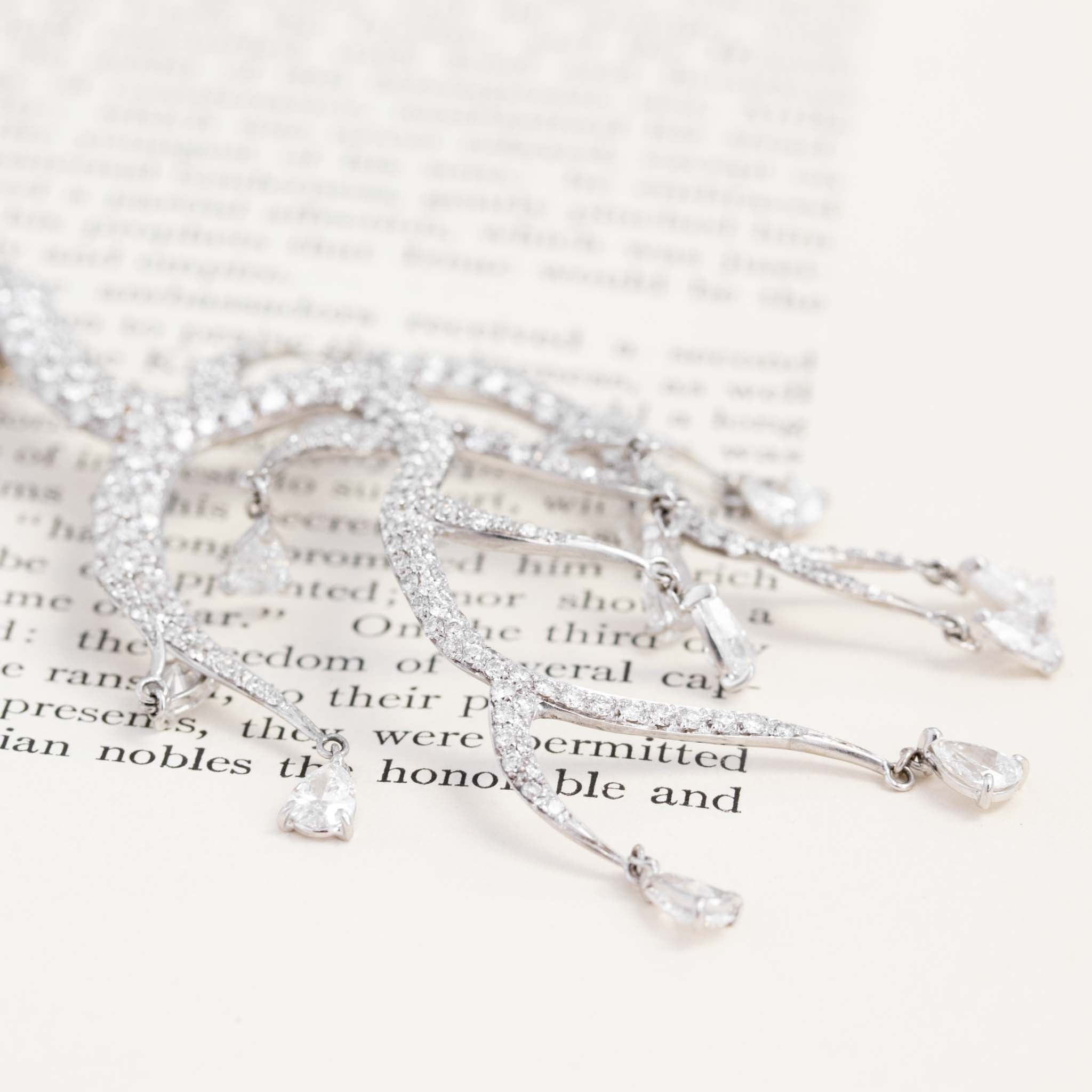 This diamond necklace is absolutely luxe - from the bold look on the neck to the sparkle and beauty of each pear drop that hangs. The “branch” tree form is studded with bright pave diamonds, but the pears that suspend from the bottom of the branches are totally stunning. They articulate in the most delicate and beautiful way, giving you insane sparkle with each movement.