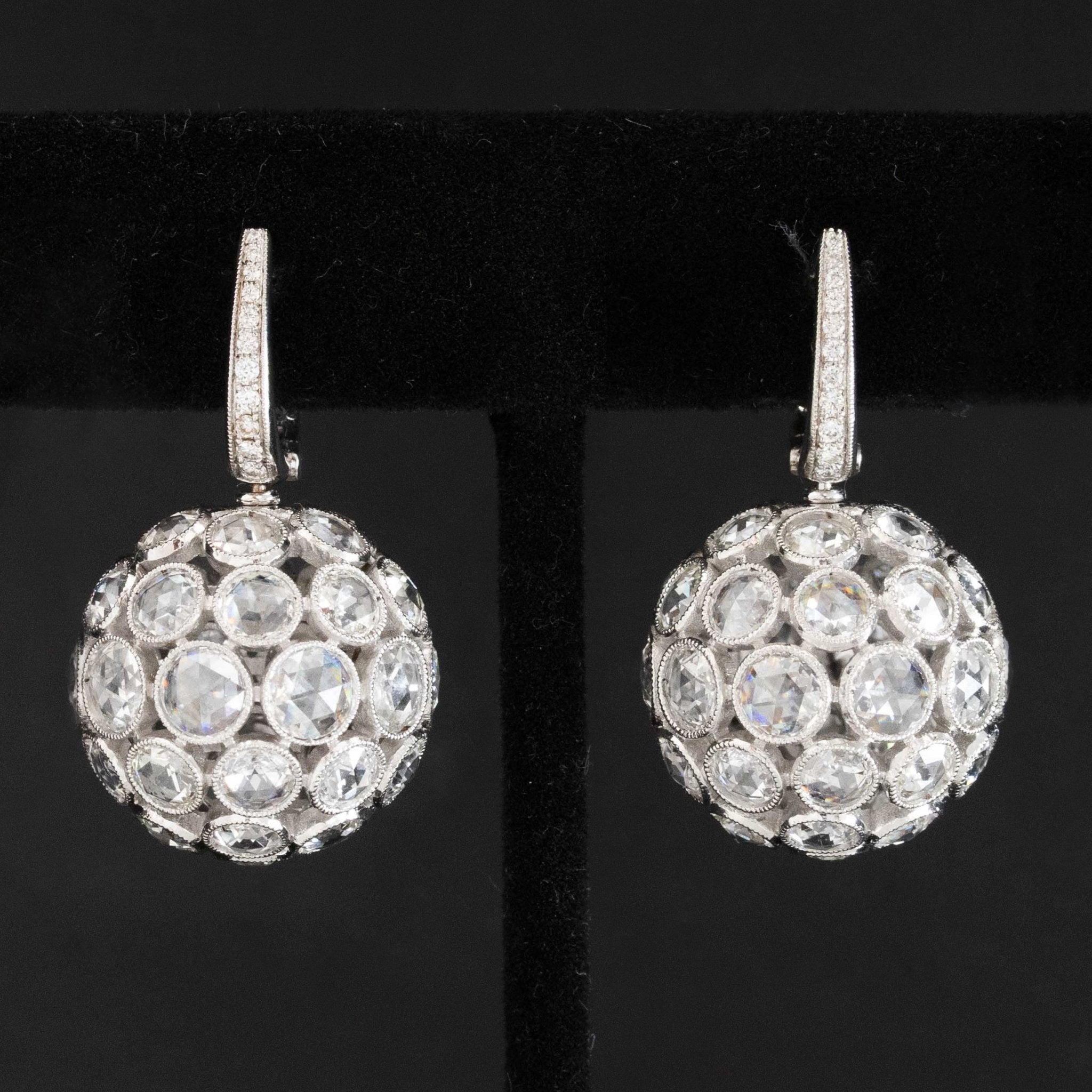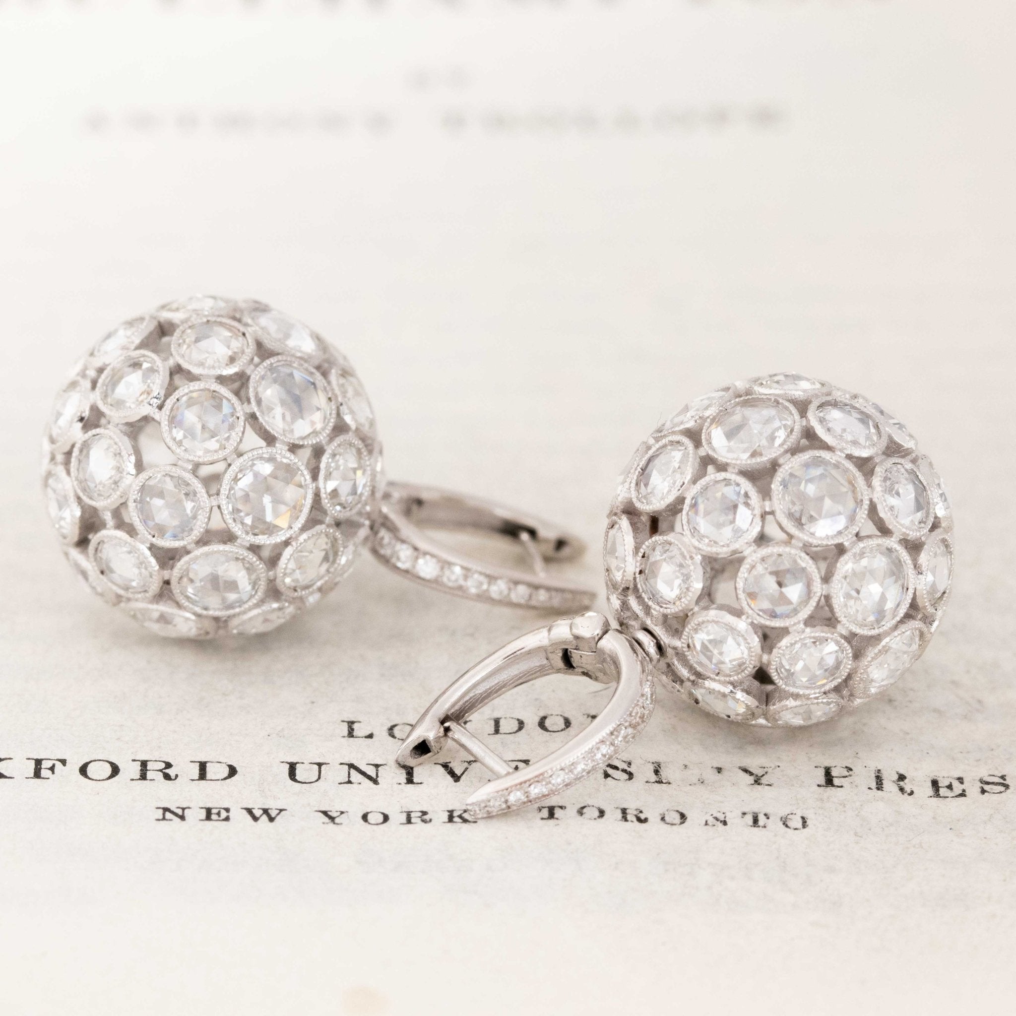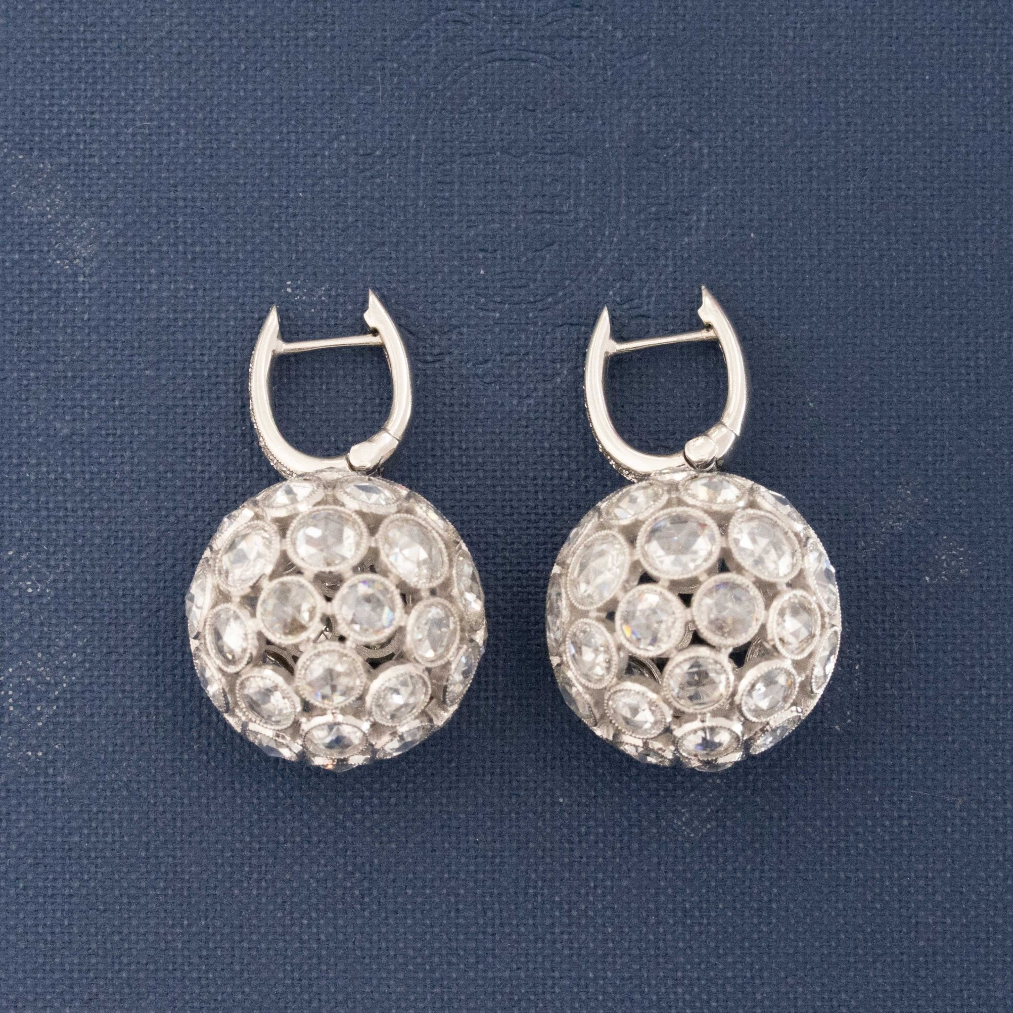 9.84ctw Rose Cut Diamond Disco Ball Earrings