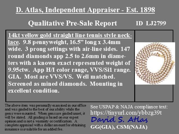 9.95ctw Round Brilliant Cut Diamond Tennis Necklace