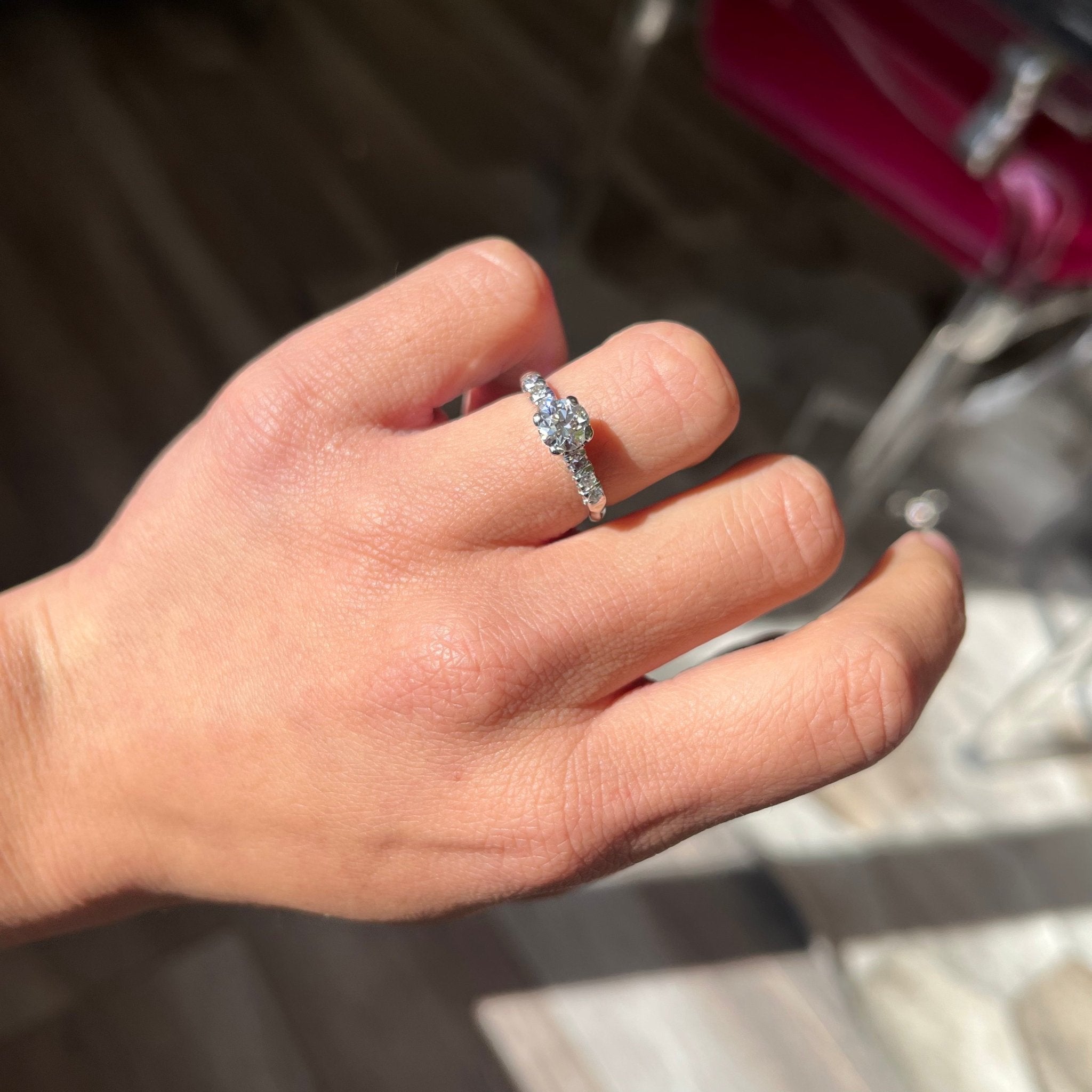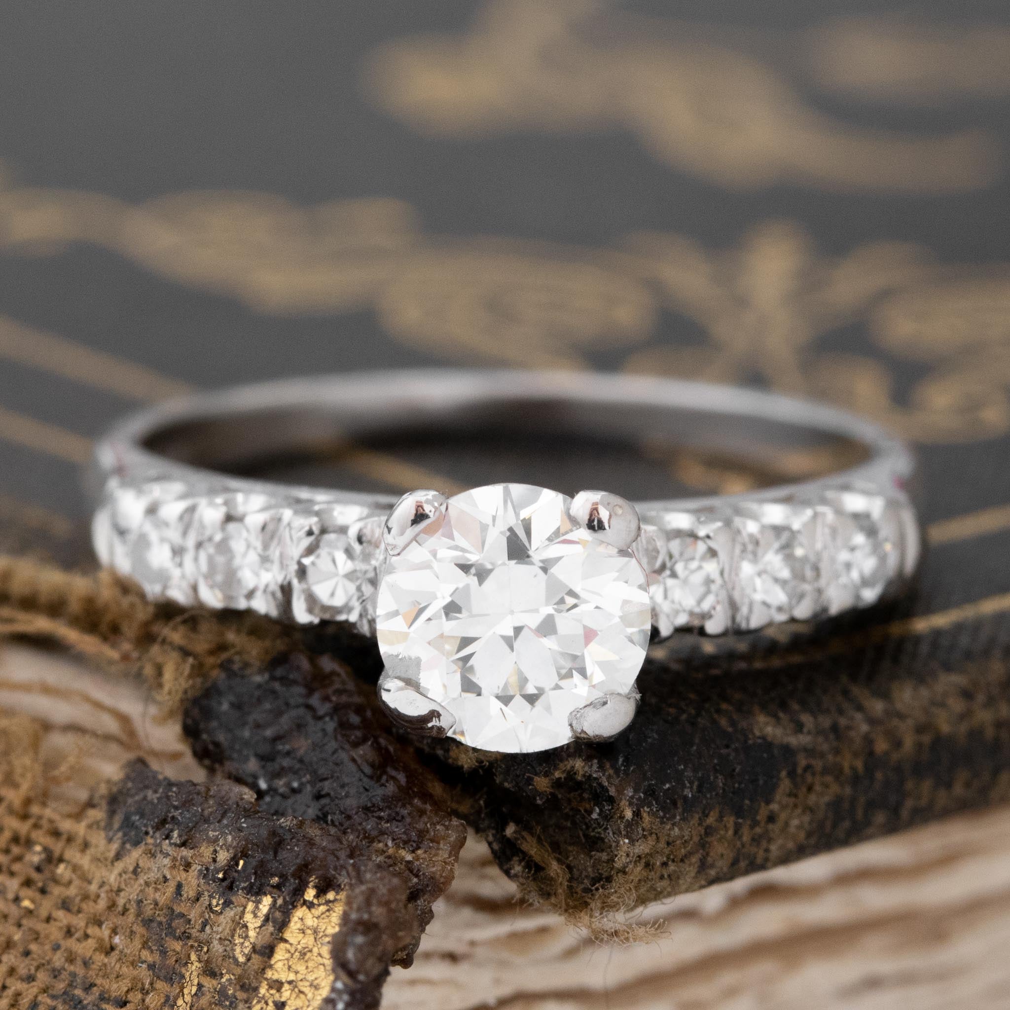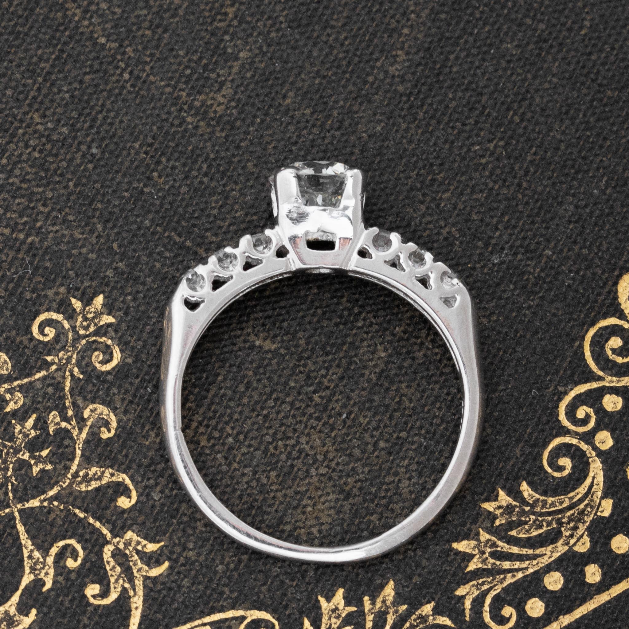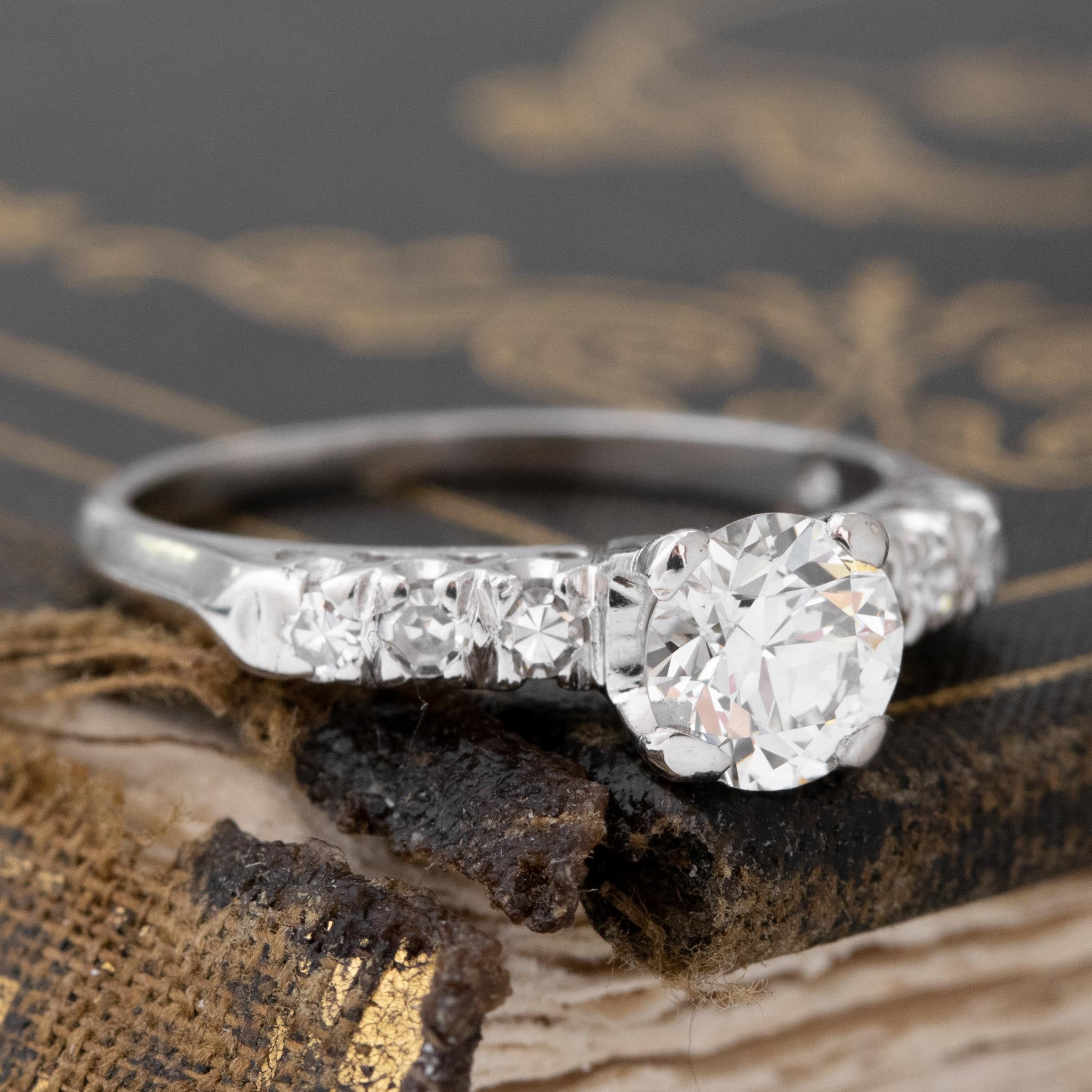 The sweetest antique solitaire that is just beyond charming on the finger! The central .76ct old European cut diamond is blazingly white and prismatic - gorgeous, checkerboard faceting only add to the ring's charm. Single cuts dot the shoulders of the ring for a little added sparkle.