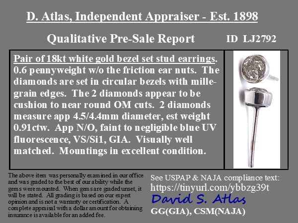 .91ctw Old European Cut Diamond Bezel Stud Earrings