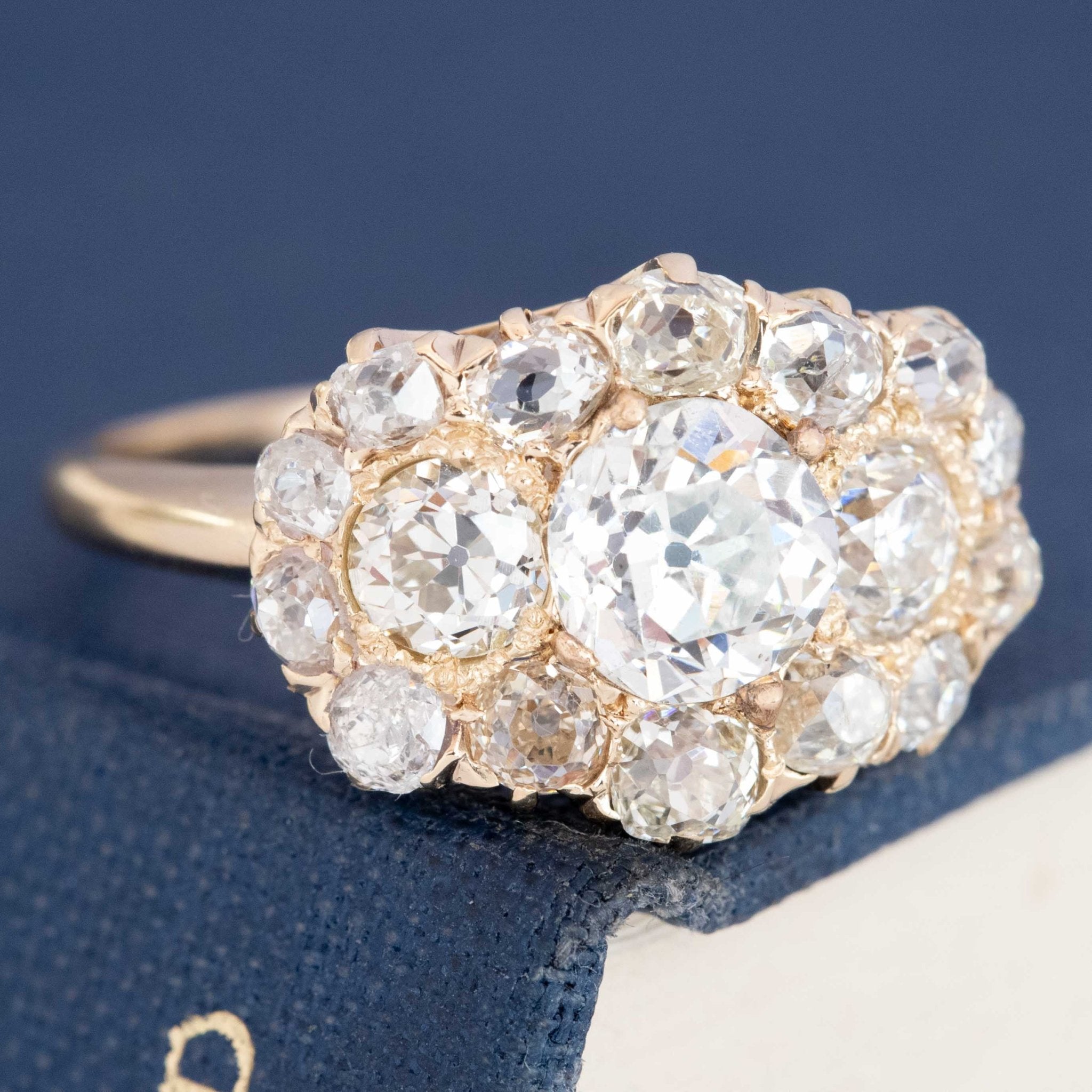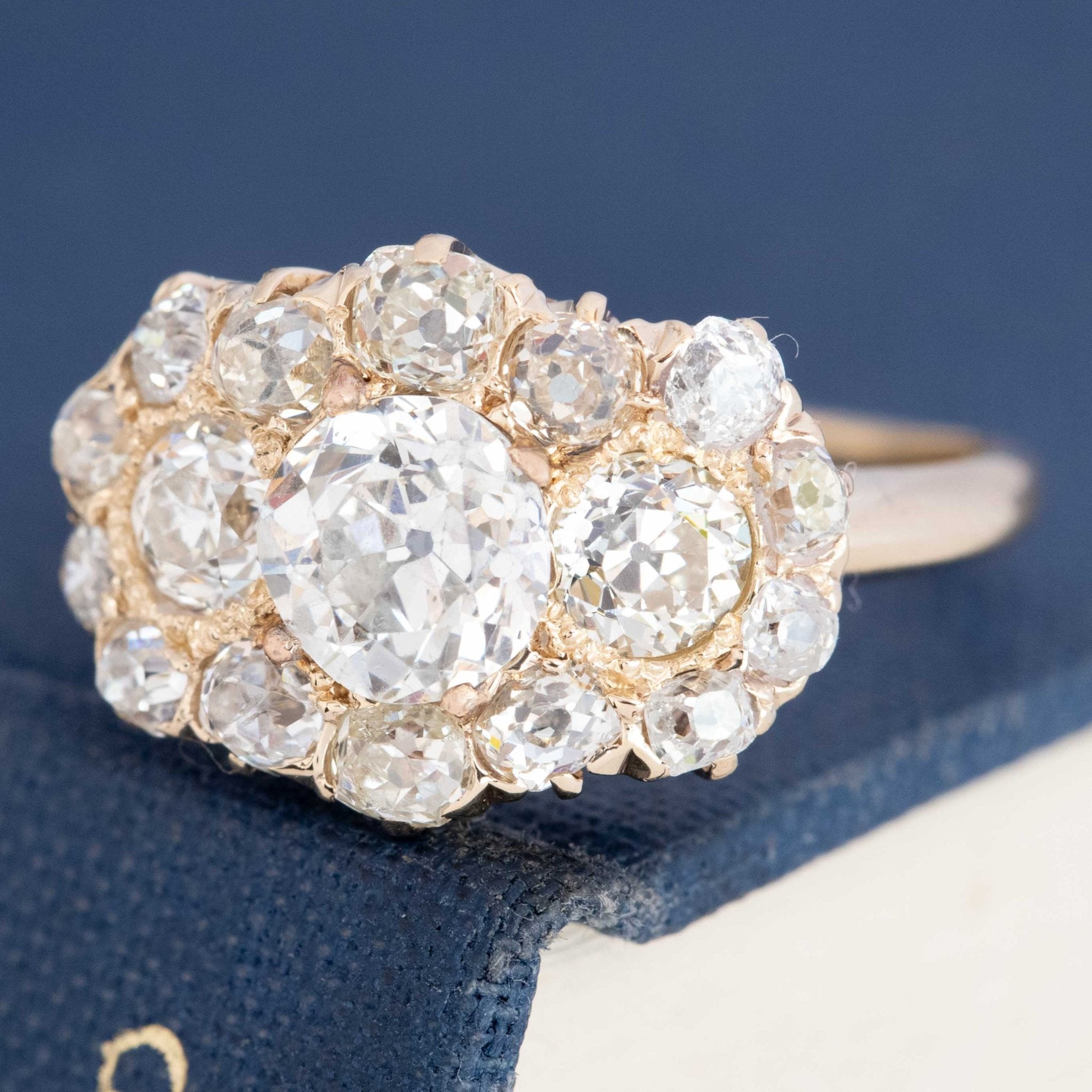 2.50ctw Old Mine Cut Diamond Cluster Ring, GIA
