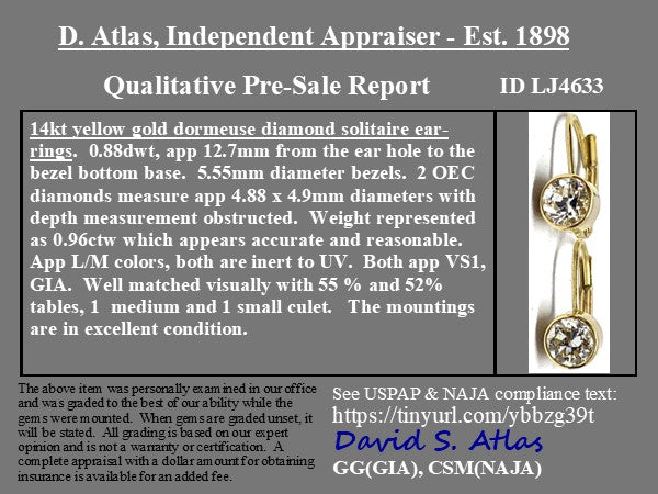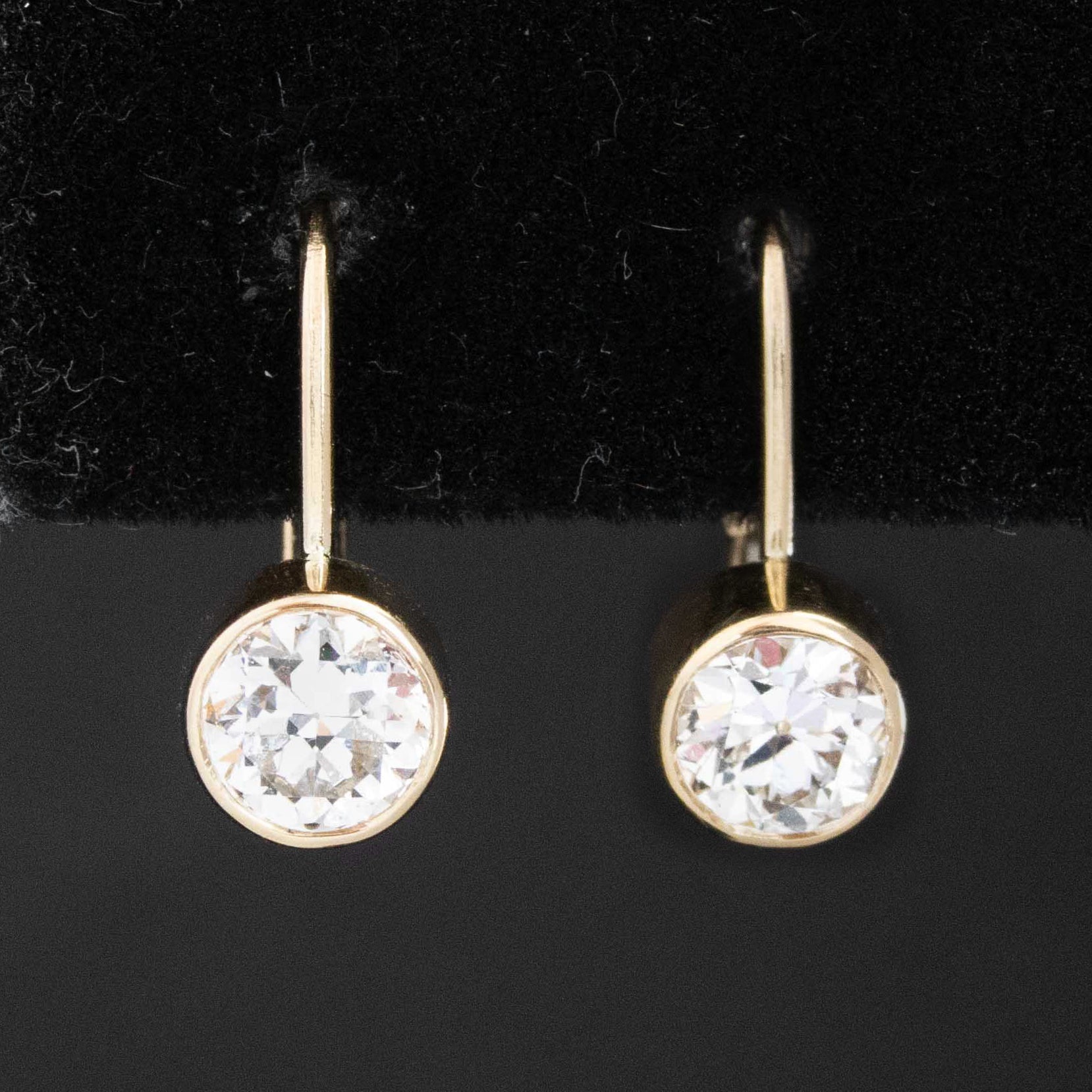 .96ctw Old European Cut Diamond Bezel Drop Earrings