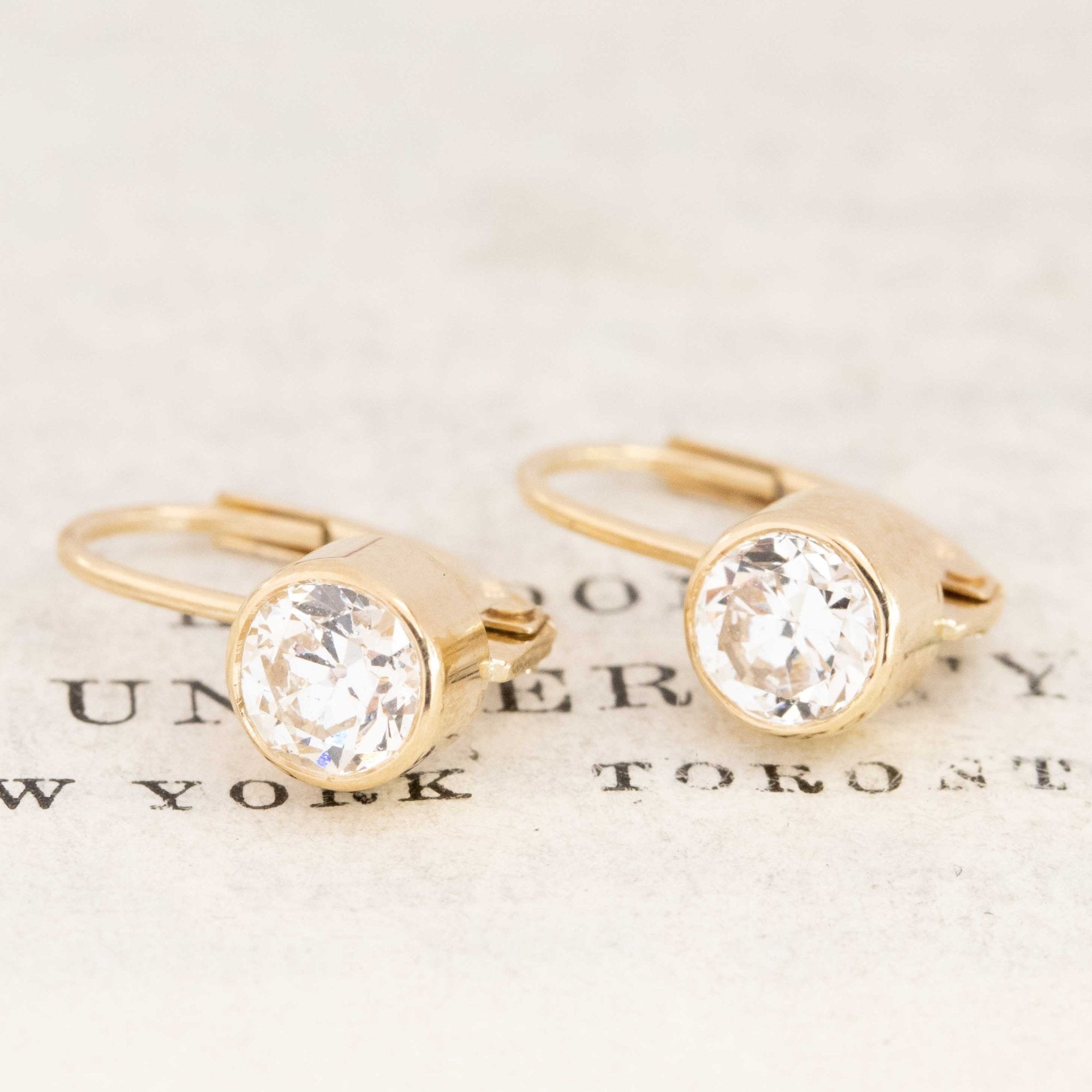 A gorgeous pair of OECs set in simple and timeless bezels with lever backs. Truly the perfect go-to pair of earrings for all day, all night wear. The diamonds are gorgeous and bright - sparkly little buggers!