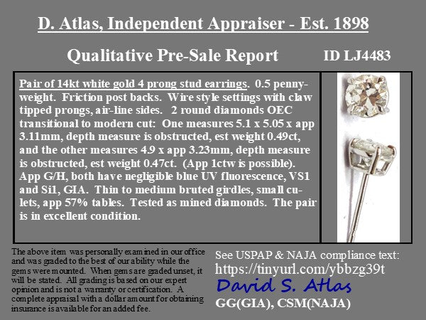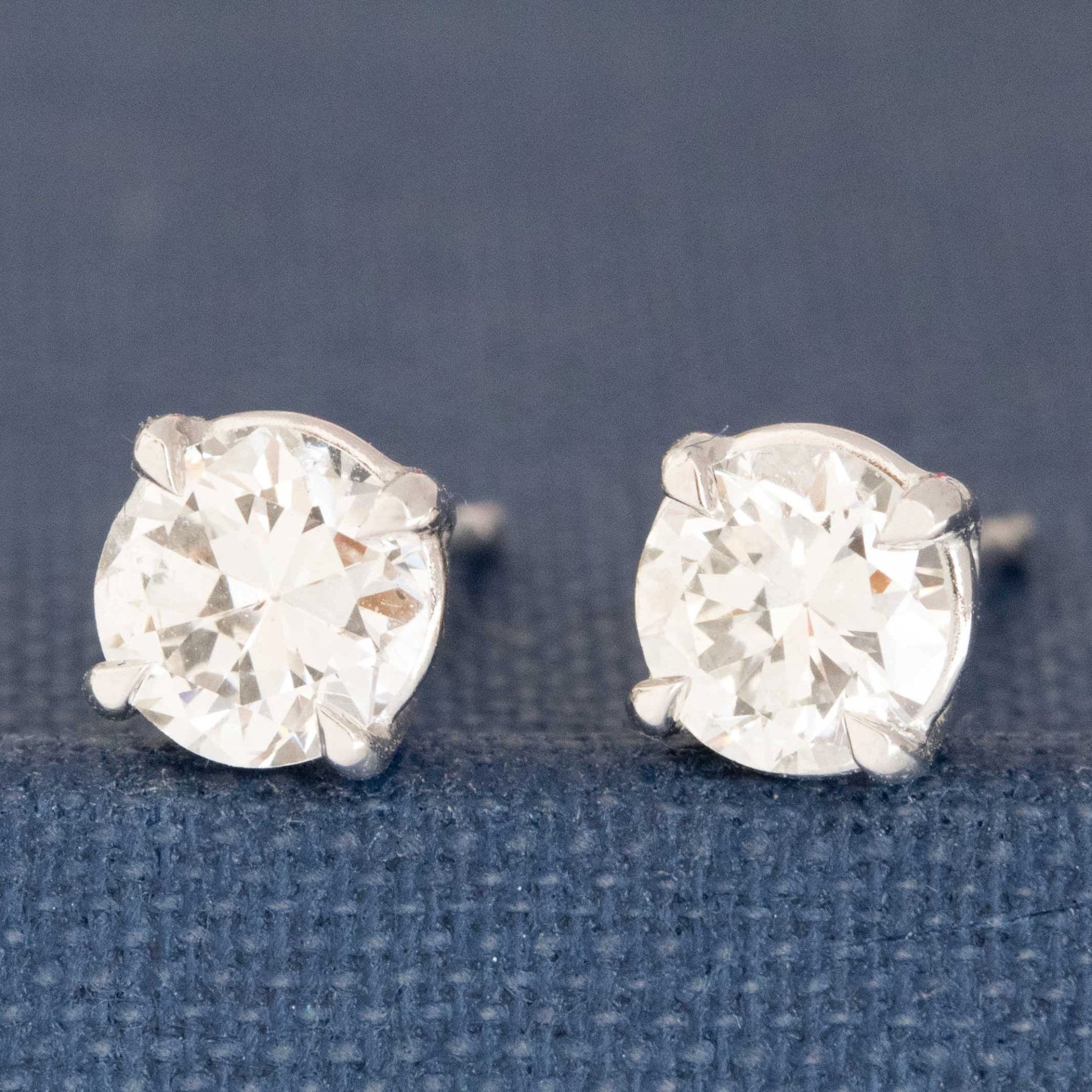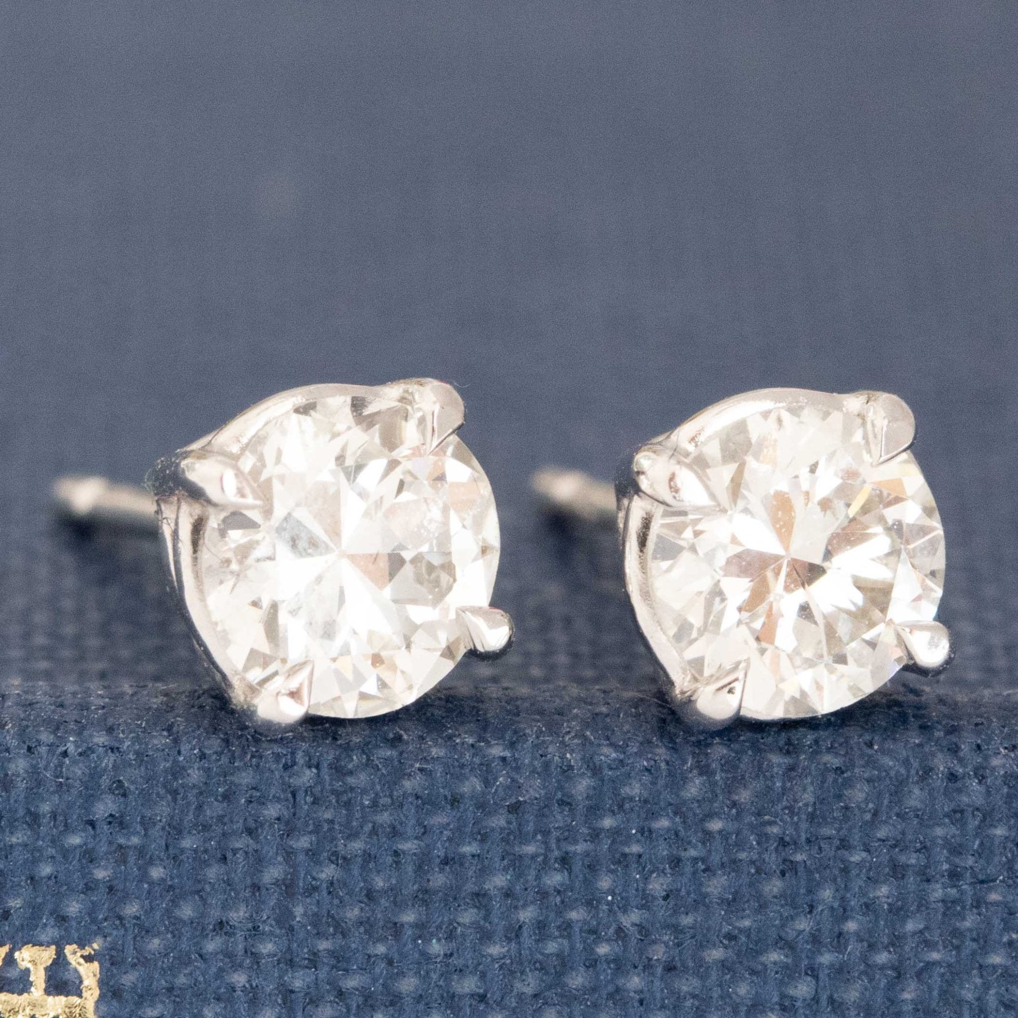 Nothing more classic and timeless than a pair of stud earrings? Set in 14kt white gold, the diamonds (estimated to be G/H colors) are super bright, with really white face up! Wonderful presence on the lobes.
