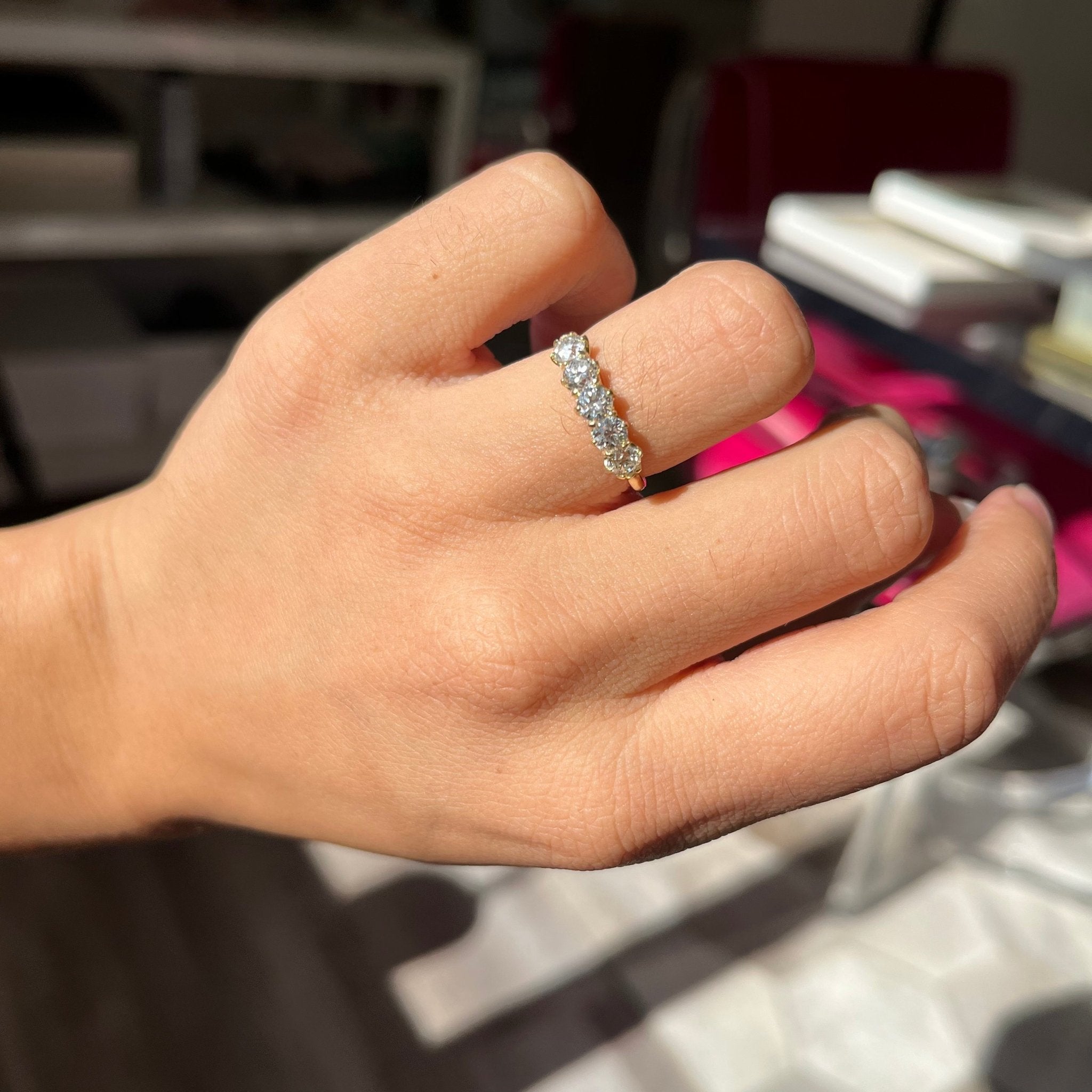 These are 5 perfectly matched OECs, and we love the slightly more dainty vibe! These bright and white diamonds offer up that flowery facet pattern and symmetric charm I find so hard to resist - sparkly little stones with so much personality and charm to them. Set in our signature setting with a swoopy gallery which allows tons of light in!
