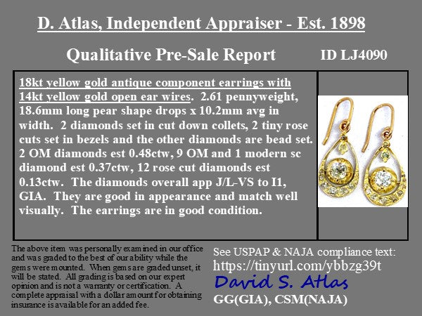 .98ctw Antique Old Cut Diamond Drop Earrings