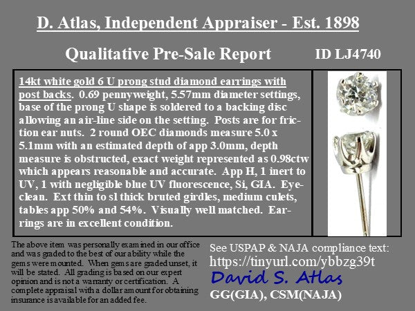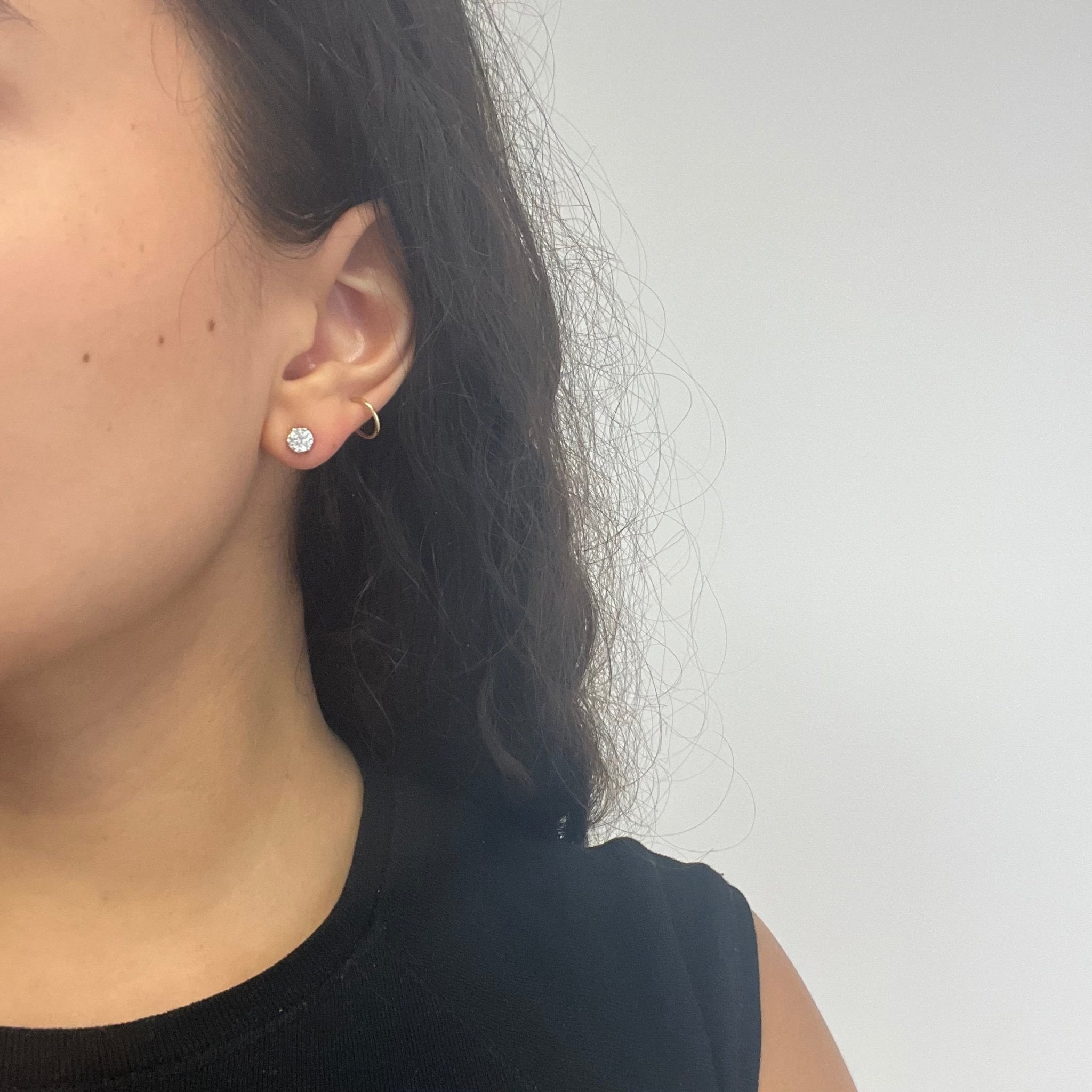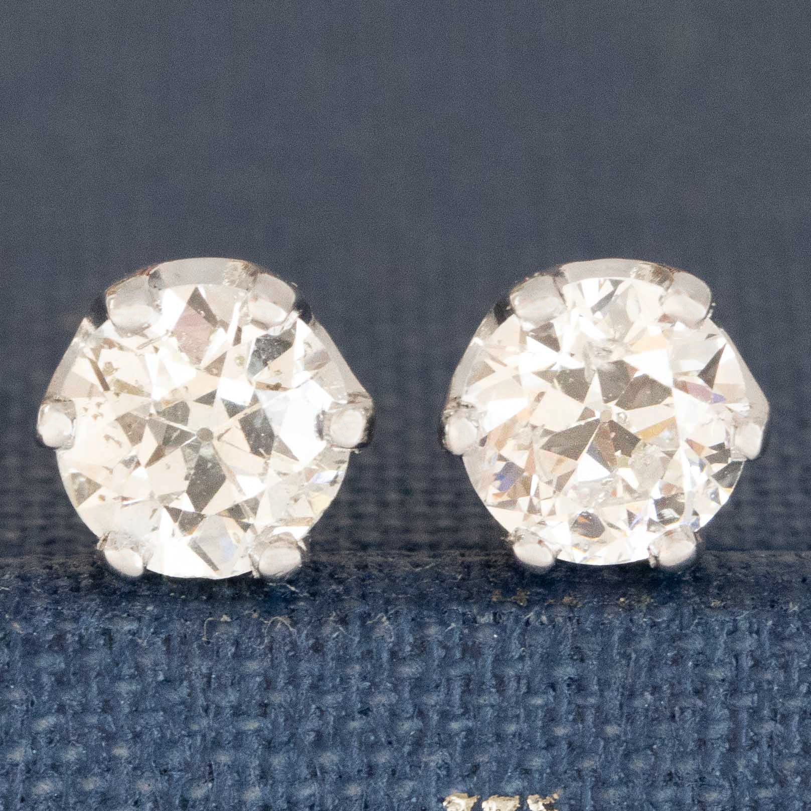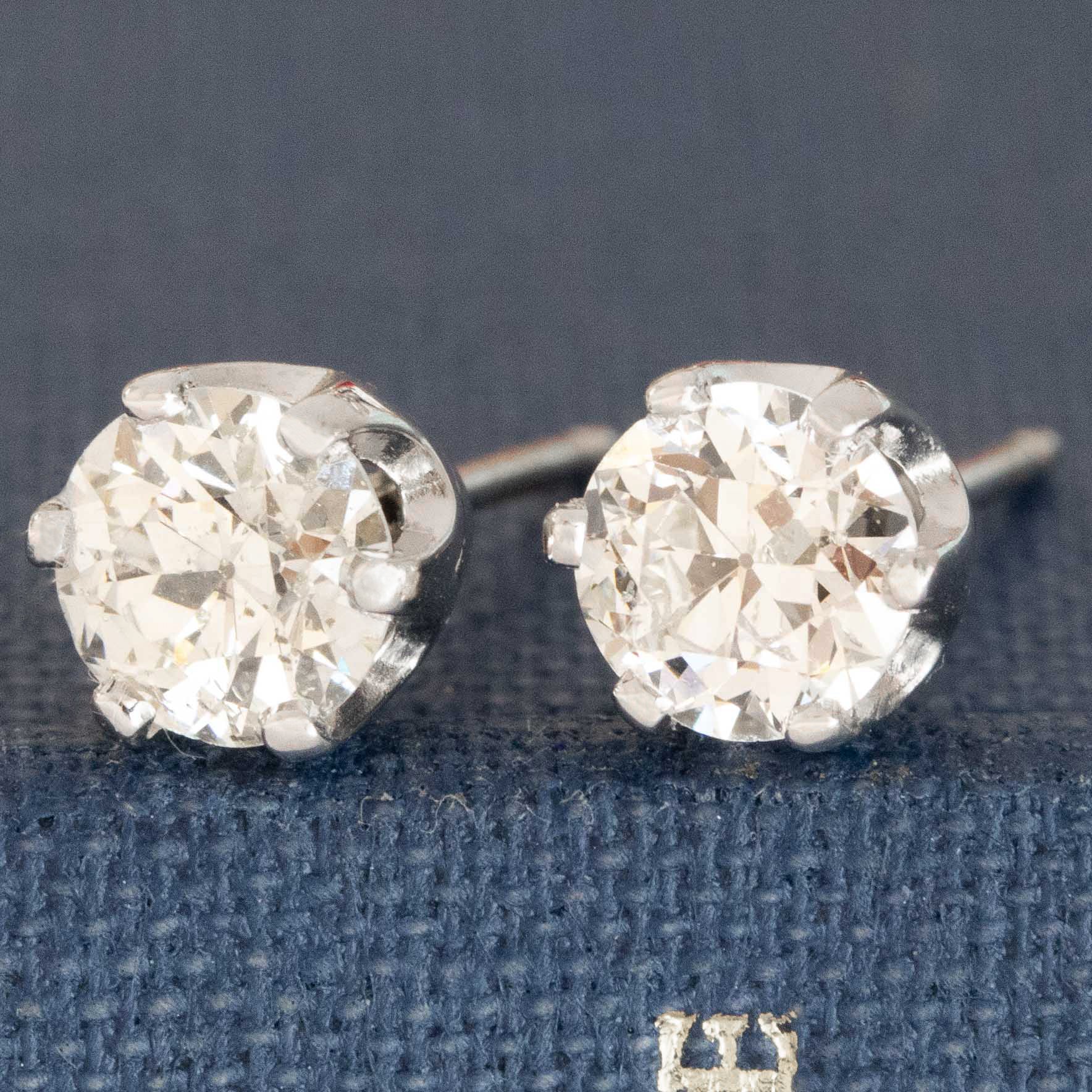 A great go-to pair of earrings for daily wear! The old European cut diamonds are bright and sparkly and are like little disco balls on the ears! A classic, with the look of over half carats each.