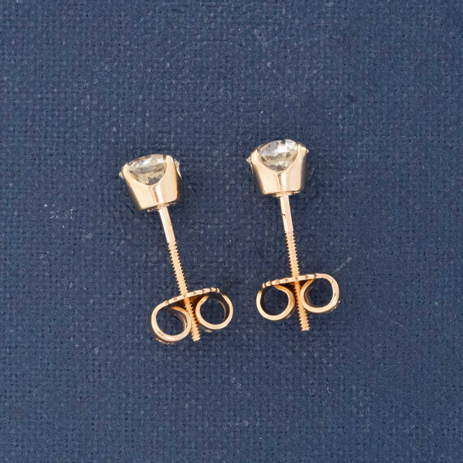 Four-prong Old Euro cut diamond studs, sitting in simple baskets with screw back posts. Perfect for those who wish to put them on and never take them off, they're sparkly little disco balls which we find to be so charming.