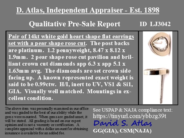.99ctw Pear Rose Cut Diamond Heart Shaped Stud Earrings