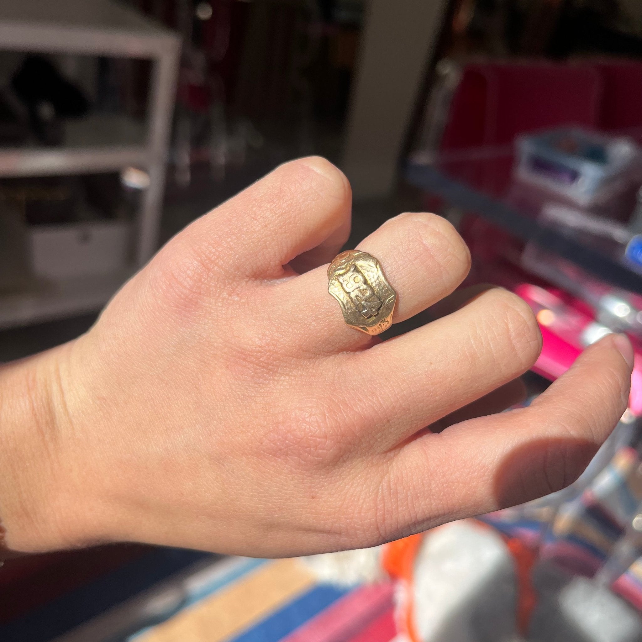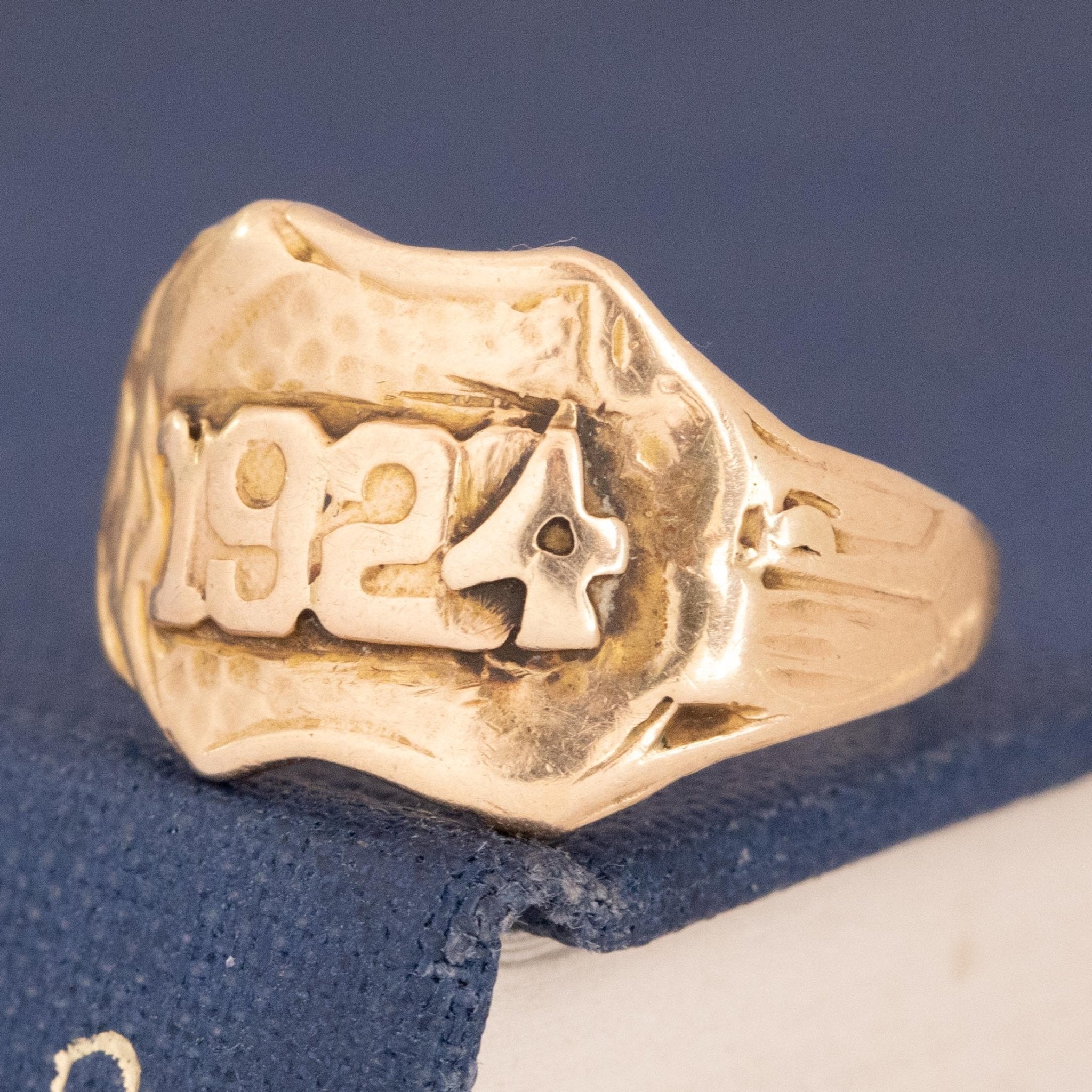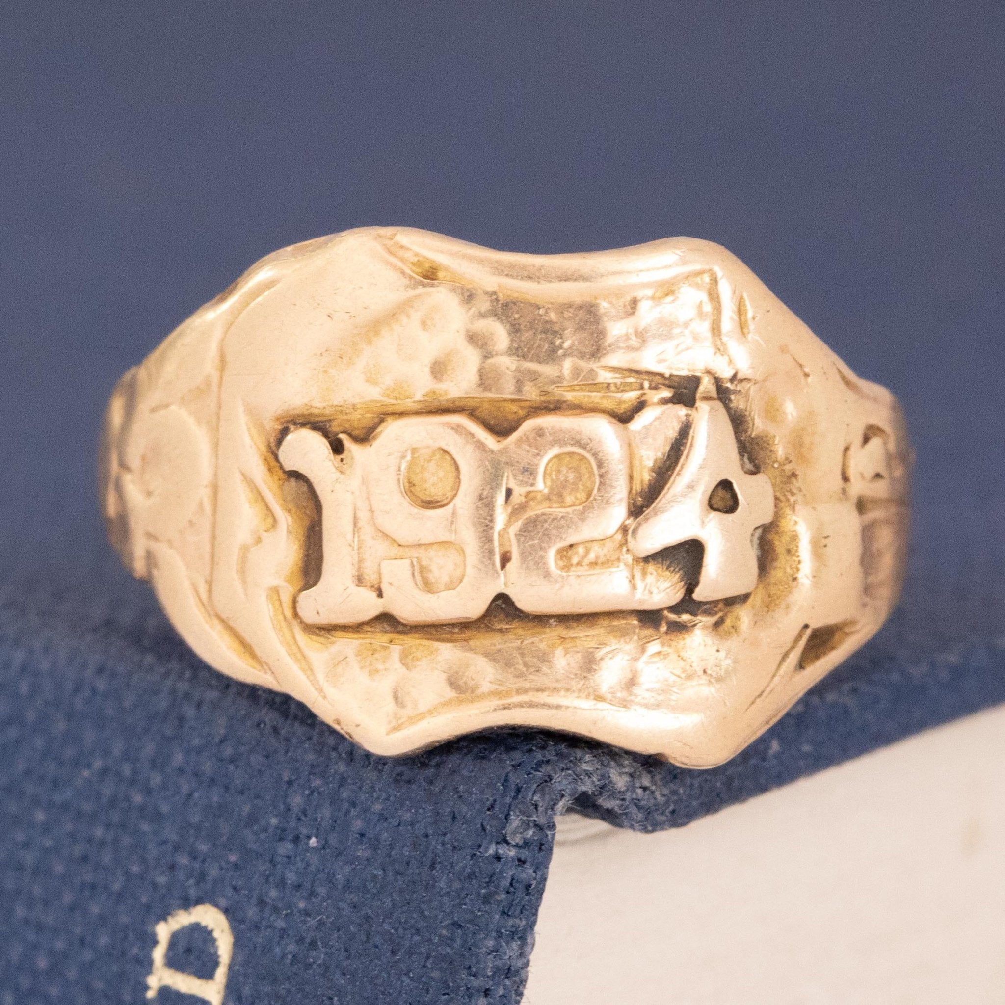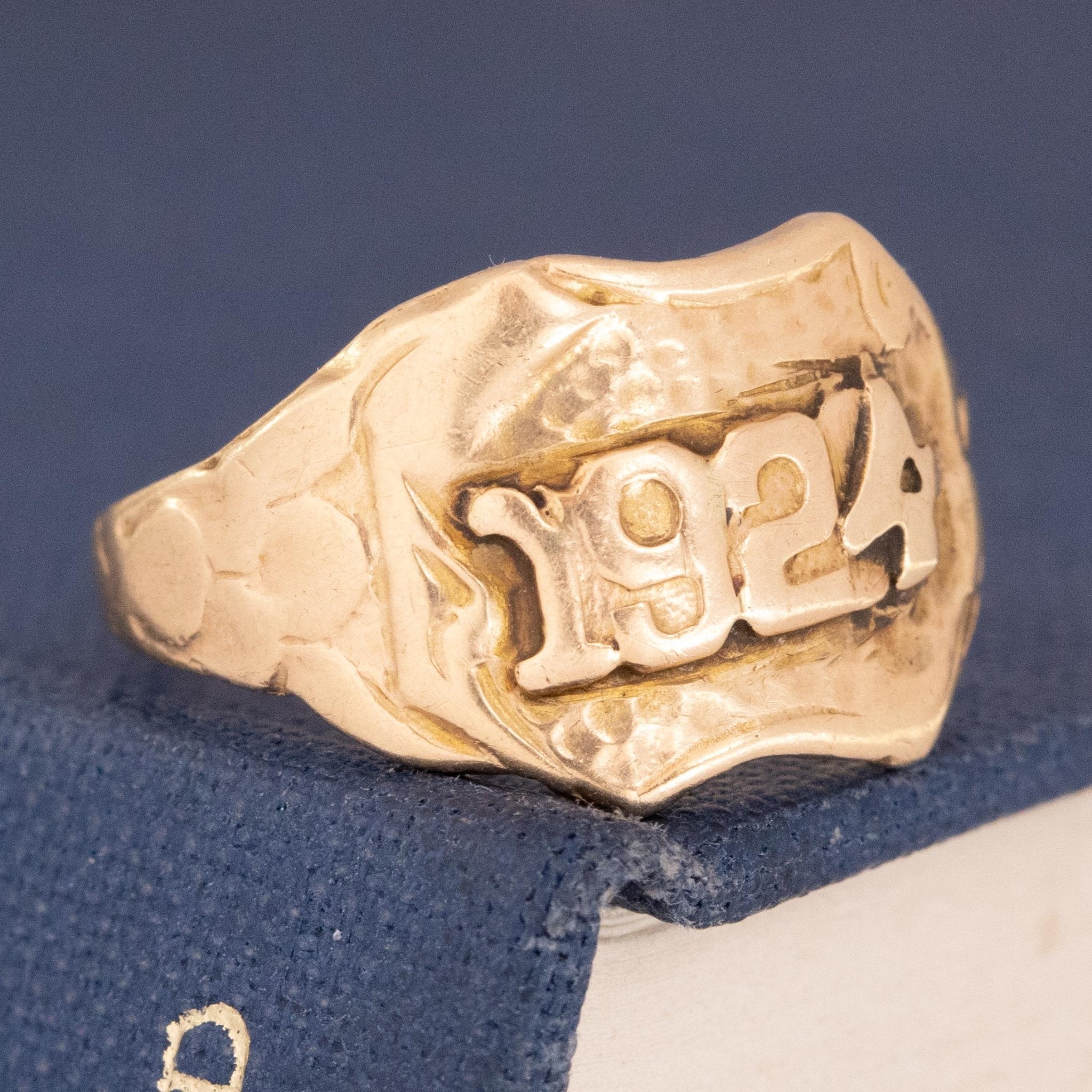 An antique signet ring memorializing 1924 - now over 100 years ago with the delicious gold tone and patina to prove it.
