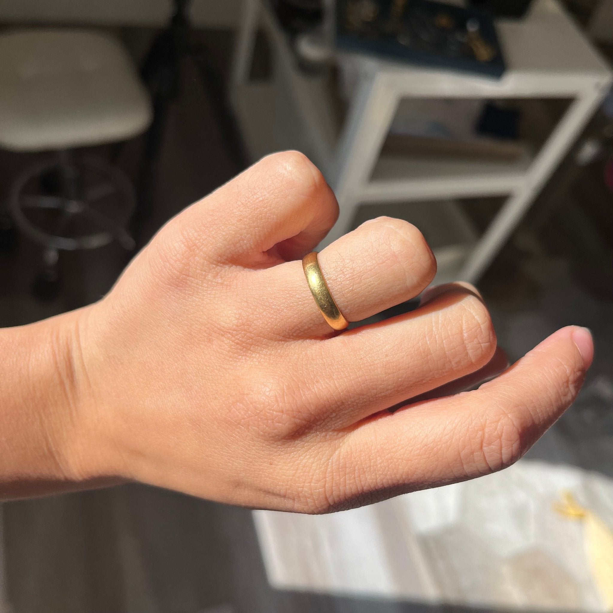 Always a fave around here - the classic, timeless solid gold band. And when its this high karat gold, how can it get any better? We certainly think not! Gorgeous patina.
