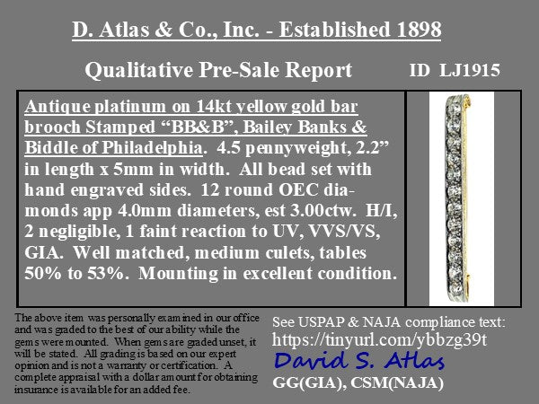 3.00ctw Antique Old European Cut Diamond Pin by Bailey Banks & Biddle