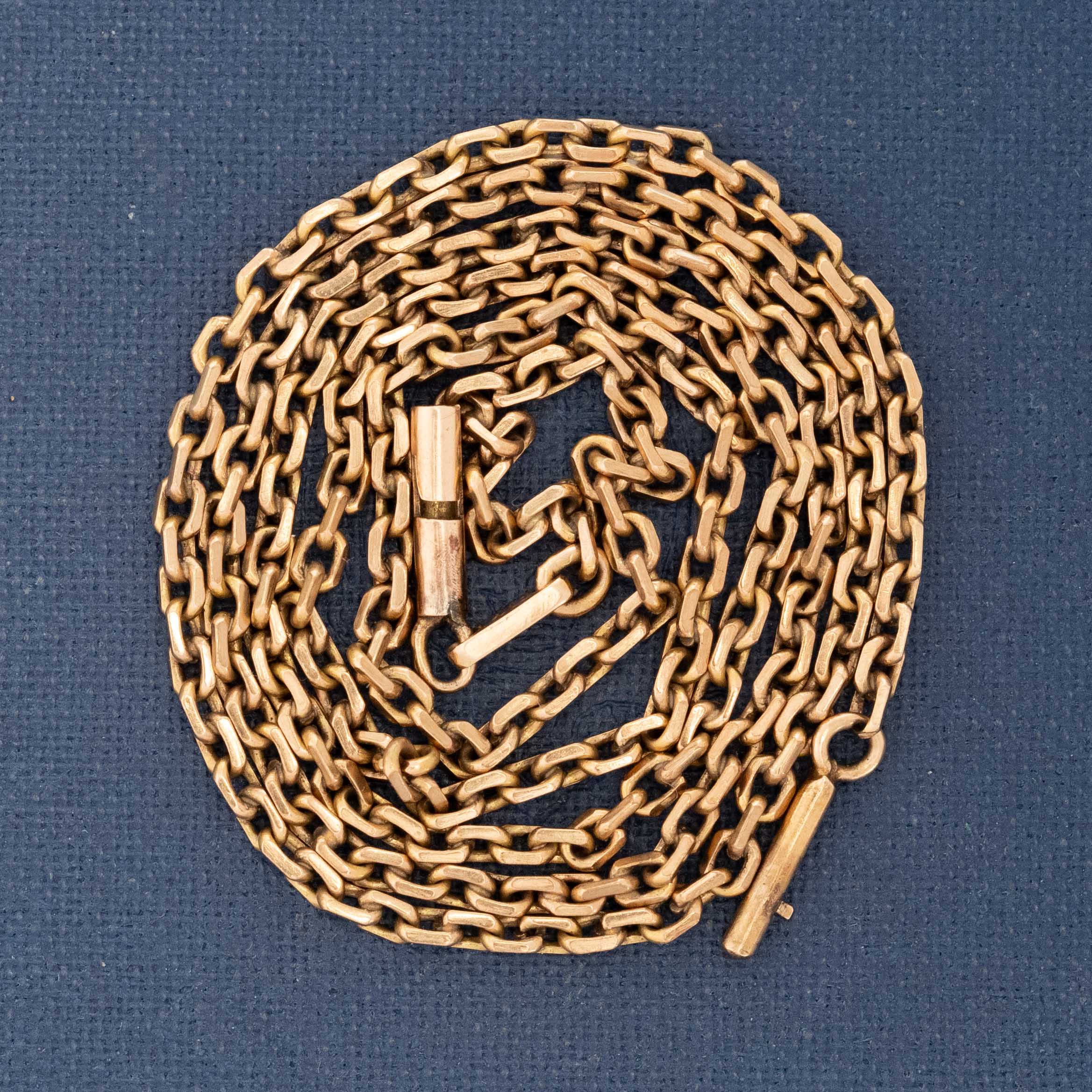 Beautifully scaled biker link chain at the perfect length of 18". Gorgeous patina with a super rich golden yellow color! A great antique chain would be ideal to add to one's collection.