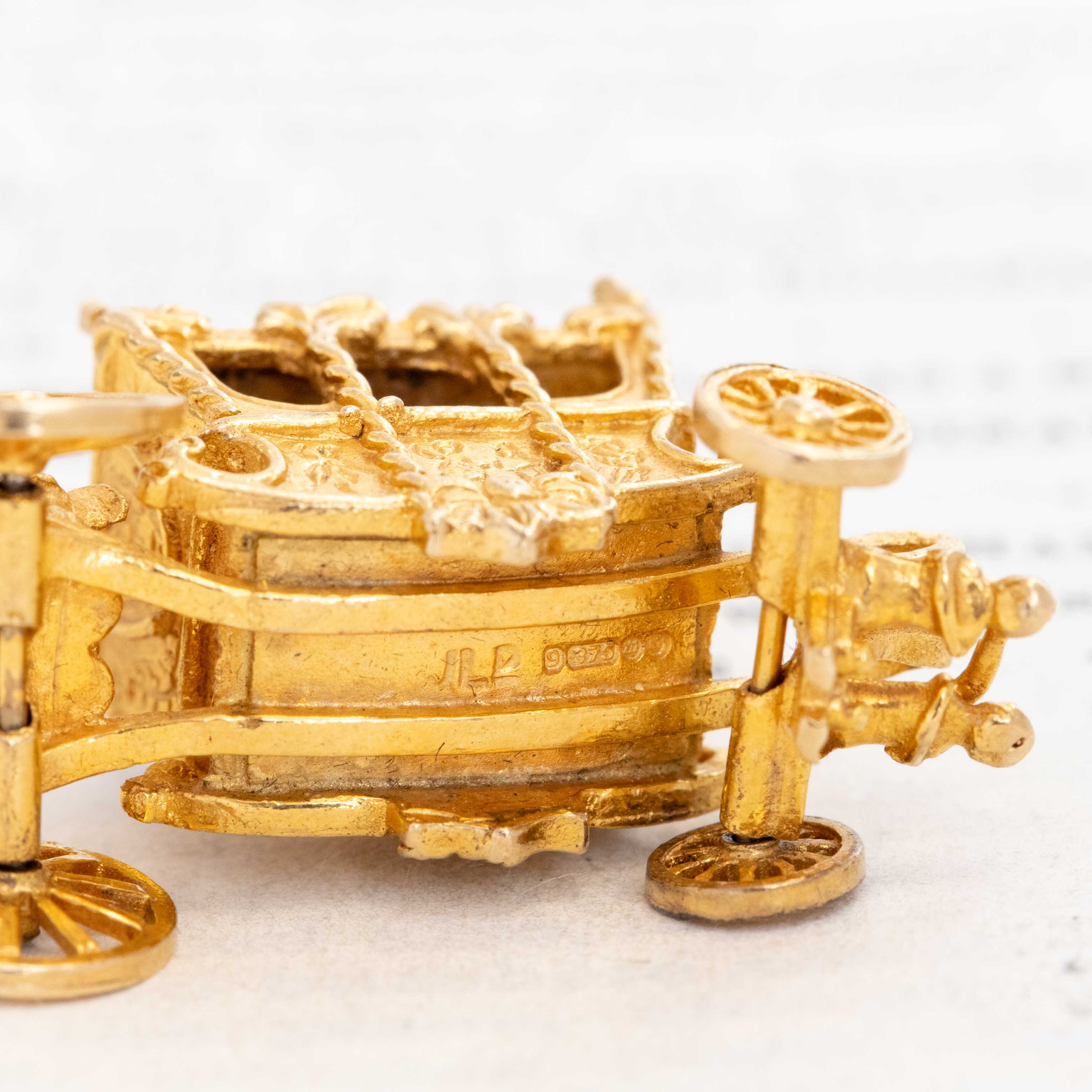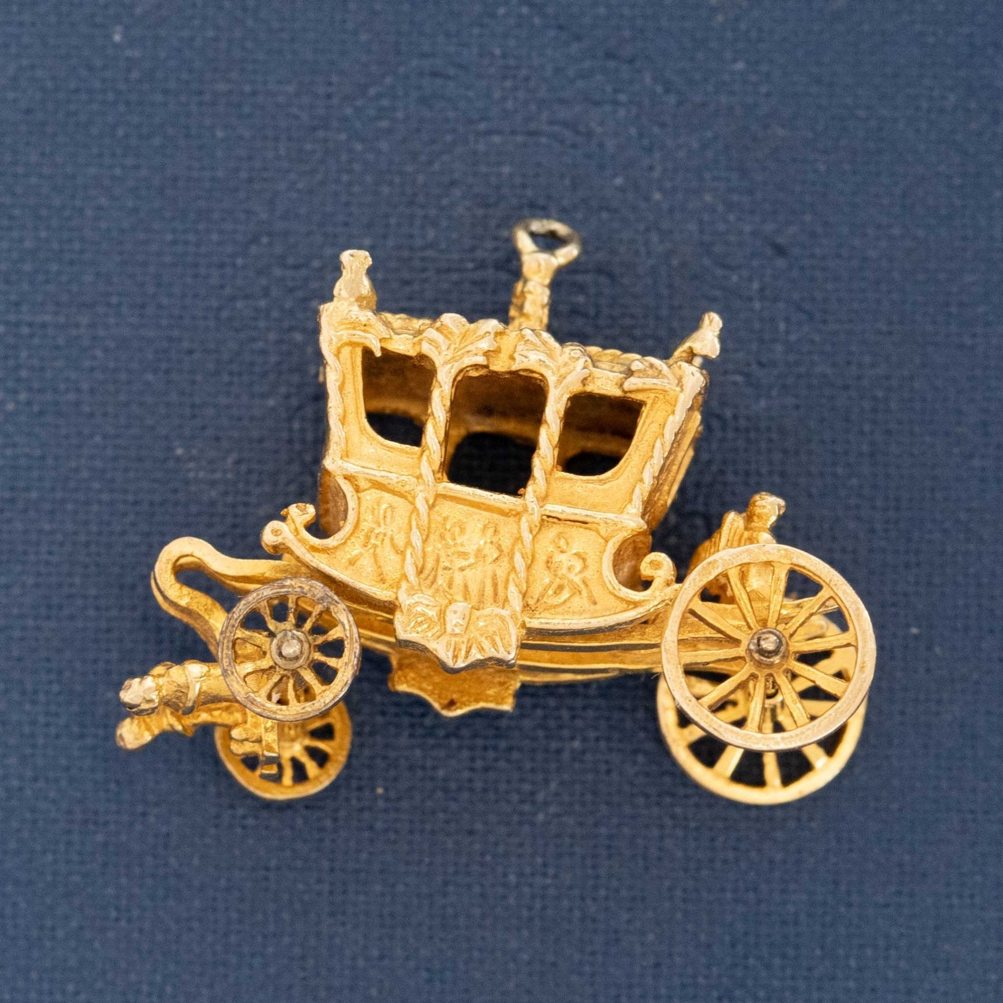 This vintage gold carriage charm feels like it rolled straight out of a fairy tale! With its delicate details and storybook shape, it’s hard not to think of Cinderella’s iconic coach—aka the ultimate symbol of transformation, romance, and a little magic. Carriage charms have long been tied to journeys and big life moments, which makes this one even sweeter. It’s whimsical, nostalgic, and exactly the kind of vintage piece that makes a charm bracelet feel personal (and a little dreamy).