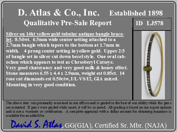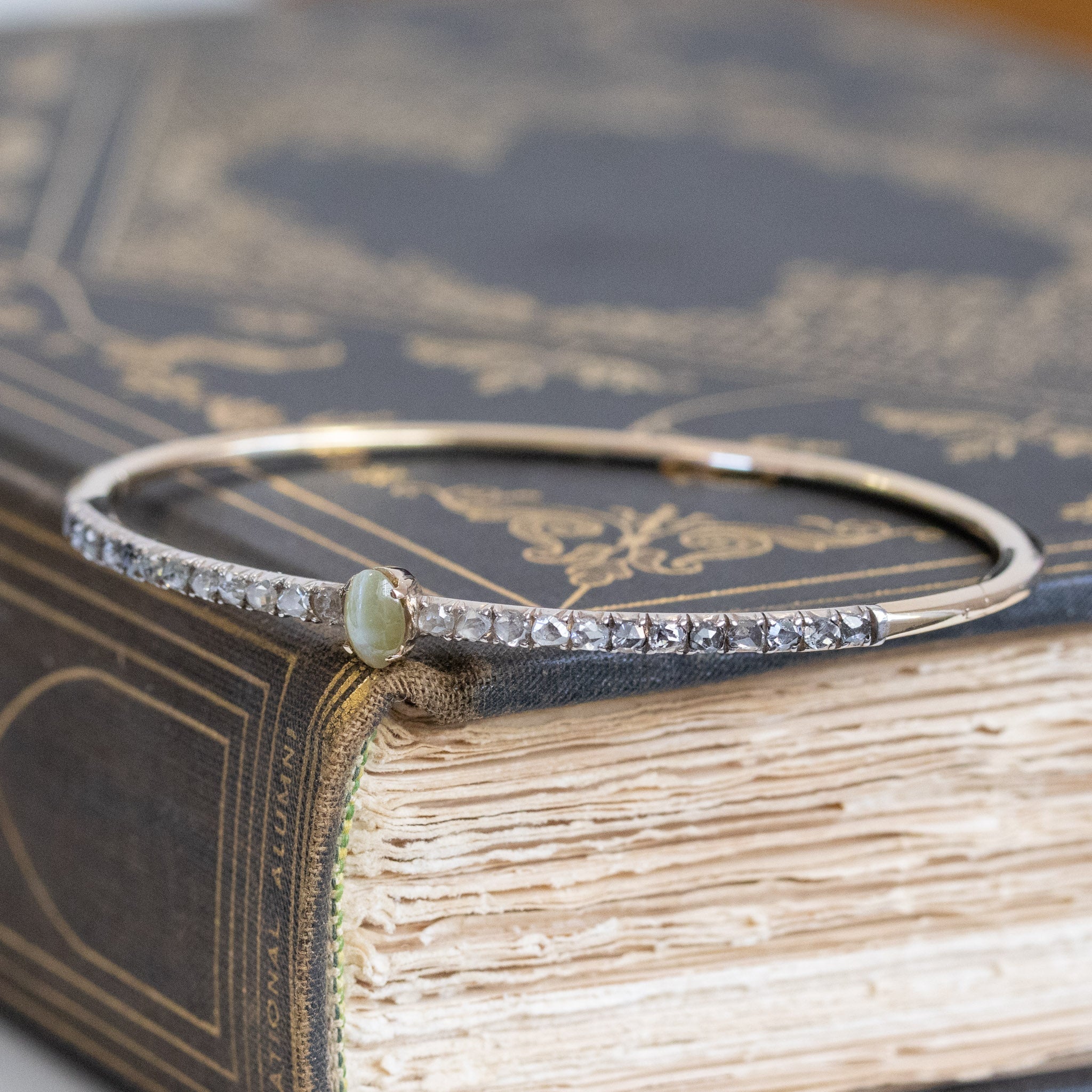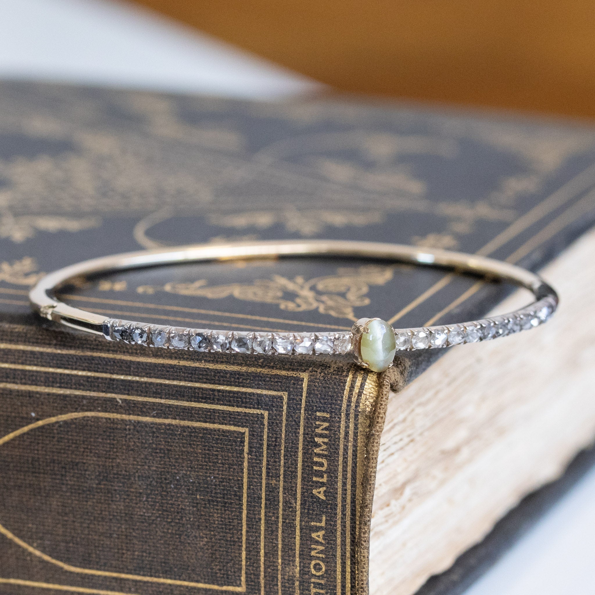 Antique Chrysoberyl Cat's Eye and Diamond Bangle