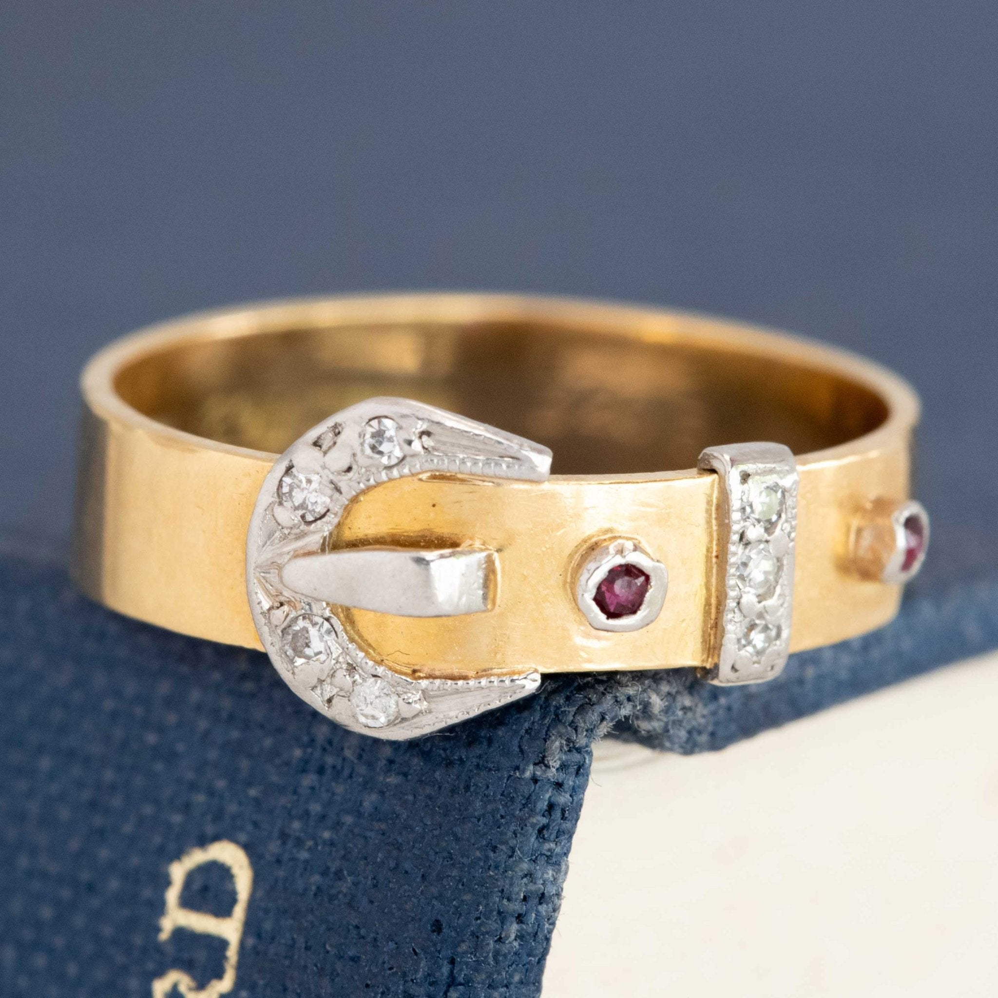 This antique buckle ring is crafted in rich yellow gold and designed like a fastening belt — a motif long associated with strength, loyalty, and enduring connection. Dating to the Victorian era, buckle rings were often exchanged as tokens of affection or commitment, making them some of the most meaningful antique rings to collect today.