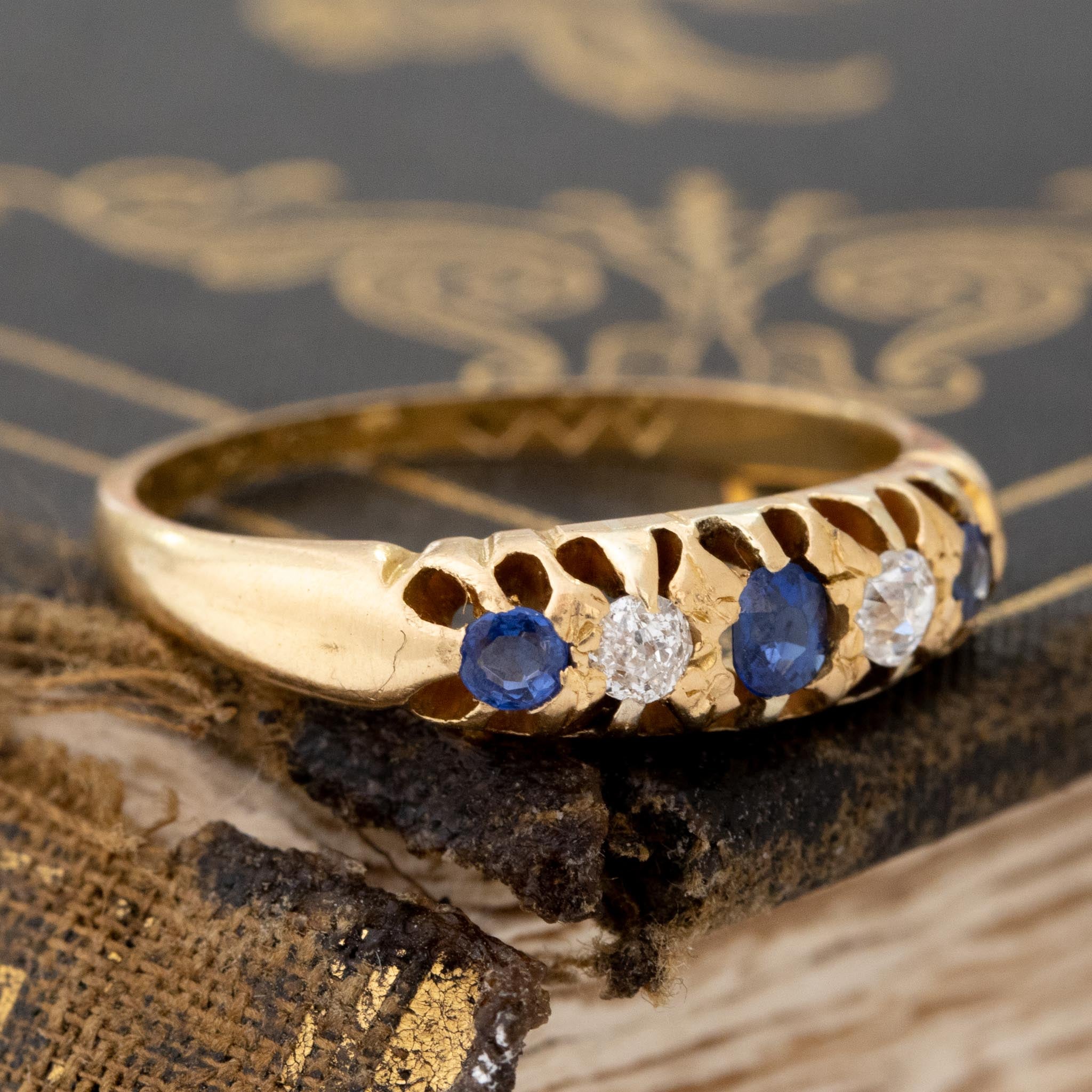 This one is stamped “Birmingham 1921,” a reference to the age of the band and the makers of back then. We love those sweet sapphires alternating with the diamonds, making for the perfect addition of color to one’s band stack or jewelry collection. Not to mention those delicious claw prongs!