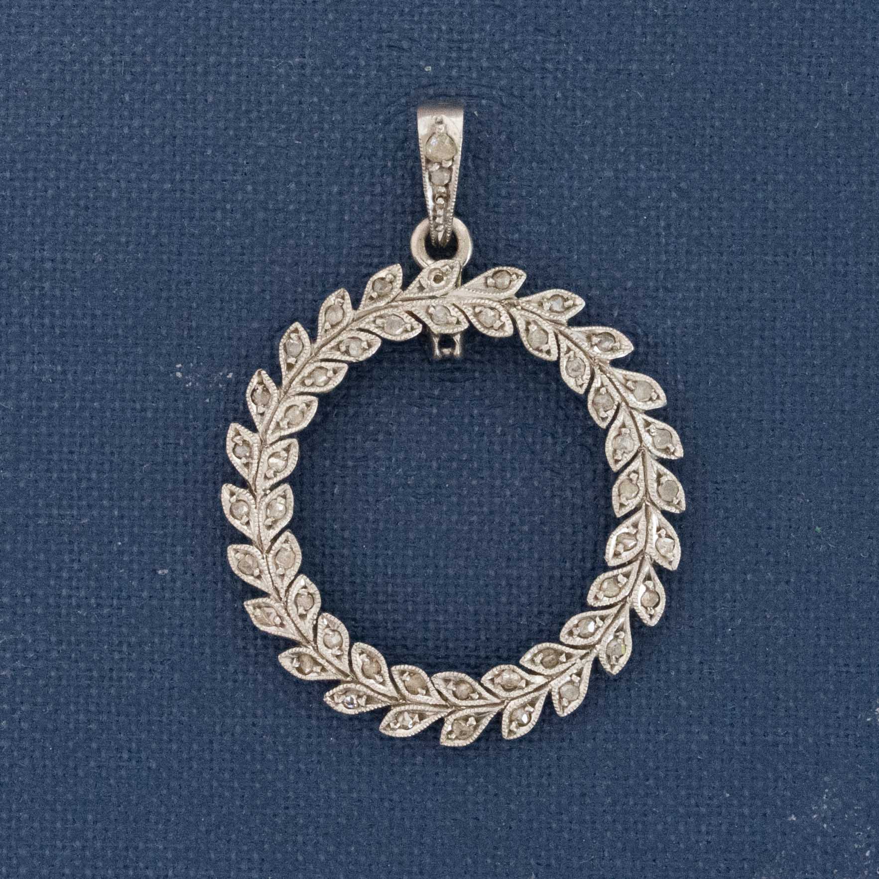 Sweet and feminine, this antique wreath motif pendant is perfectly romantic - and of course, its the literal peace offering to boot!