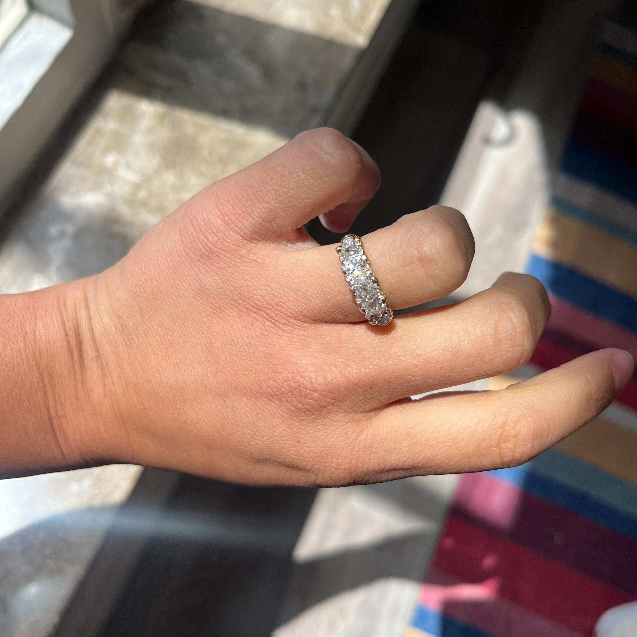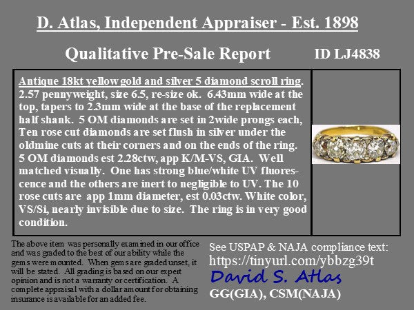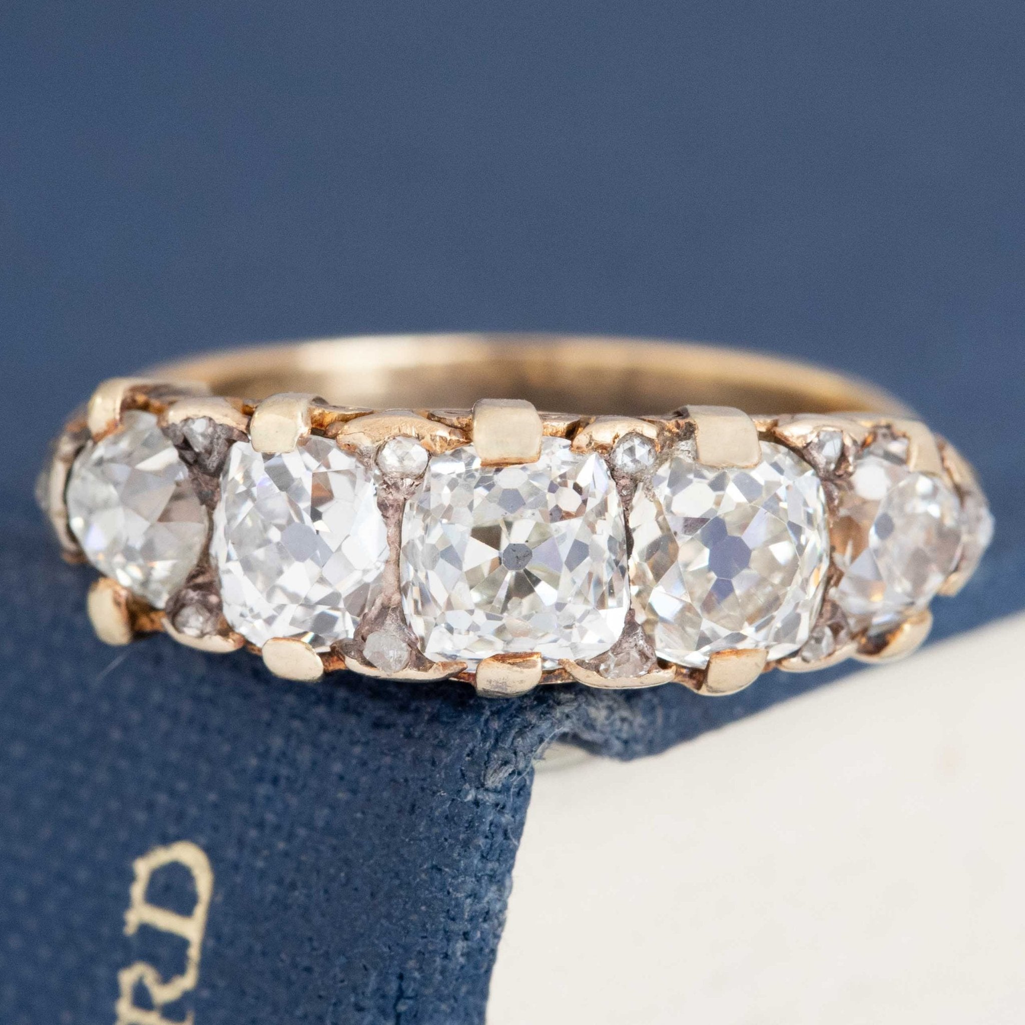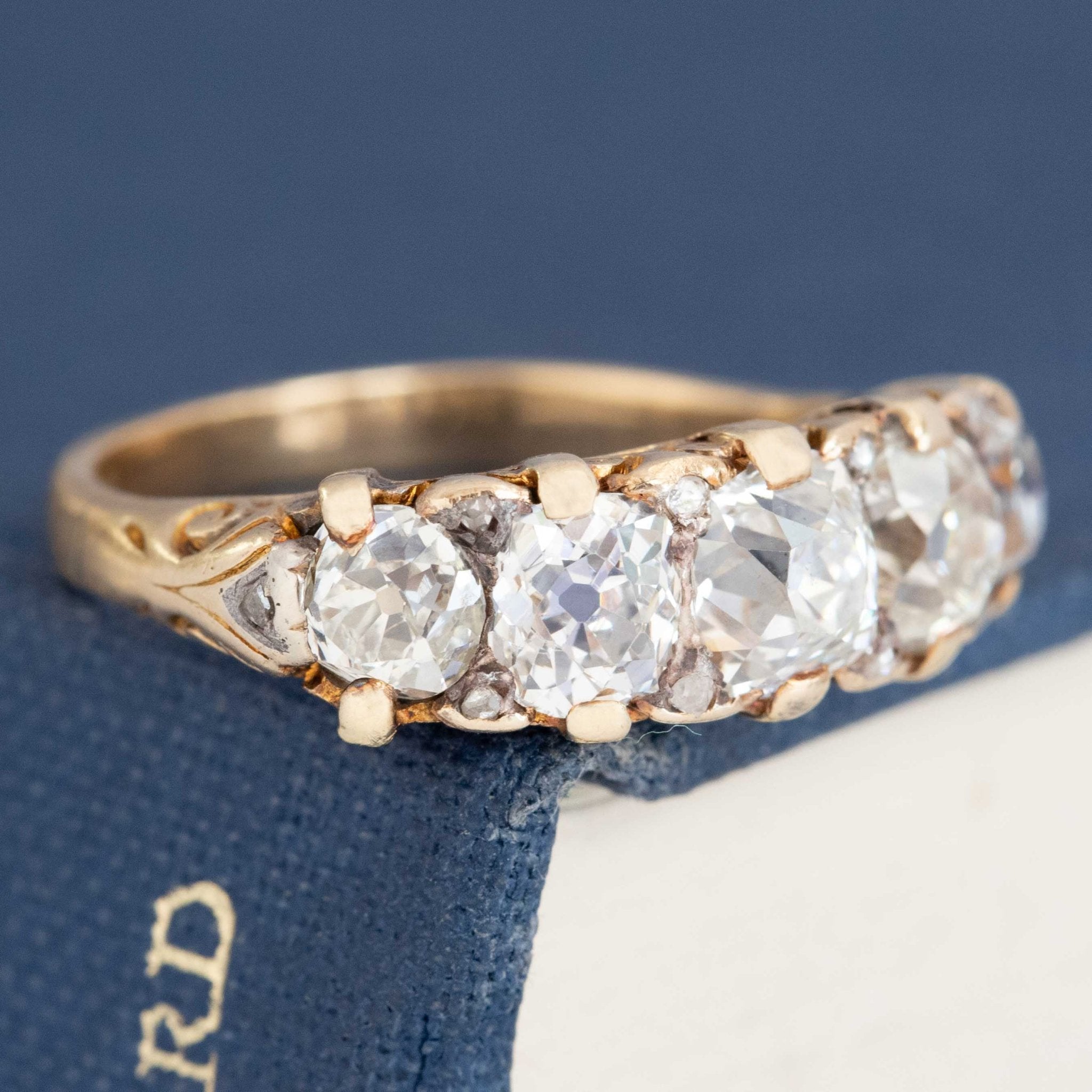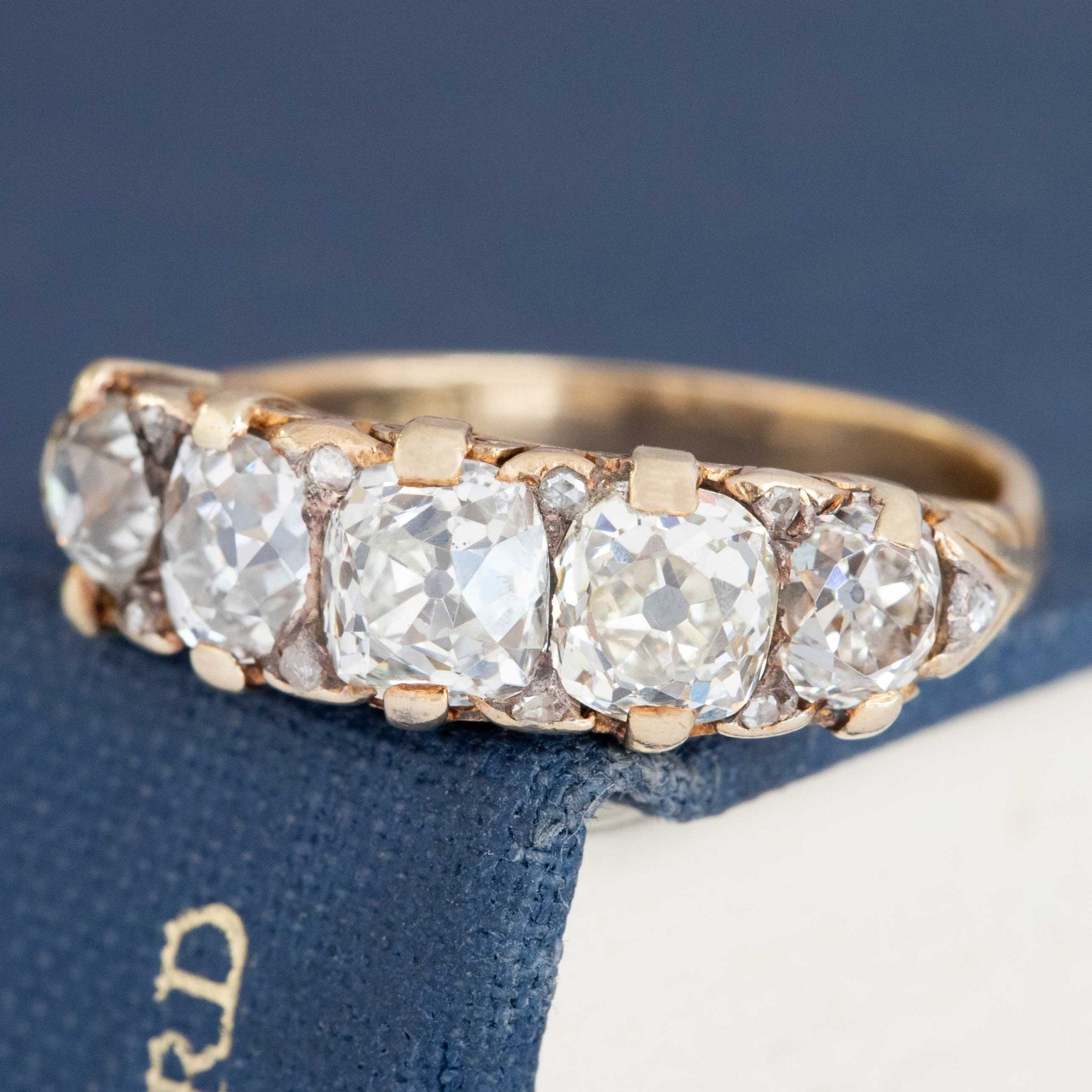 2.31ctw Antique Old Mine Cut Diamond 5-Stone Scroll Band