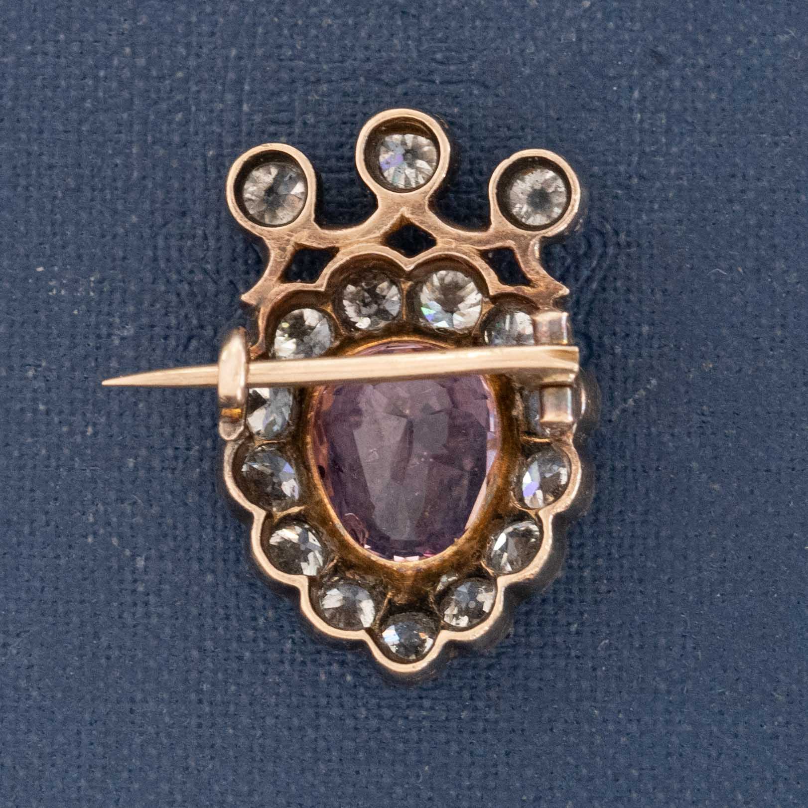 Antique Padparadscha & Old European Cut Diamond Crown Brooch