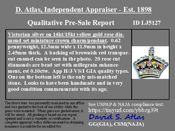 Victorian Rose Cut Diamond Crown Charm