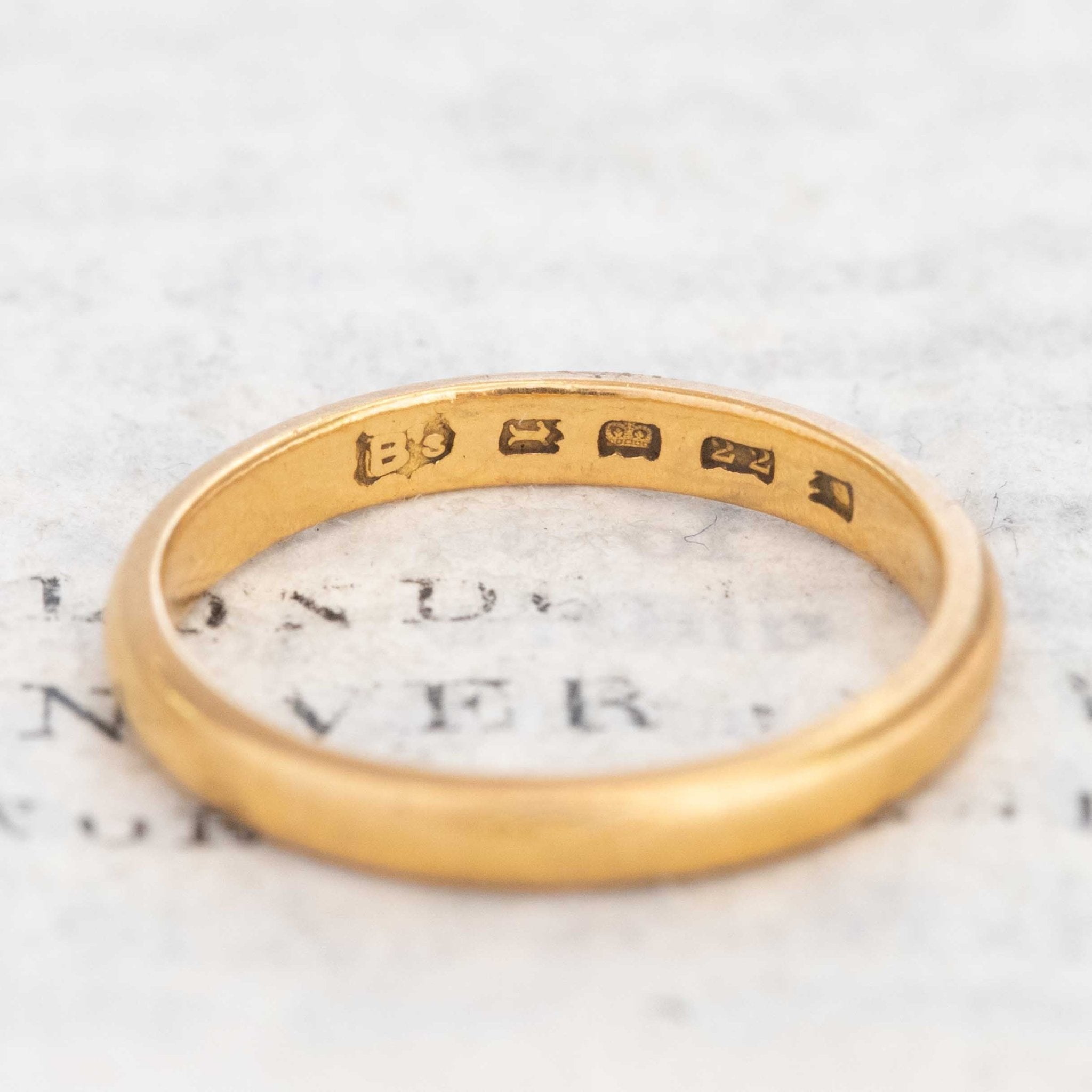 Antique Slim 22kt Wedding Band, English