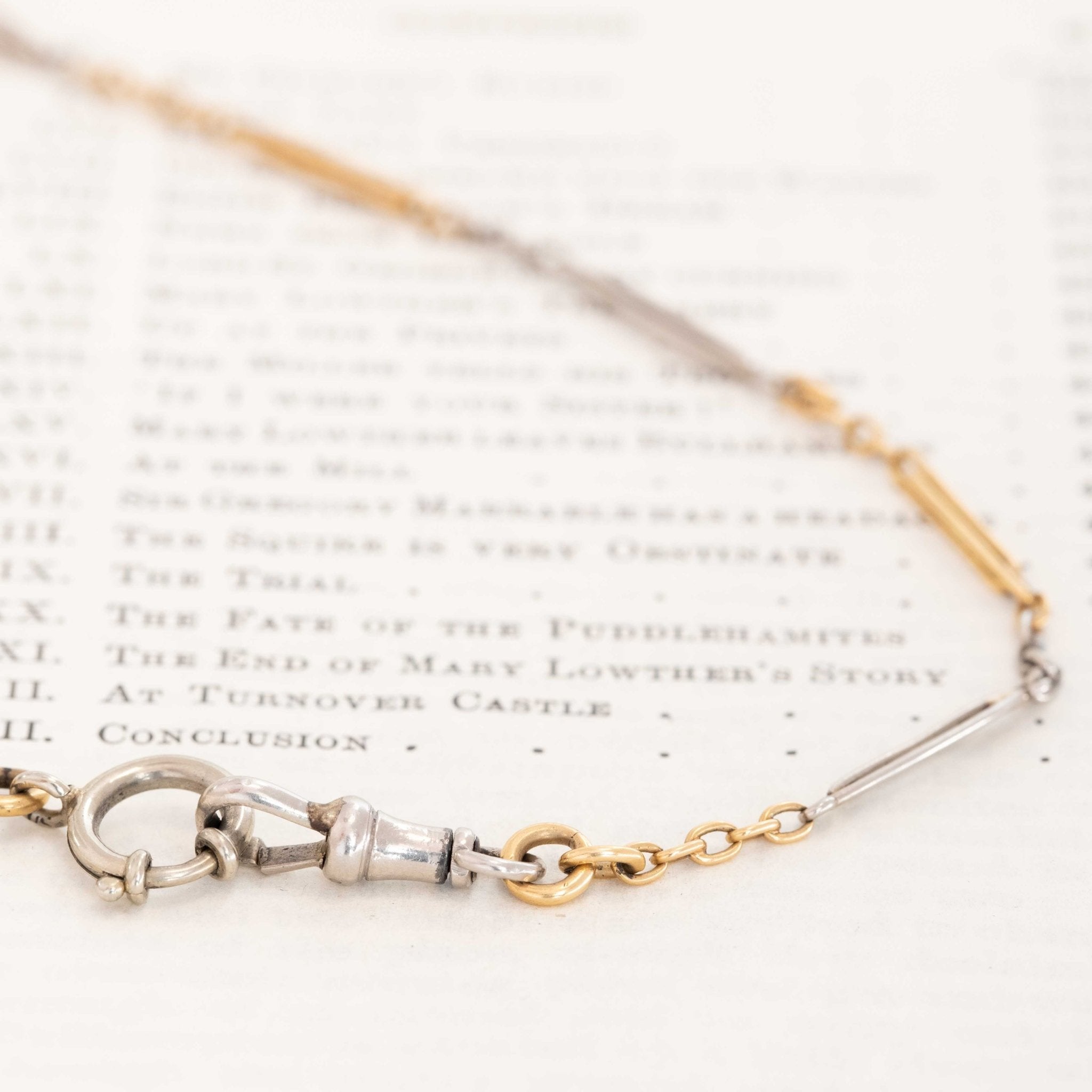 We admit it - we are obsessed with antique chains, and this harder-to-find 2-tone chain had to come home with us. Moderately scaled and proportioned, it still has all the charm and pizzazz of the antique chains I just adore.