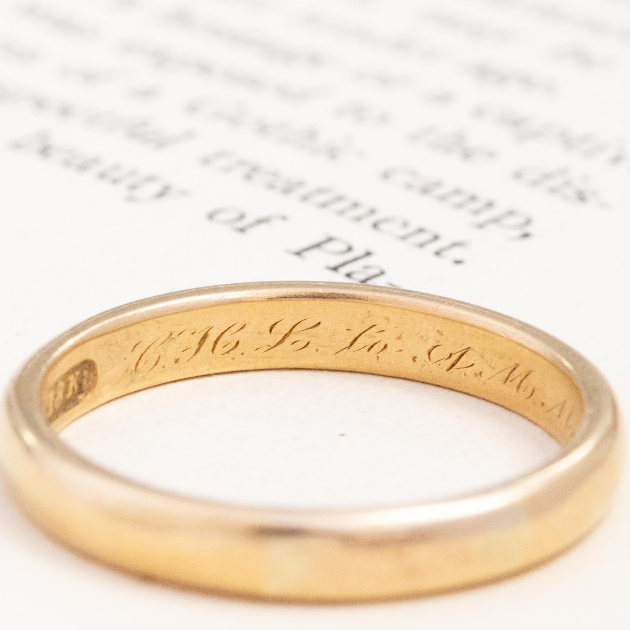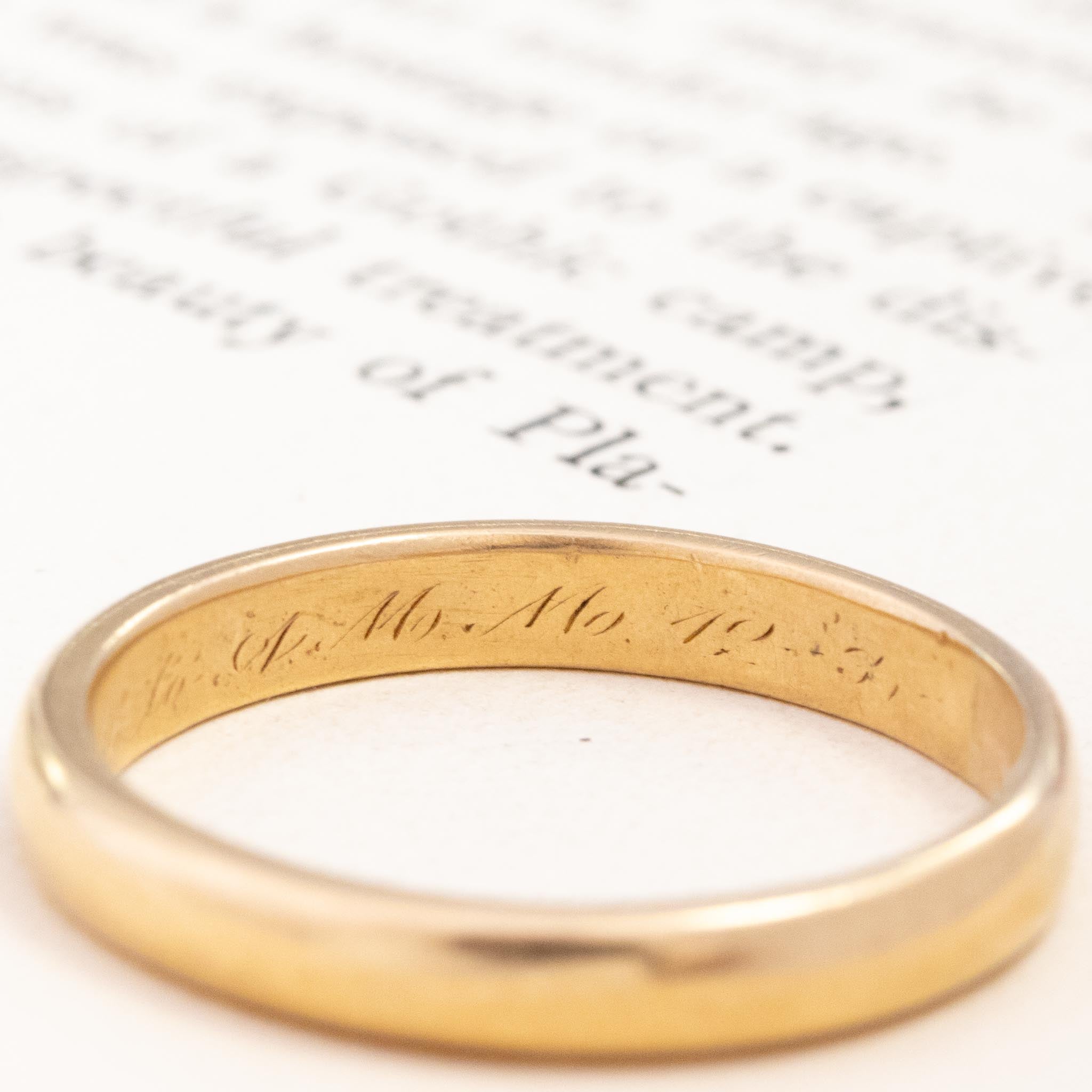 Each time we find one of these bands, we just have to acquire them! We love the the soul and character they possess - and all the love imbued into them! This one is engraved: "C.H.L. to A.M.M." and a date that seems to have also worn away with time.