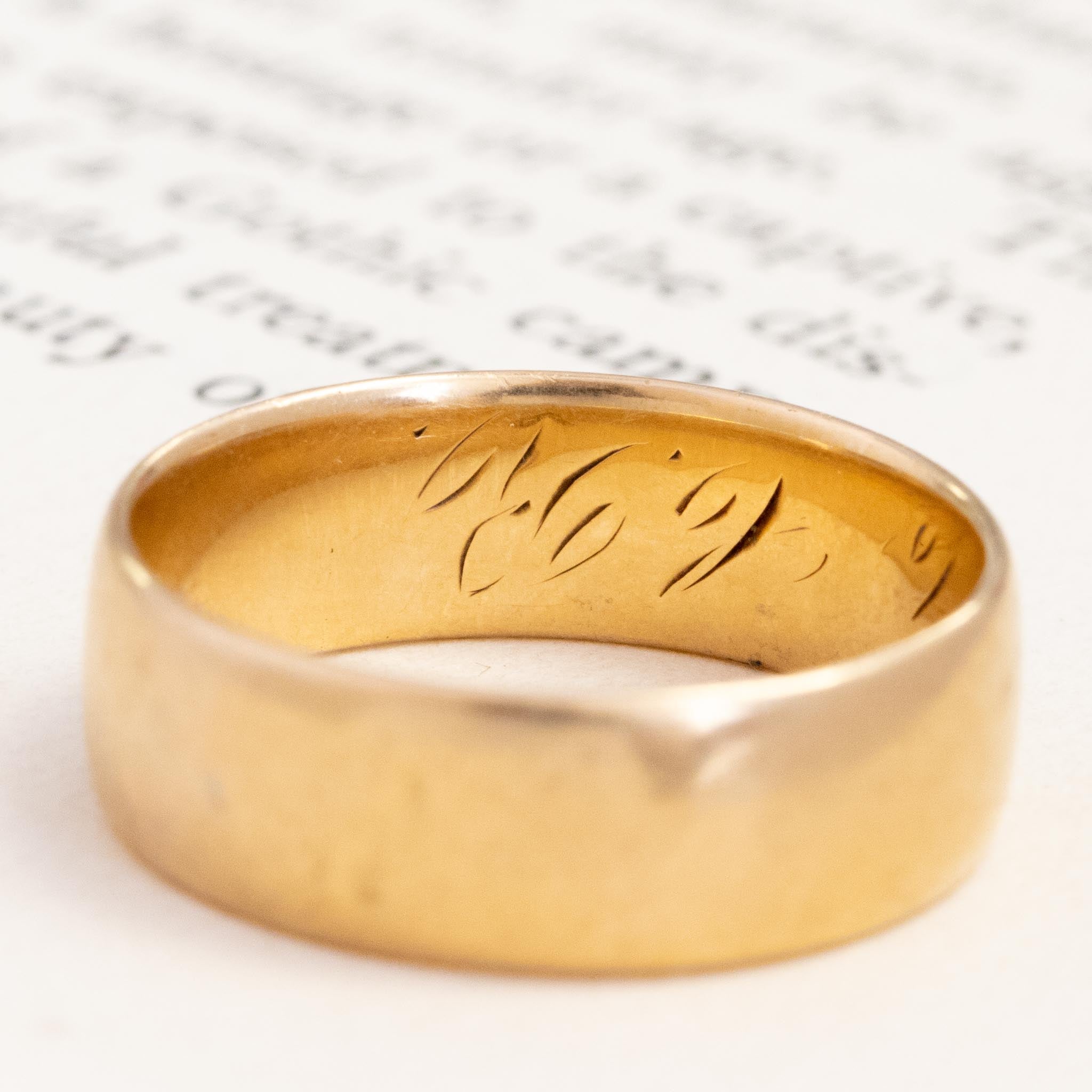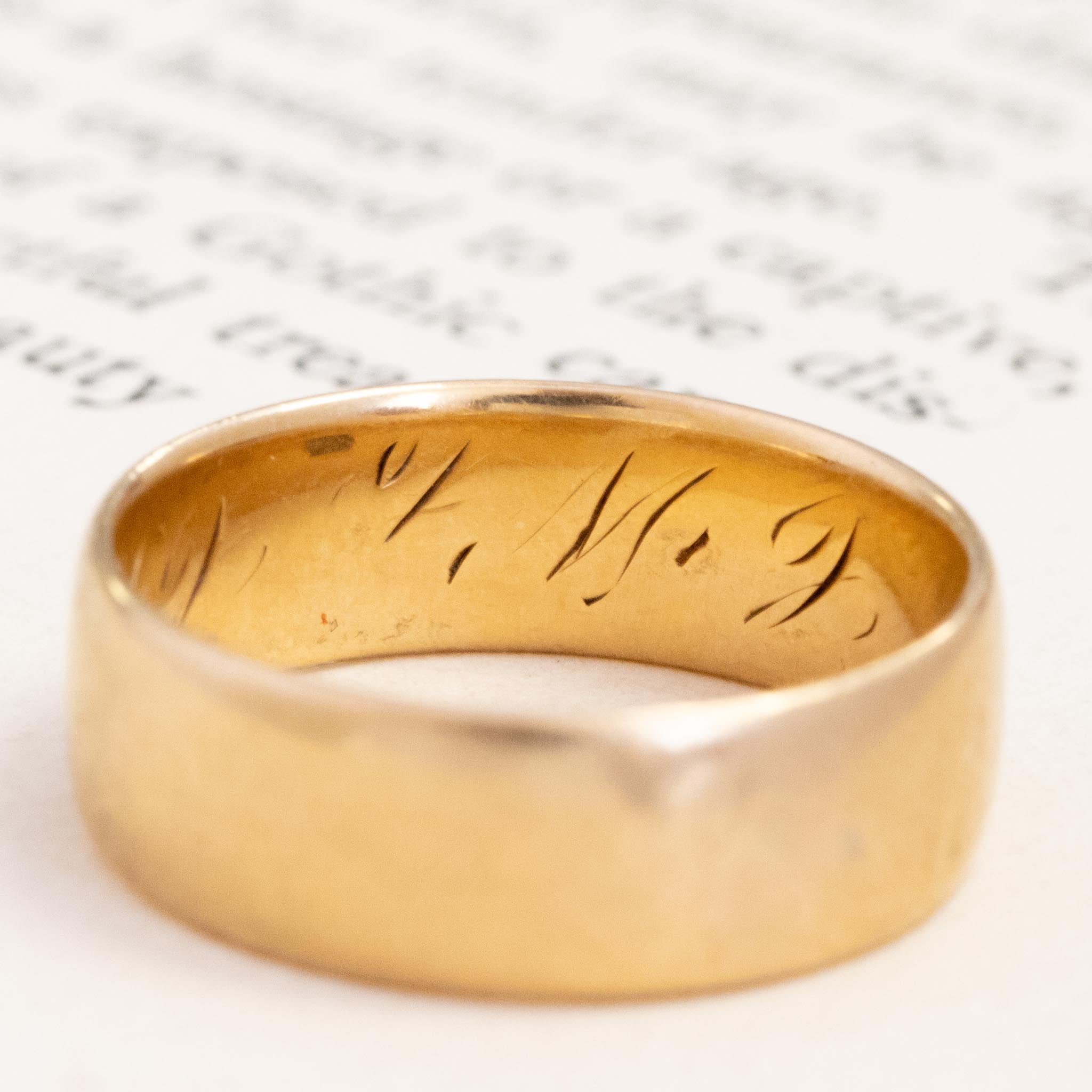 Each time we find one of these bands, we just have to acquire them! We love the the soul and character they possess - and all the love imbued into them! This one is engraved, although with time the engraving has worn a bit. Band is otherwise in excellent condition.