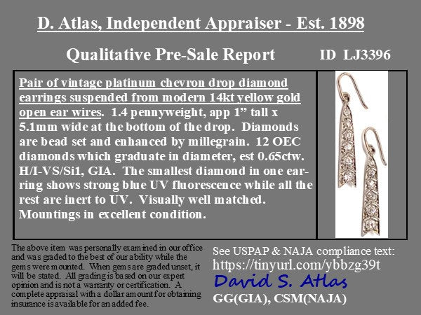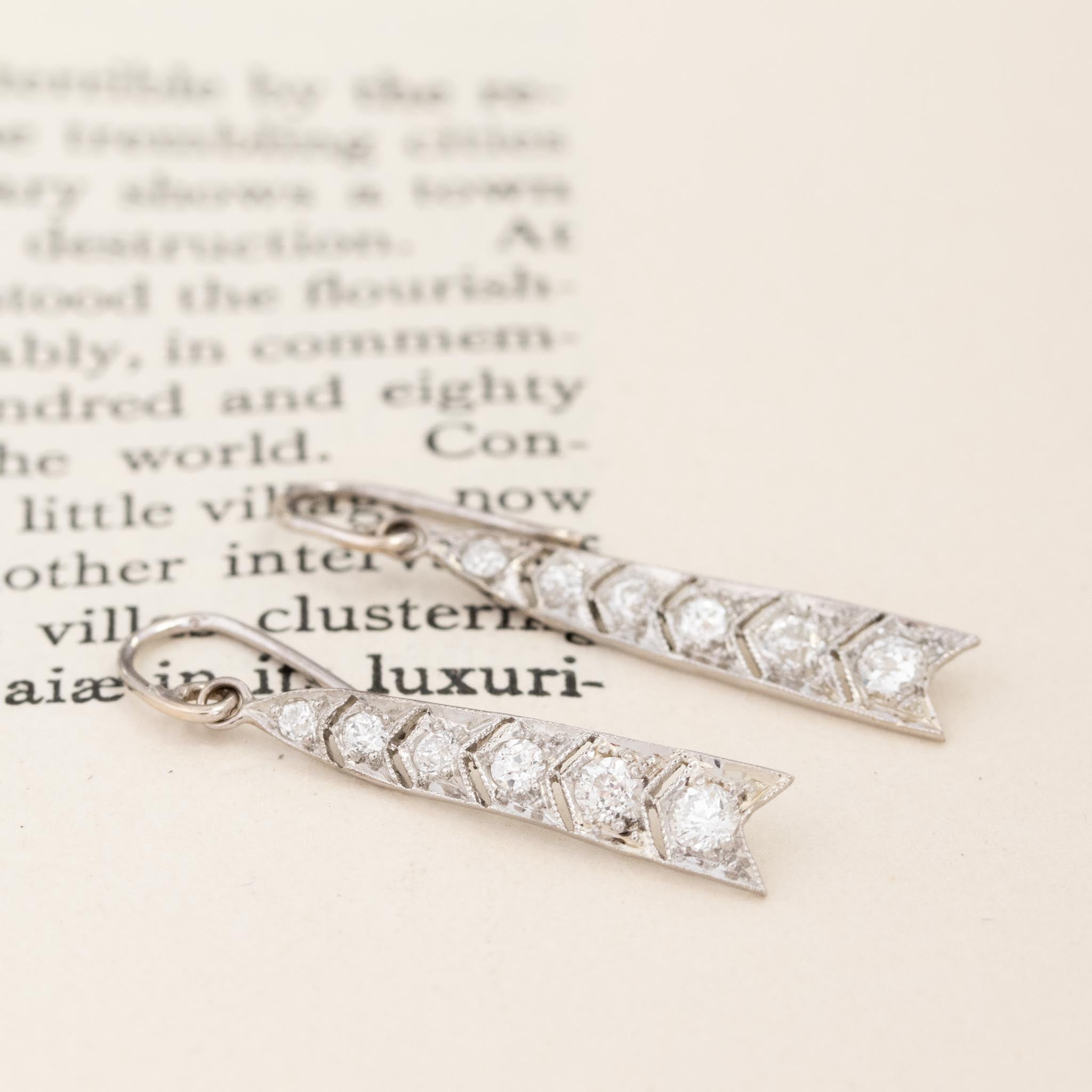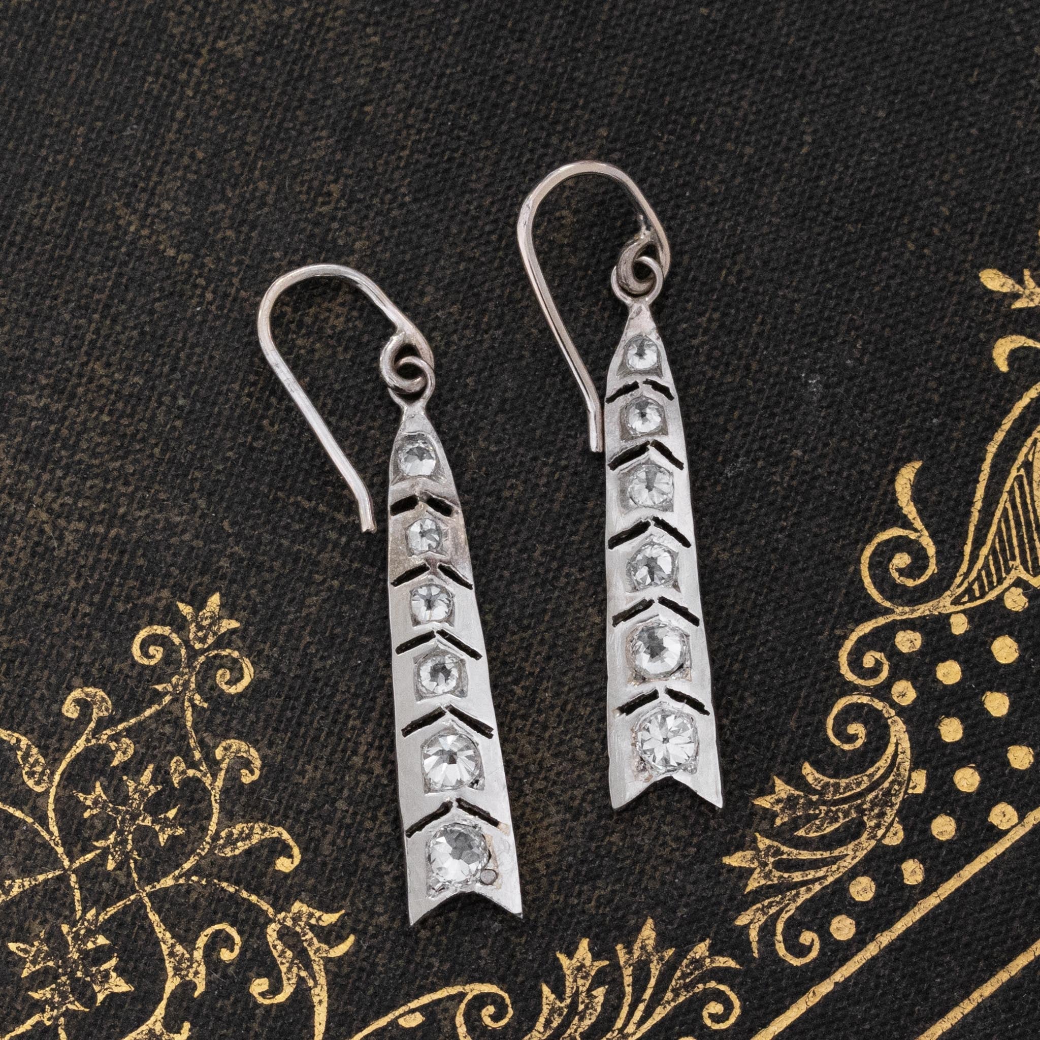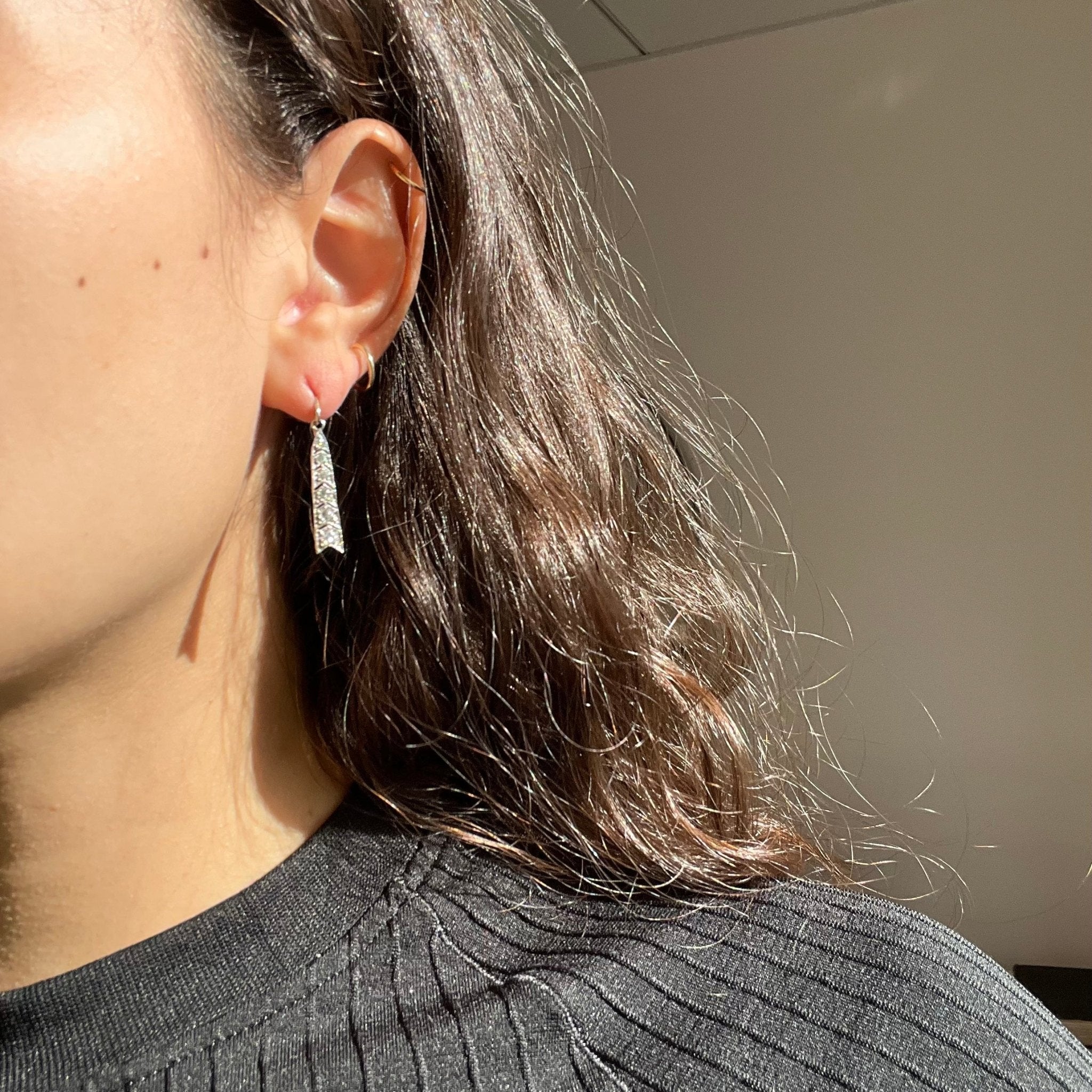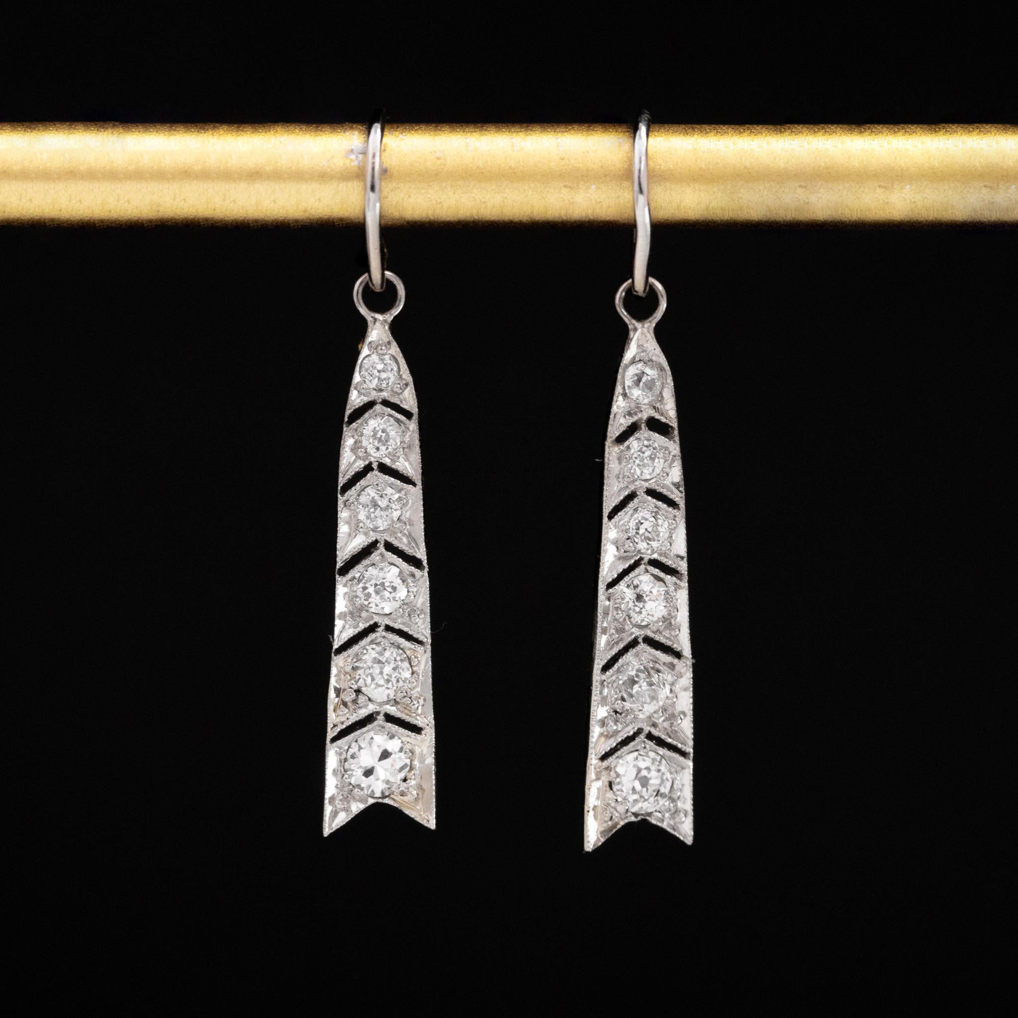 Feminine and just the right amount of flirty, these earrings were converted from an art deco pin missing a center component. With a little bit of imagination, we attached them to French sure and voila, a pair of diamond drop earrings were boen! Sparkly and chunky old European cut diamonds dot the earrings, cathing the light beautifully with every movement.