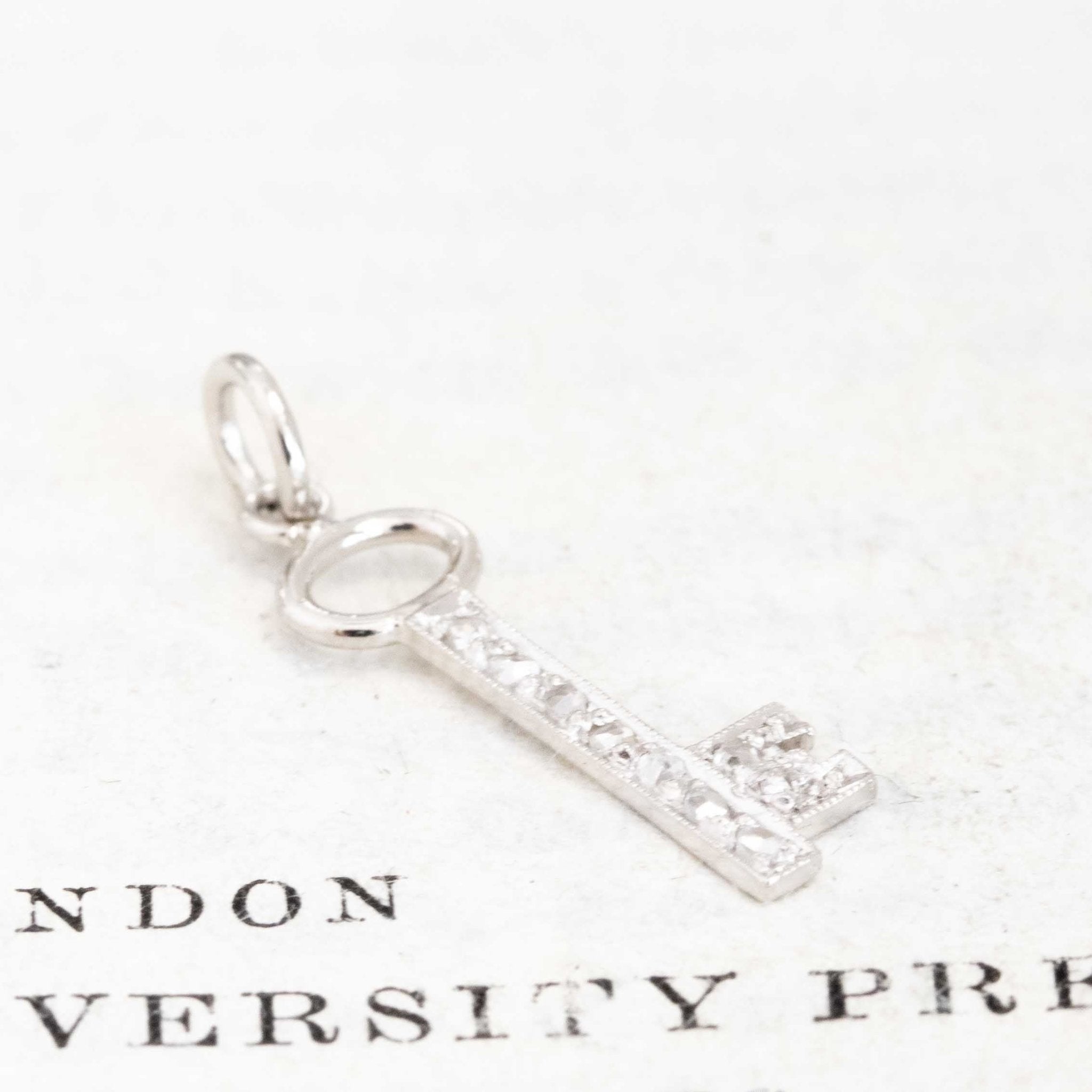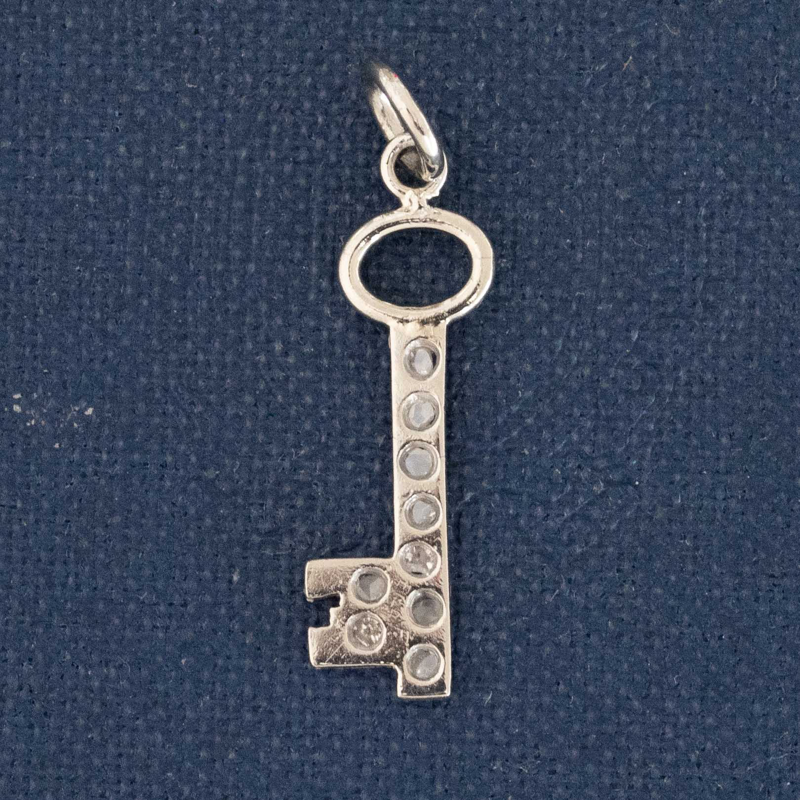 Adorable miniature key charm with little diamonds for that extra subtle sparkle.