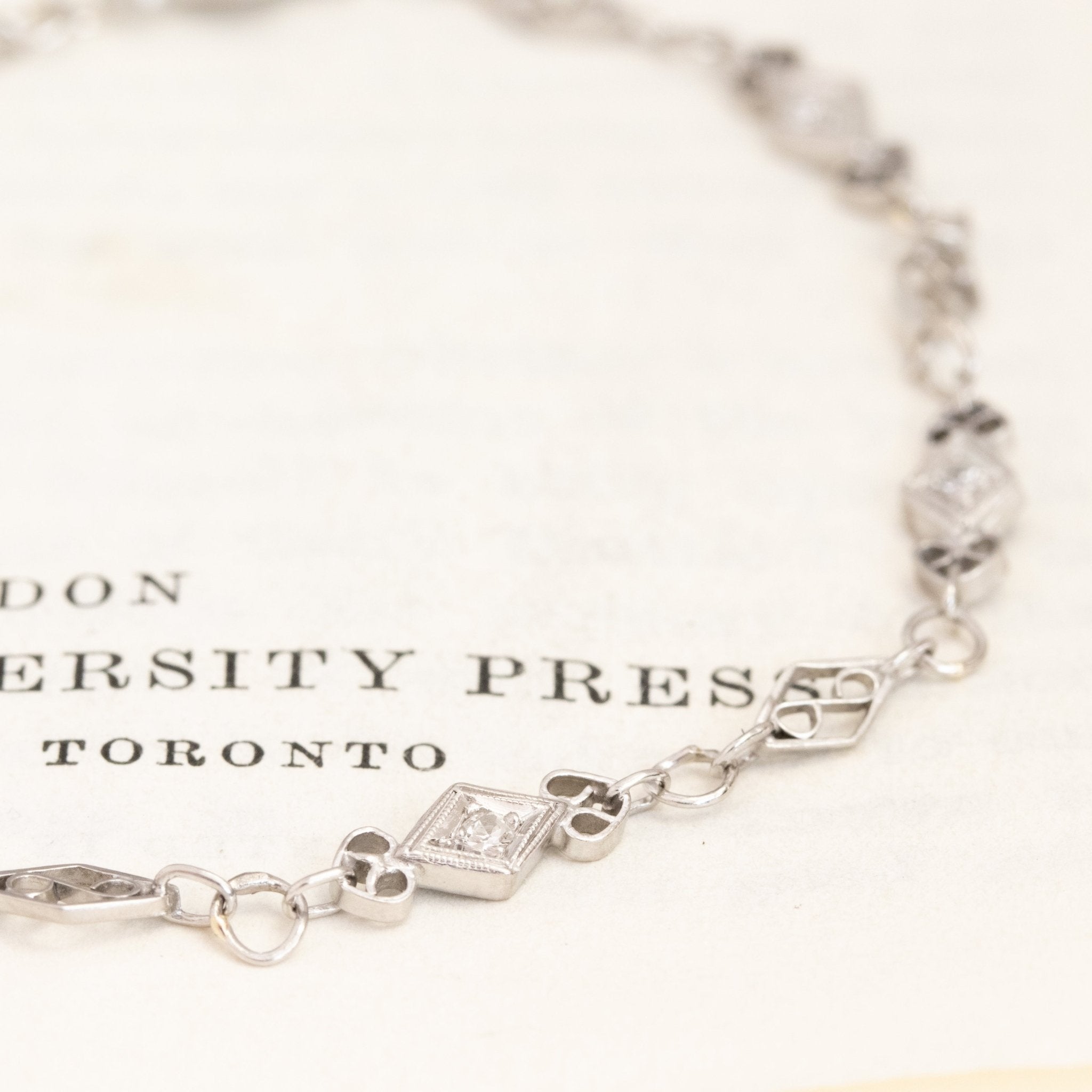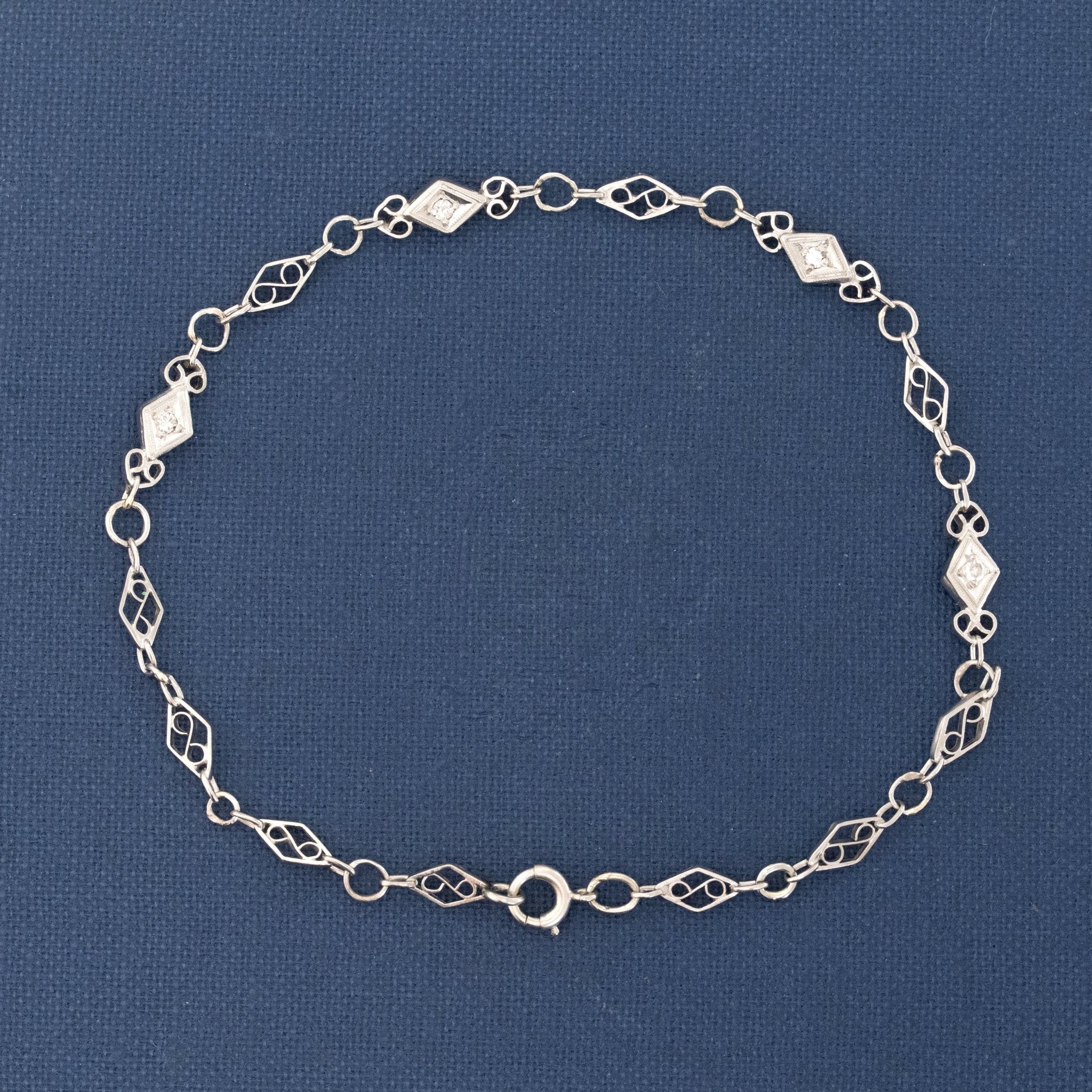 A rare art deco jewel with the sweetest, most intricate details, all studded with old cut diamonds to boot! Feminine and romantic, this is the perfect art deco jewel to add to one's collection.