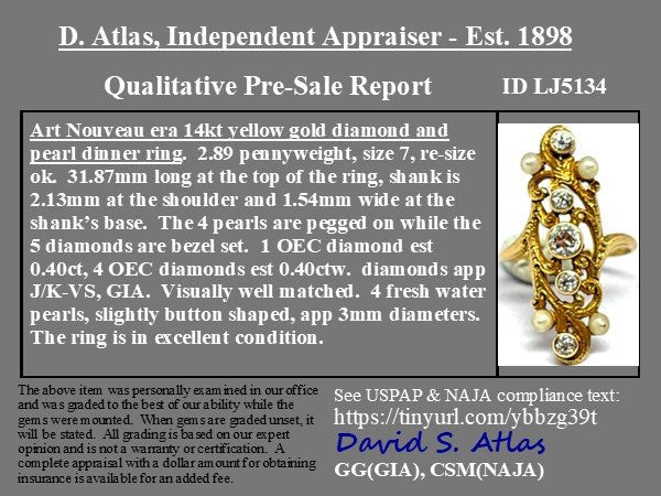 Art Nouveau Old European Cut Diamond & Pearl Dinner Ring
