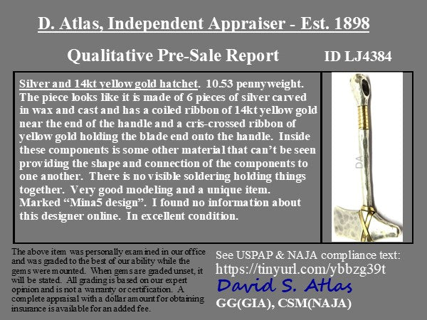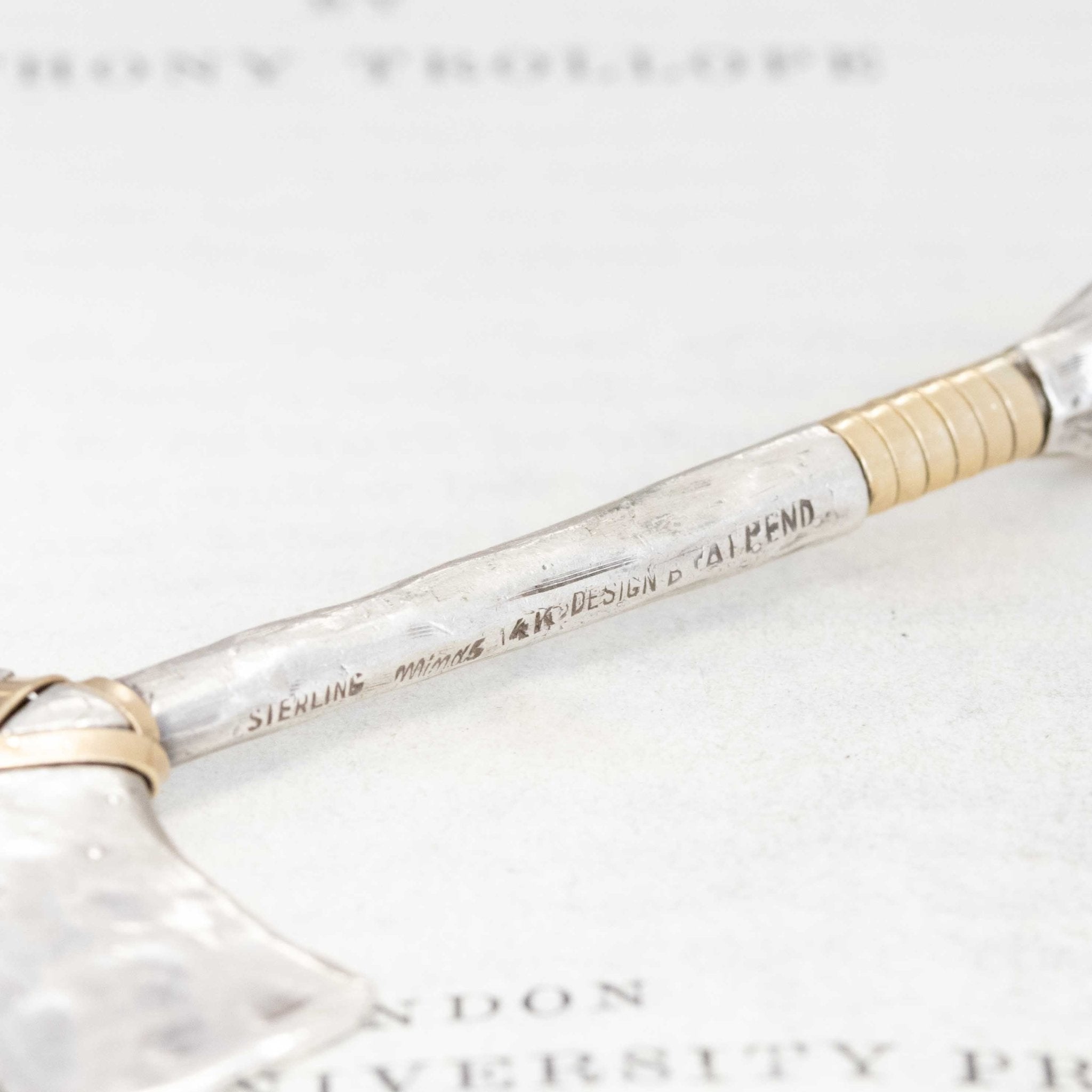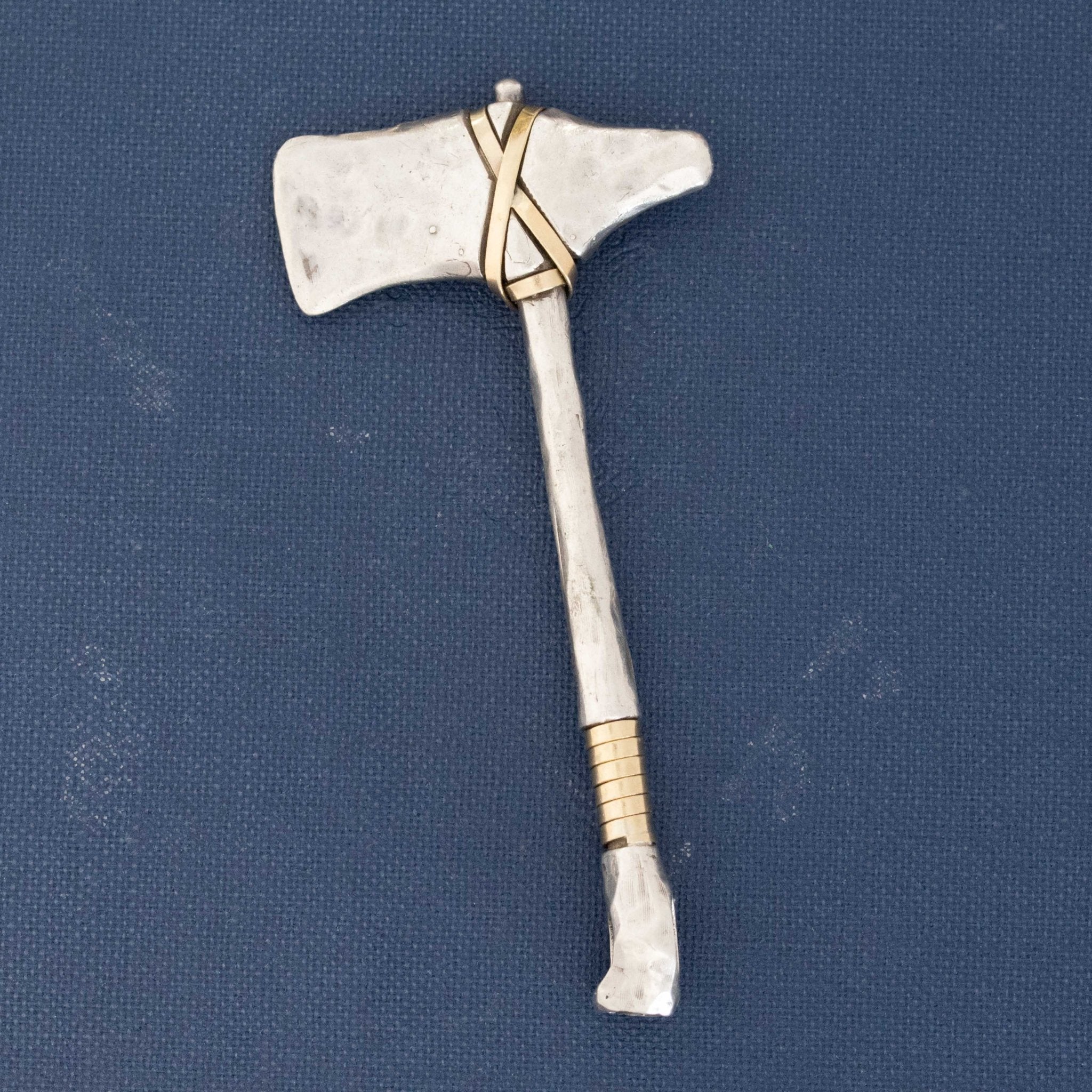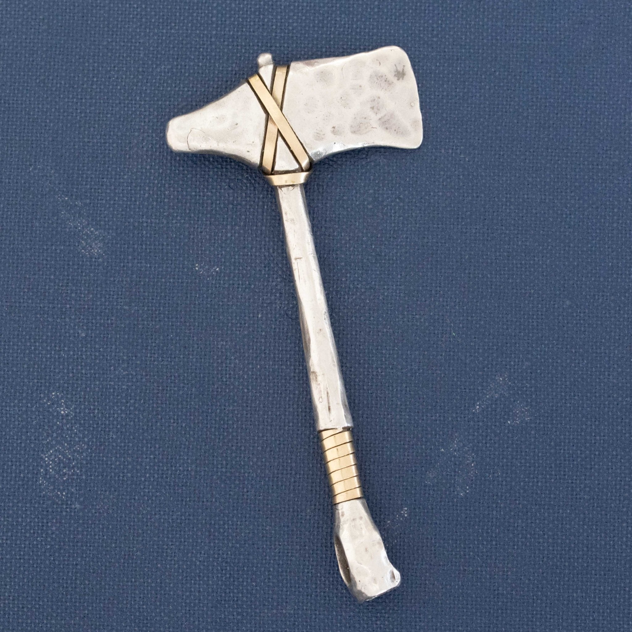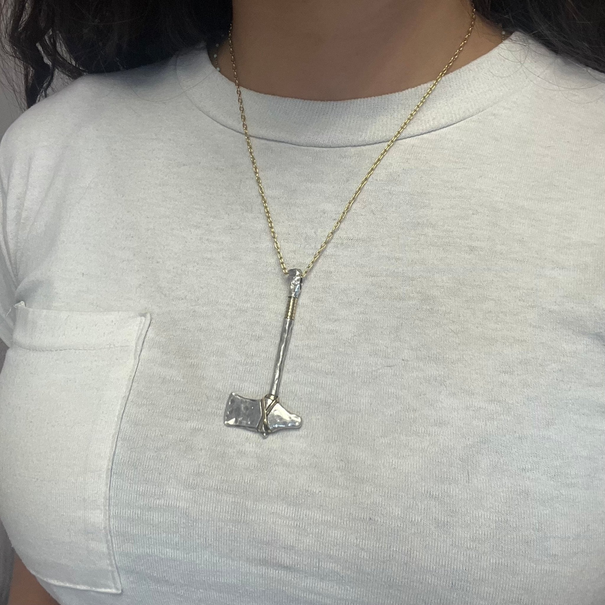 Sometimes, demure just does not work, and we need muscles and tools. And what a great piece to wear on those days - this baddie axe pendant in silver from designer Mimas. Perfect strung on a longer chain.