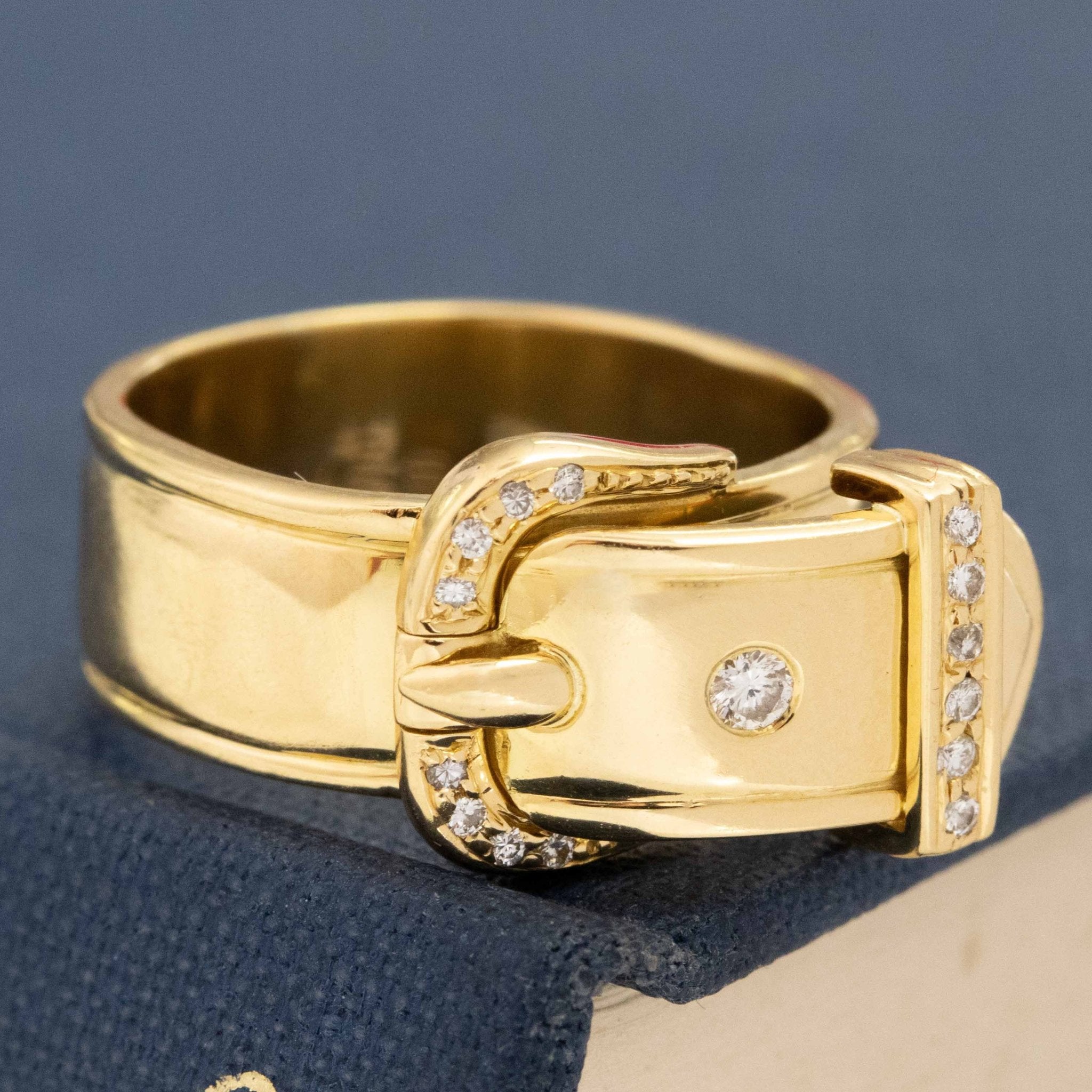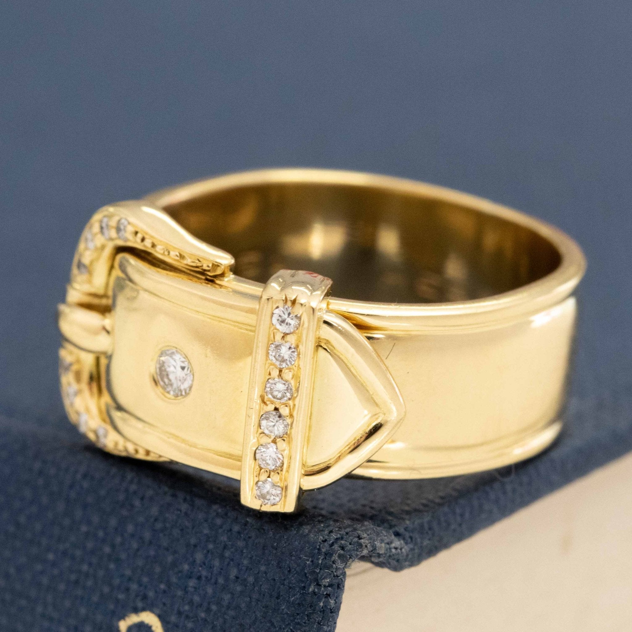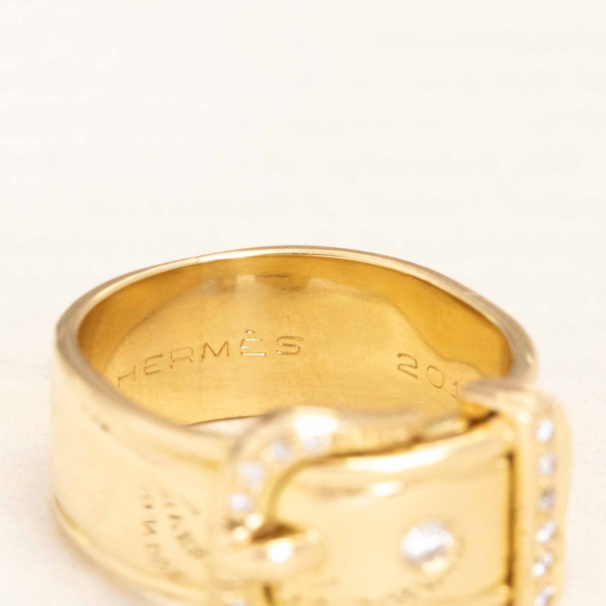 Beyond chic buckle motif ring by Hermes. Wide and bold on the finger, its the perfect jewel to slip on just before you walk out the door.