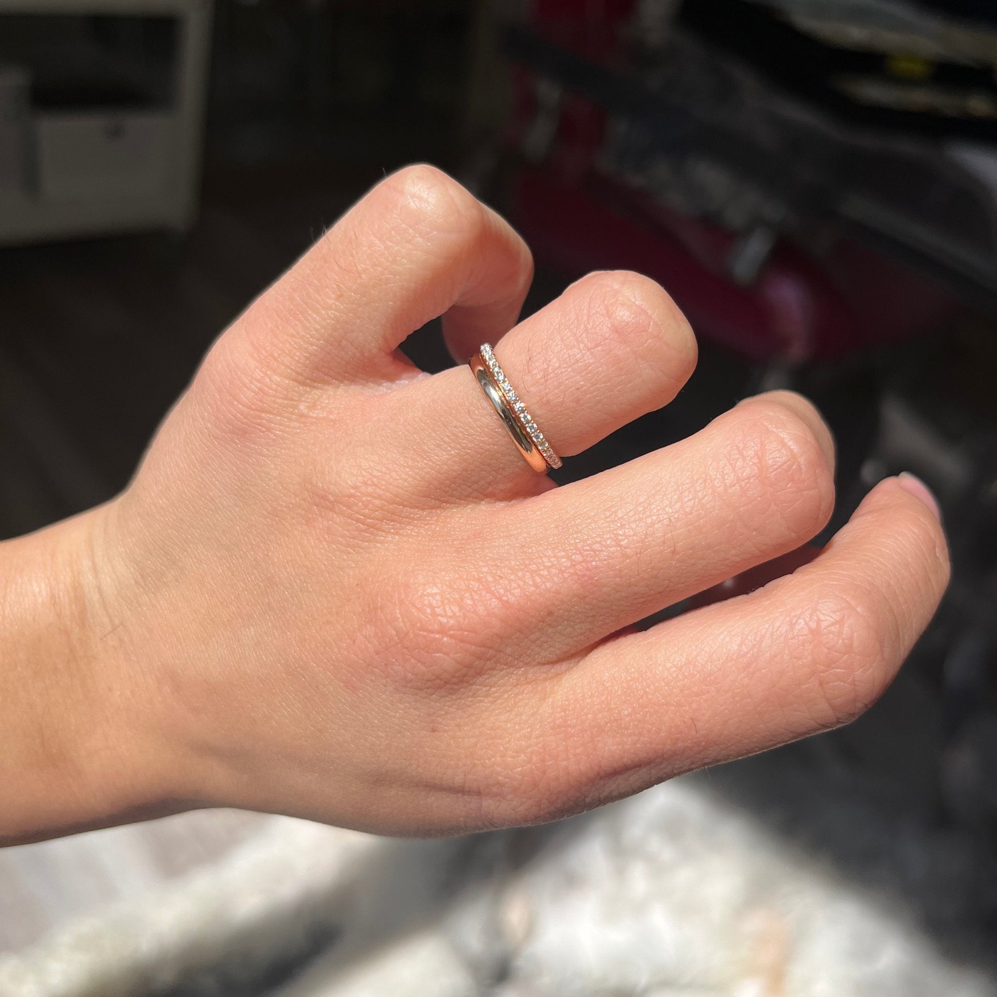 A perfect and simple pave diamond stacker band from our friends at T&Co! Perfect for wearing solo or pairing with another band.