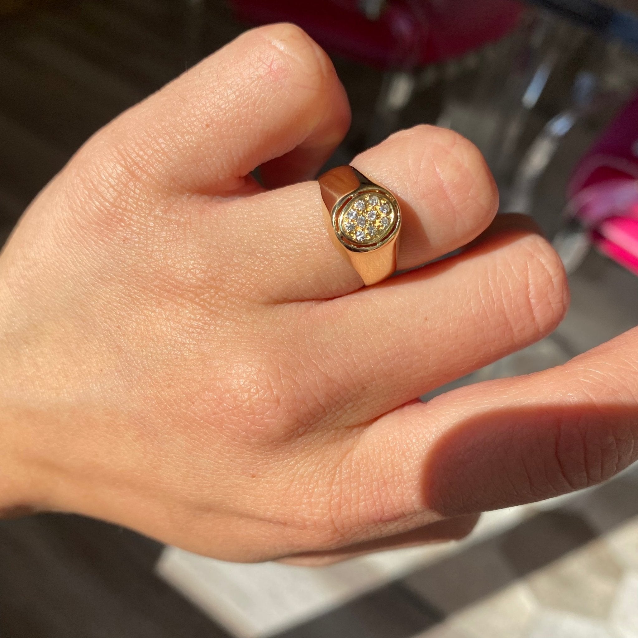 This pave-studded oval top ring is like the sparkly signet of our bold, gold dreams! She’s sweet as pie and a darling addition to your suite of jewels. We love a hefty gold look on the finger, and a touch of sparkle never hurt anybody. The cutouts on the oval top also lend some airiness to the ring that we totally love!