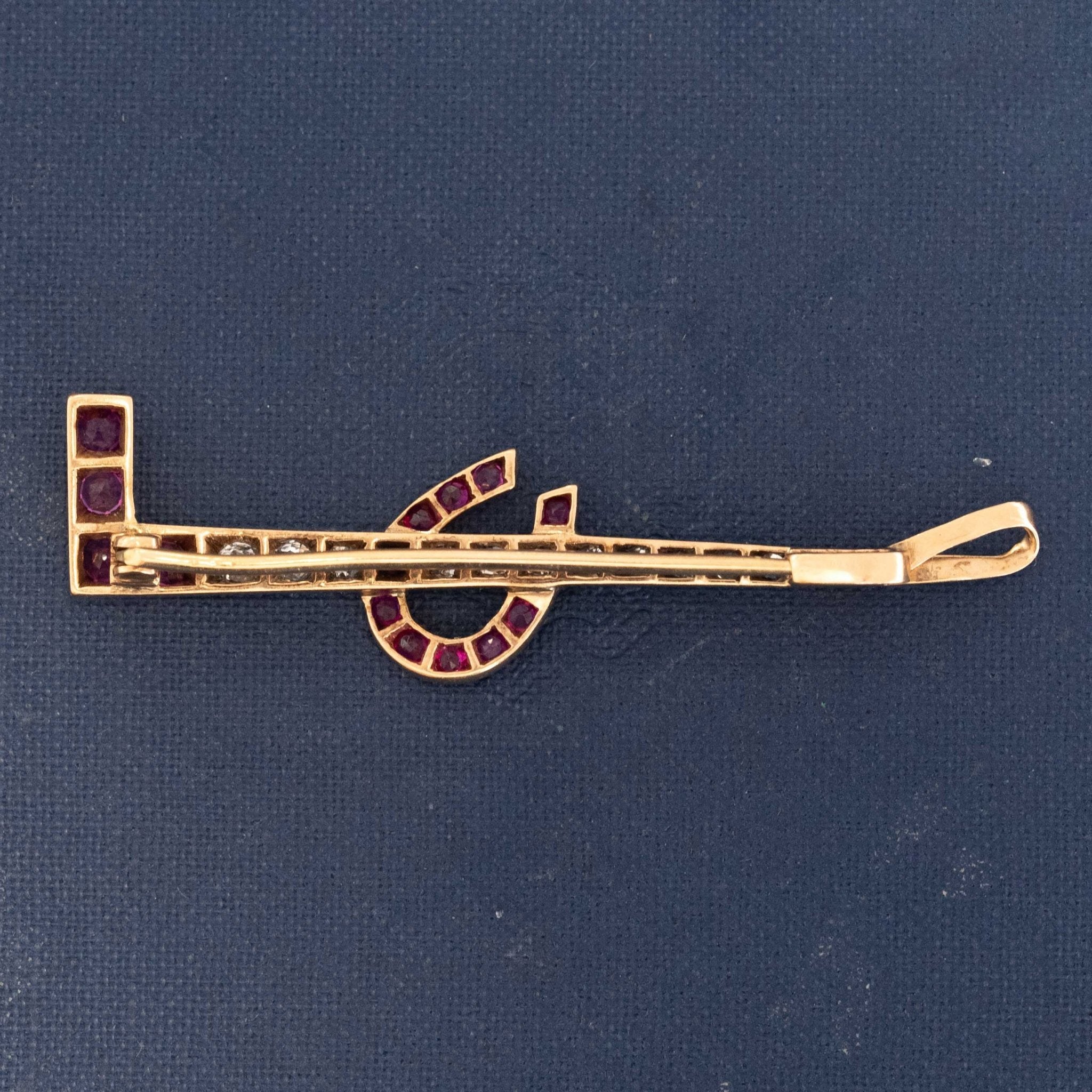1.55ctw Diamond & Ruby Horseshoe/Riding Crop Brooch
