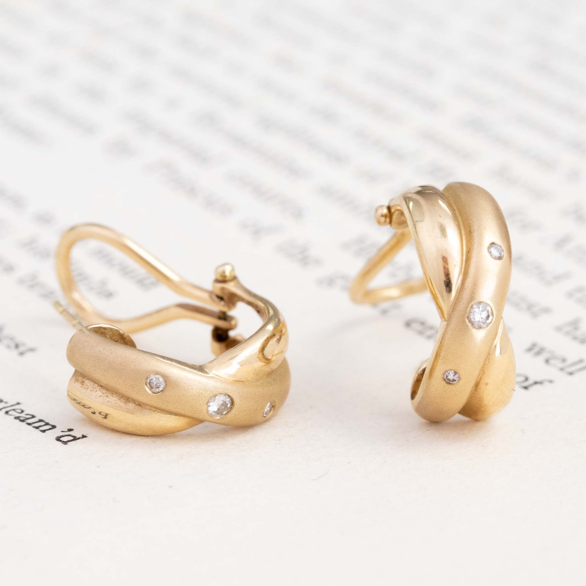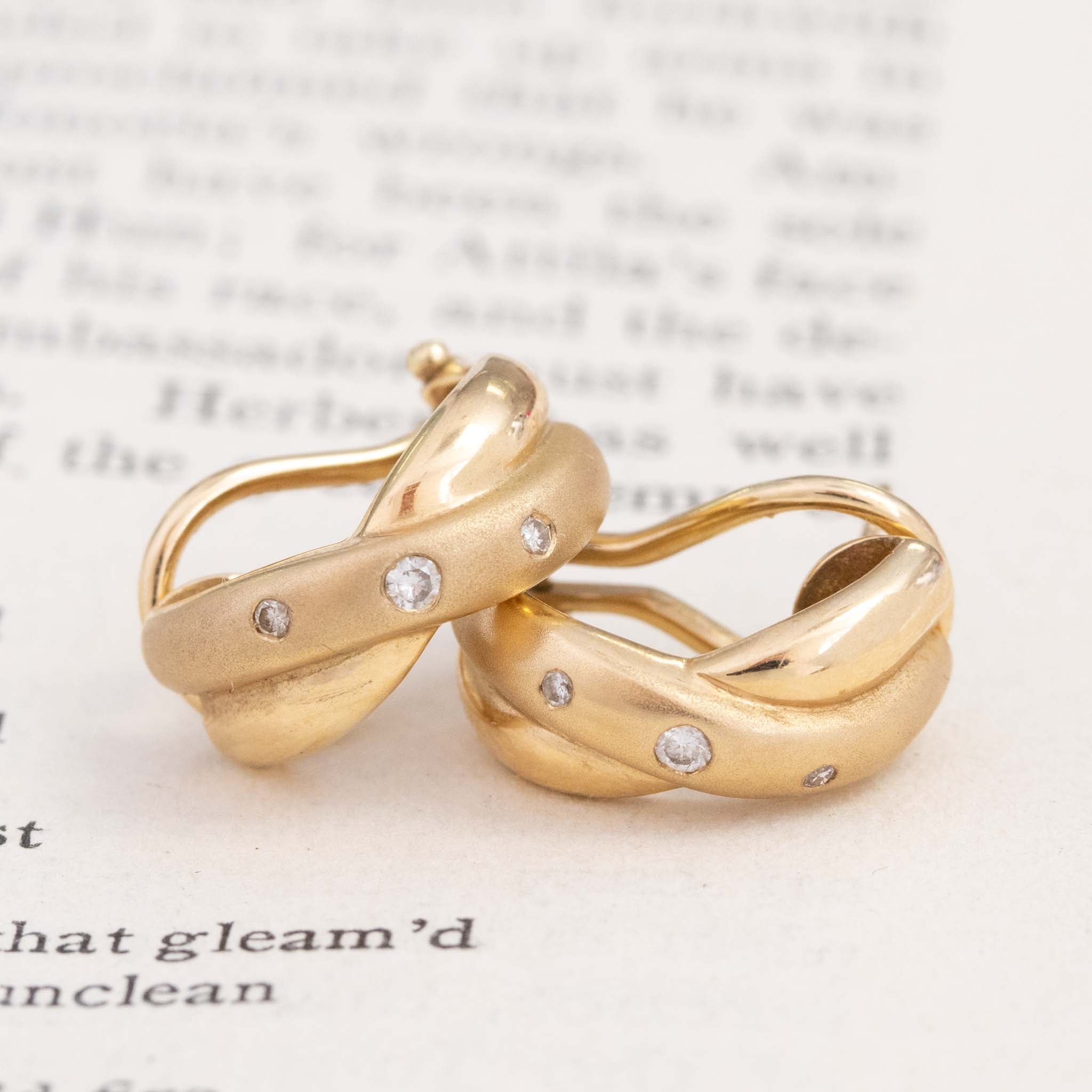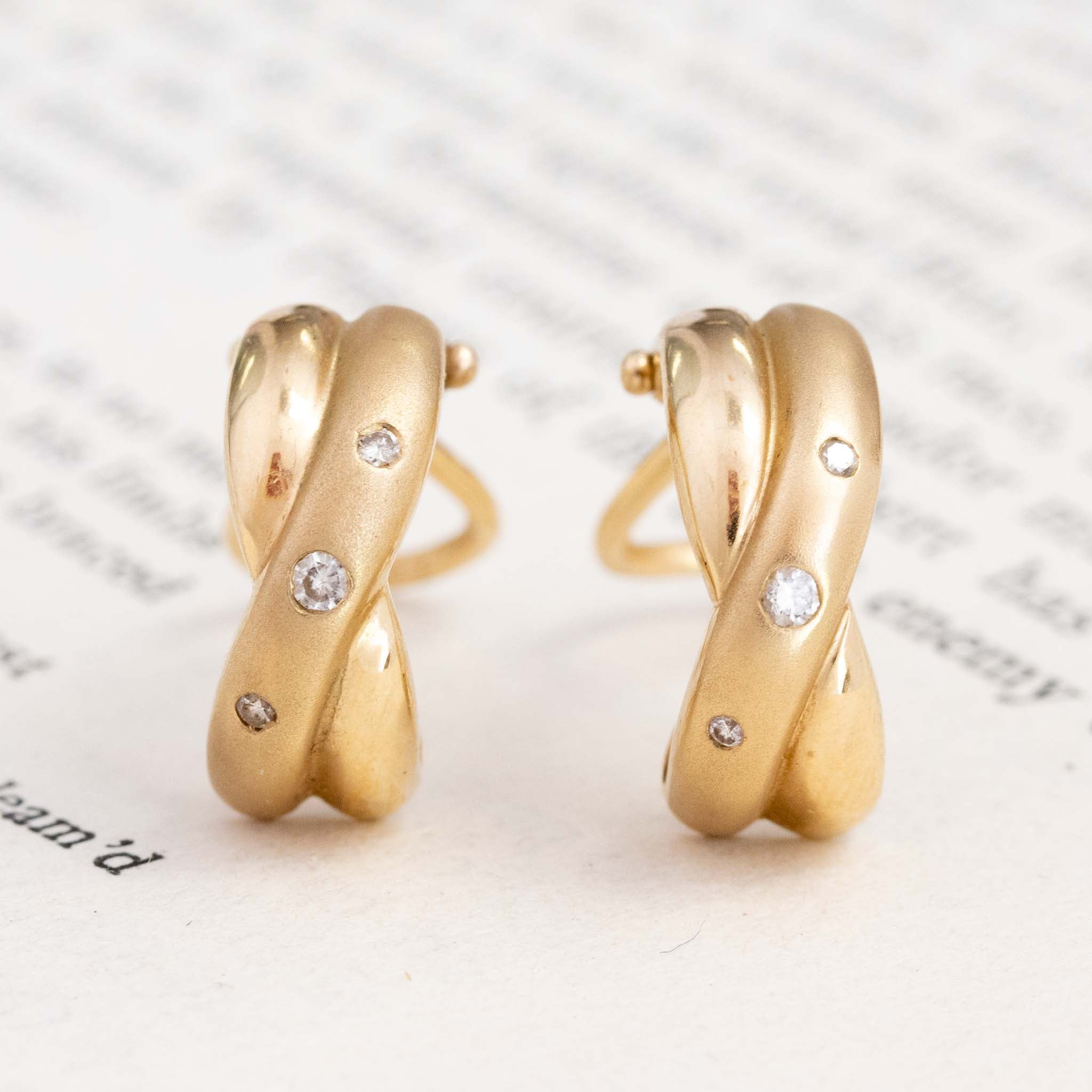Vintage Diamond Twisted Hoop Earrings