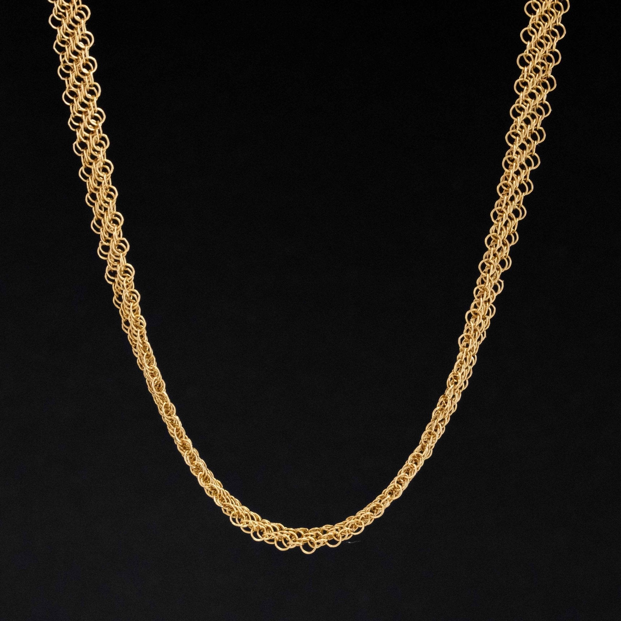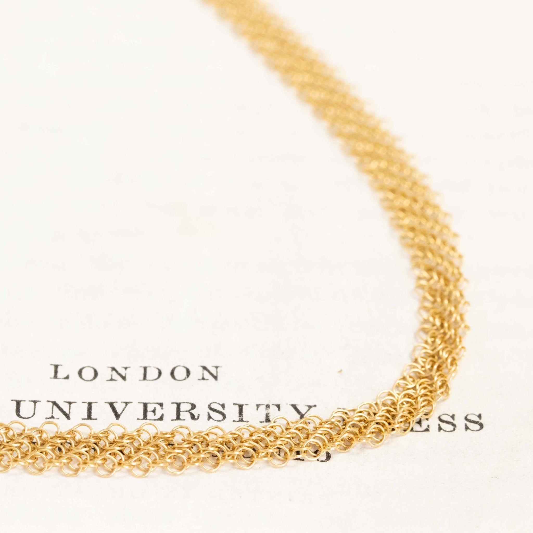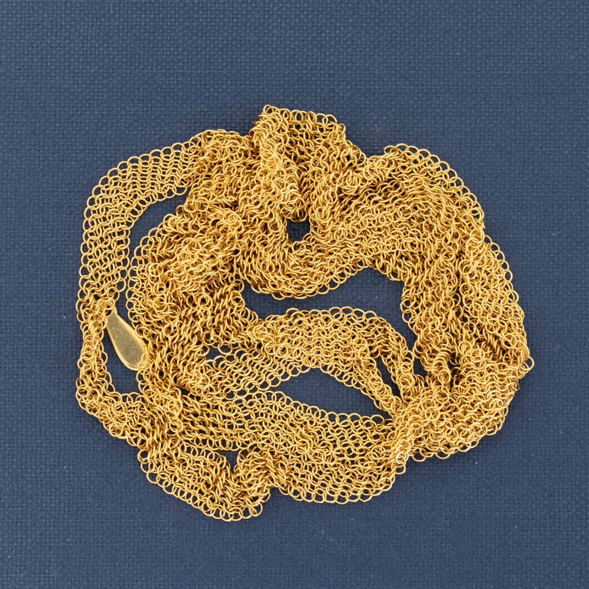 One of the most unique chains from designer Elsa Peretti, a sinuous and luscious mesh of 18kt yellow gold crafted so intricately that is lays and moves like silk. Perfect to wear as-is, or even wear doubled up. Maybe also be strung around a pendant (maybe the open heart pendant?).