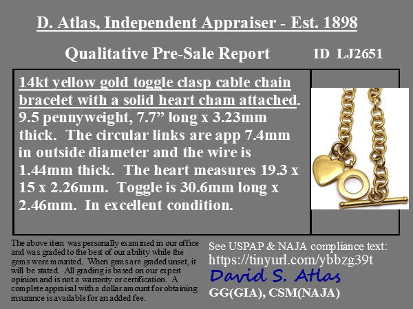 Heart & Toggle Chain Bracelet, 14kt