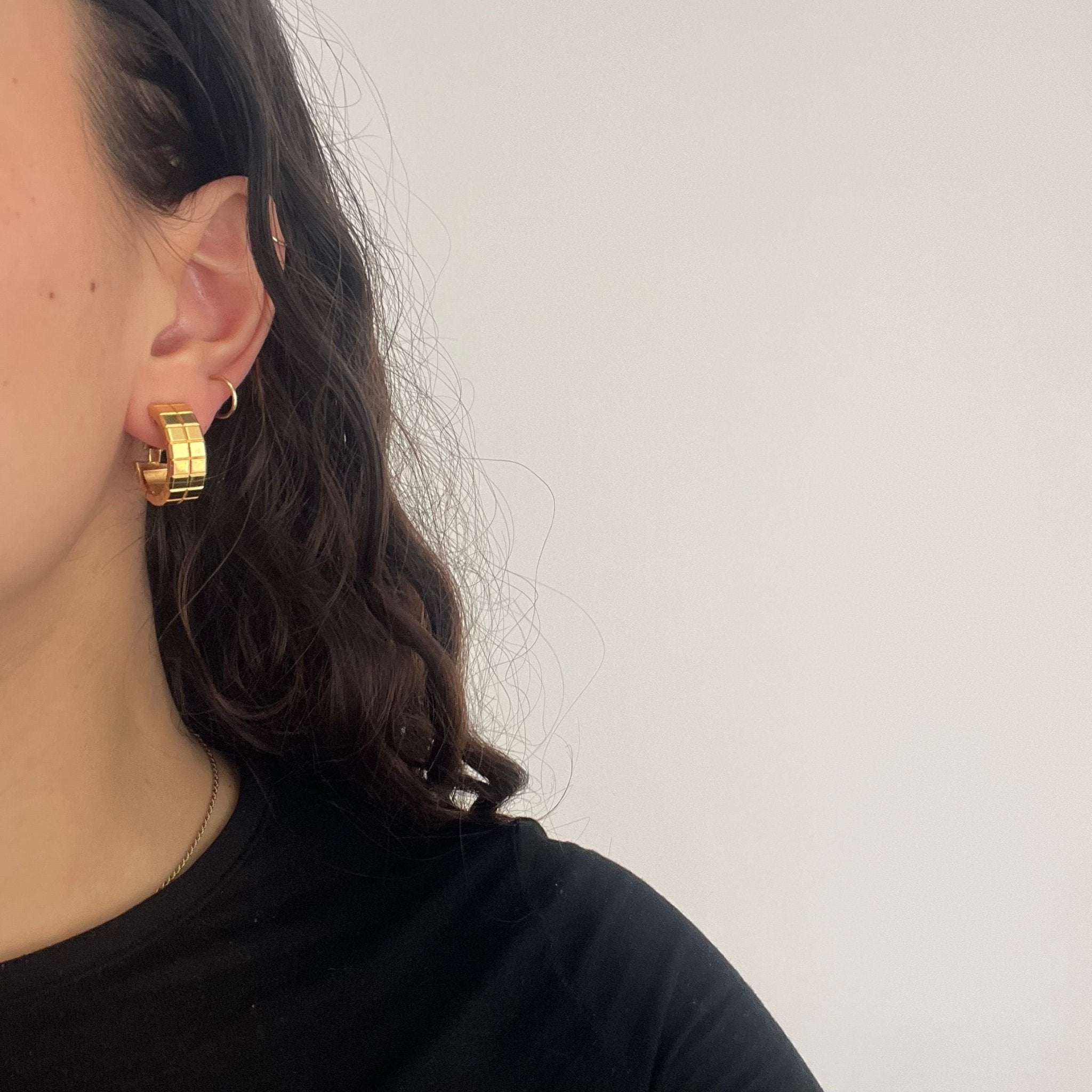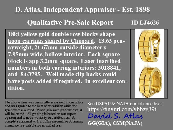 From Chopard's Ice Cube collection, this particular style is no longer available (the single versions are currently available). Just so beautiful and elegant on the ears!