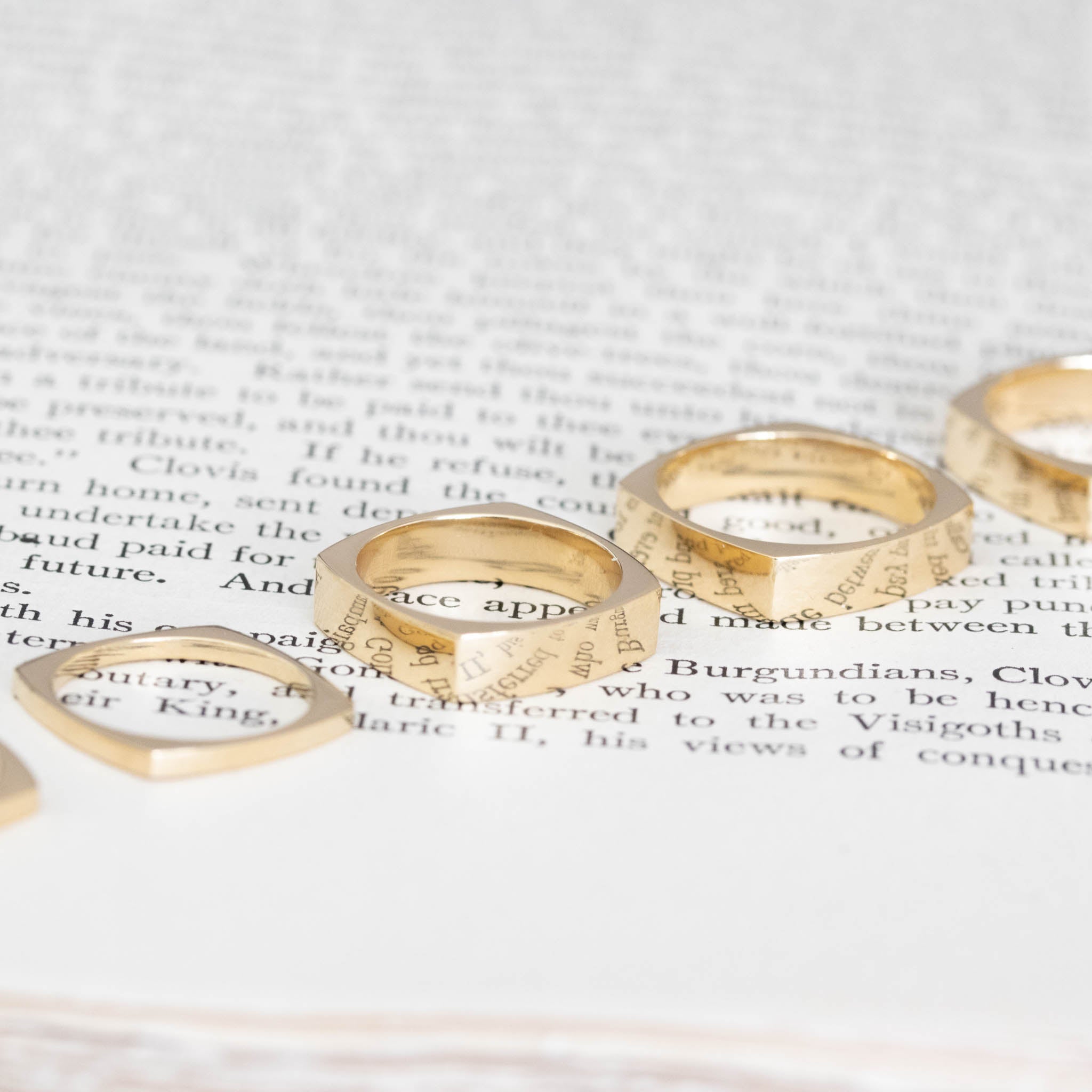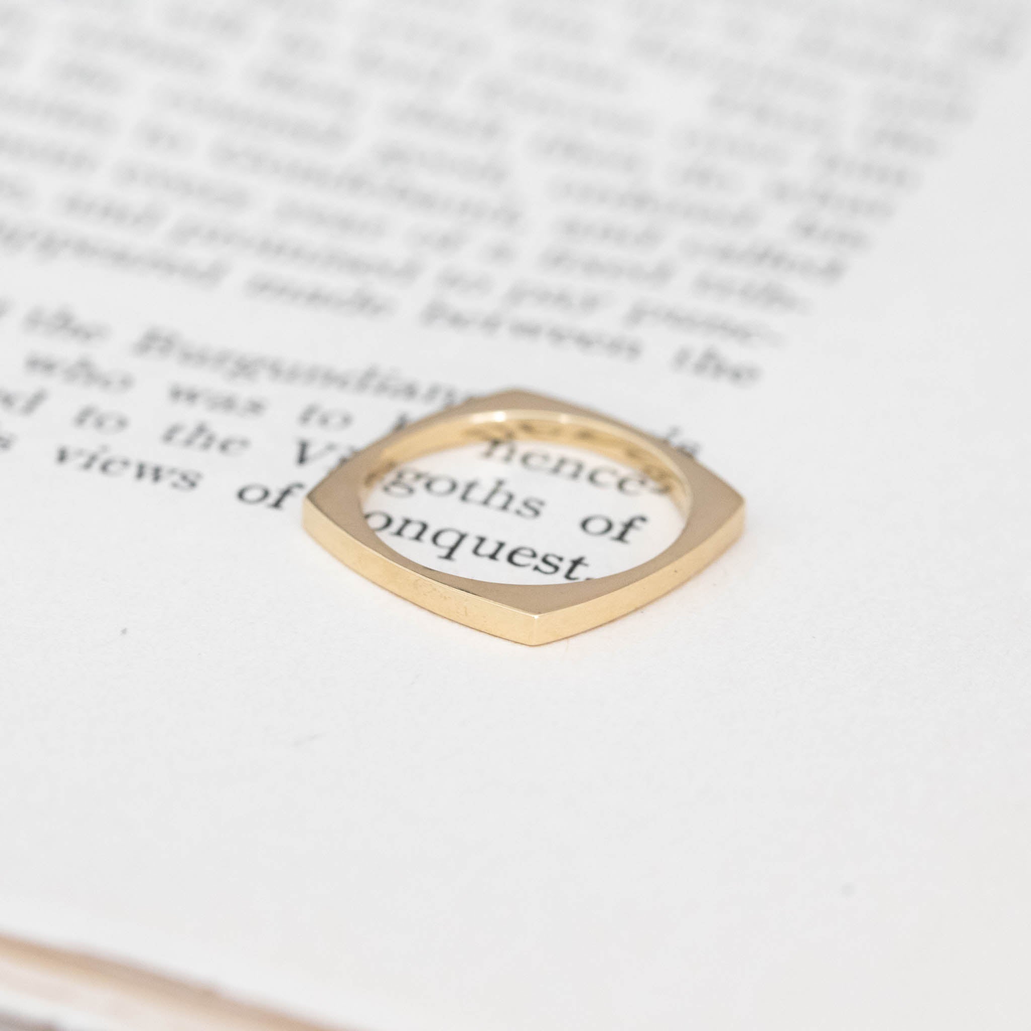 Cast from a vintage set of bands we came across, these square shank gold bands are sleek, bold, and absolutely stunning in 20kt yellow gold. Comfortable on the finger and the coolest vibe. Perfect for daily wear, and stacks well with other bands if that’s your jam!