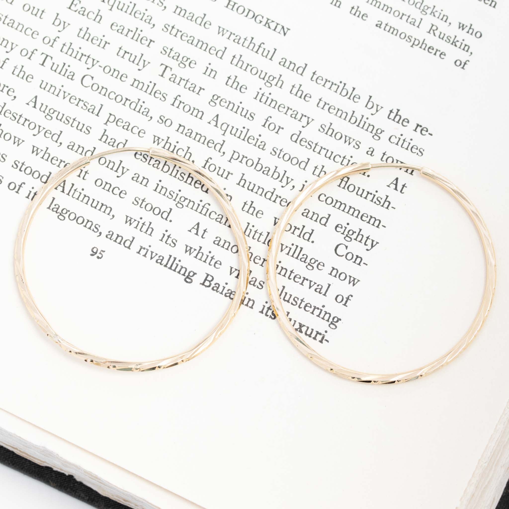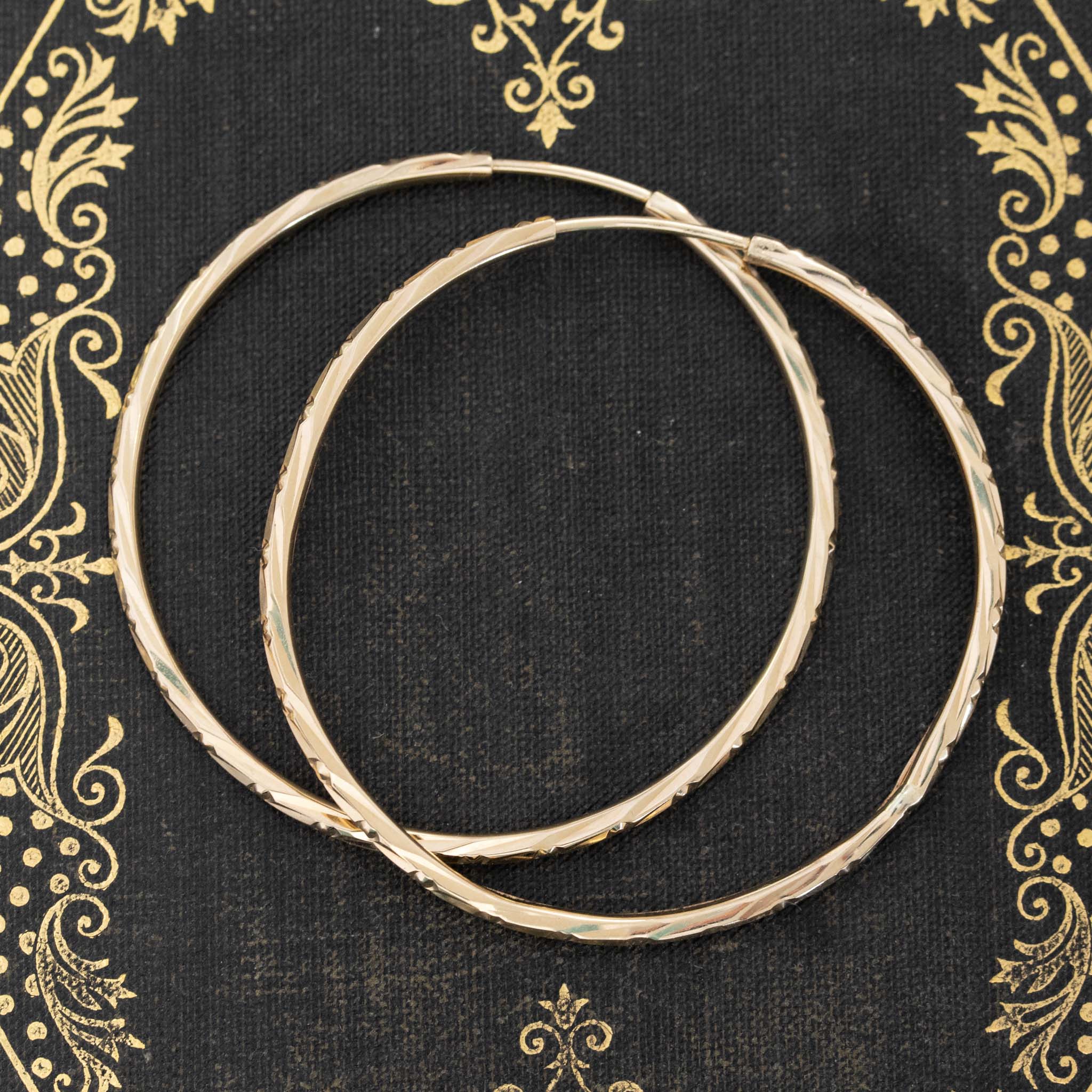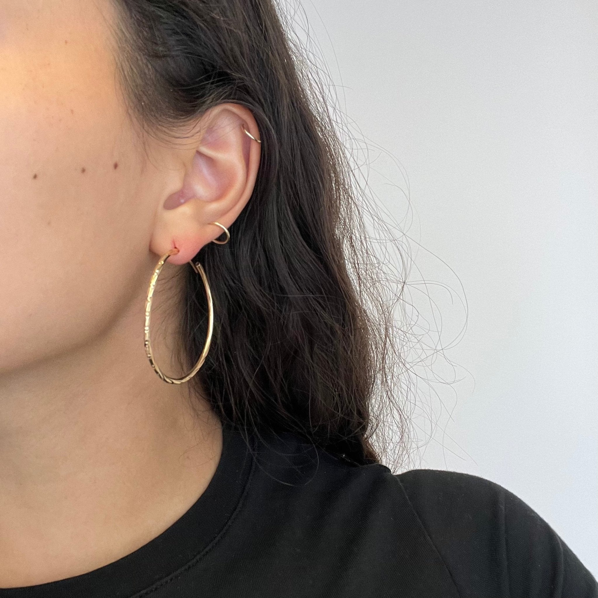 We recently acquired a large parcel of vintage gold hoops, hand selected for how elegant and beautiful they sit on the ears! This one is one of the bigger ones, with a slight texture to it for a little added whimsy.