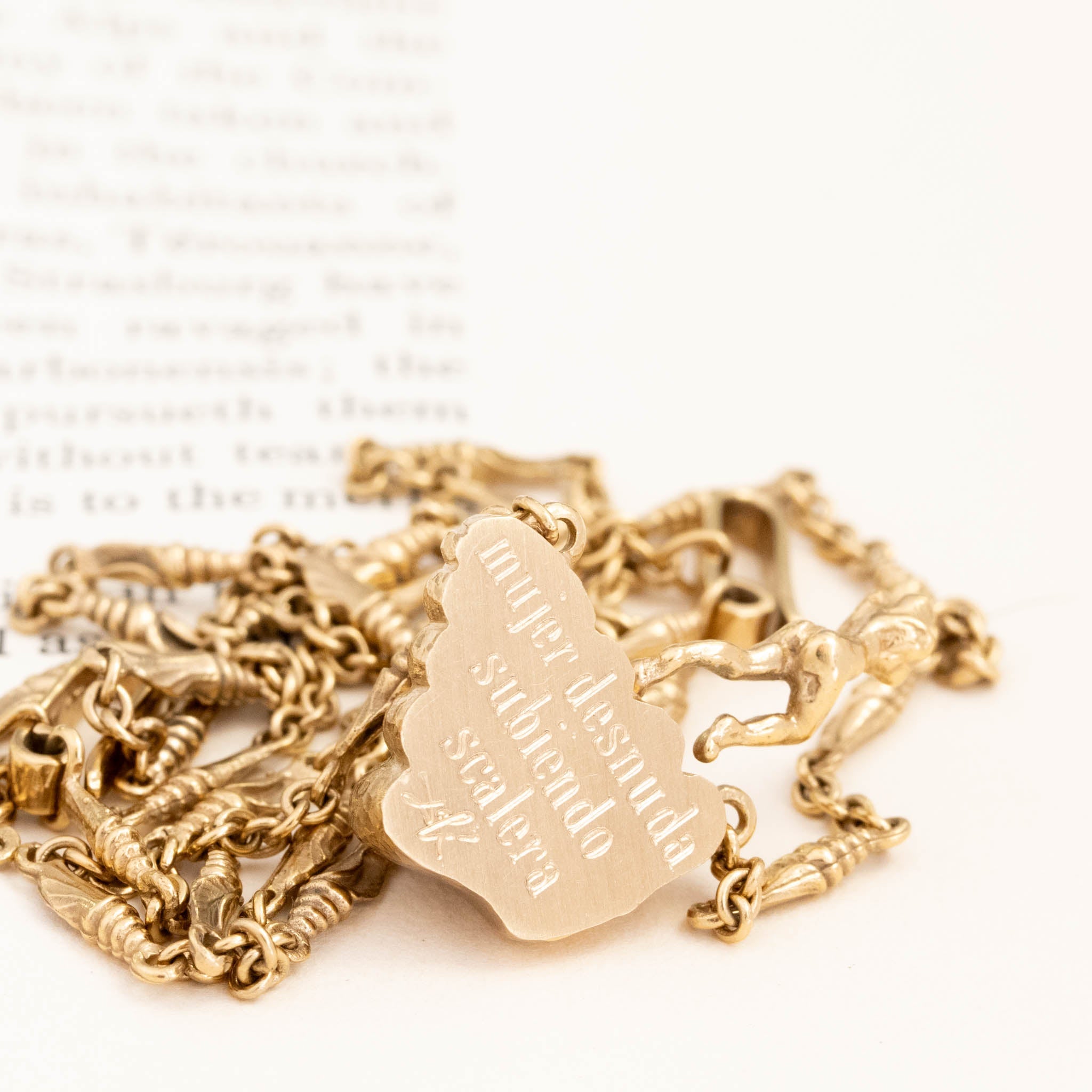 Even more special, this one comes with its original paperwork from 1976! The back of the stair case is engraved "Mujer desnuda subiento escalera"