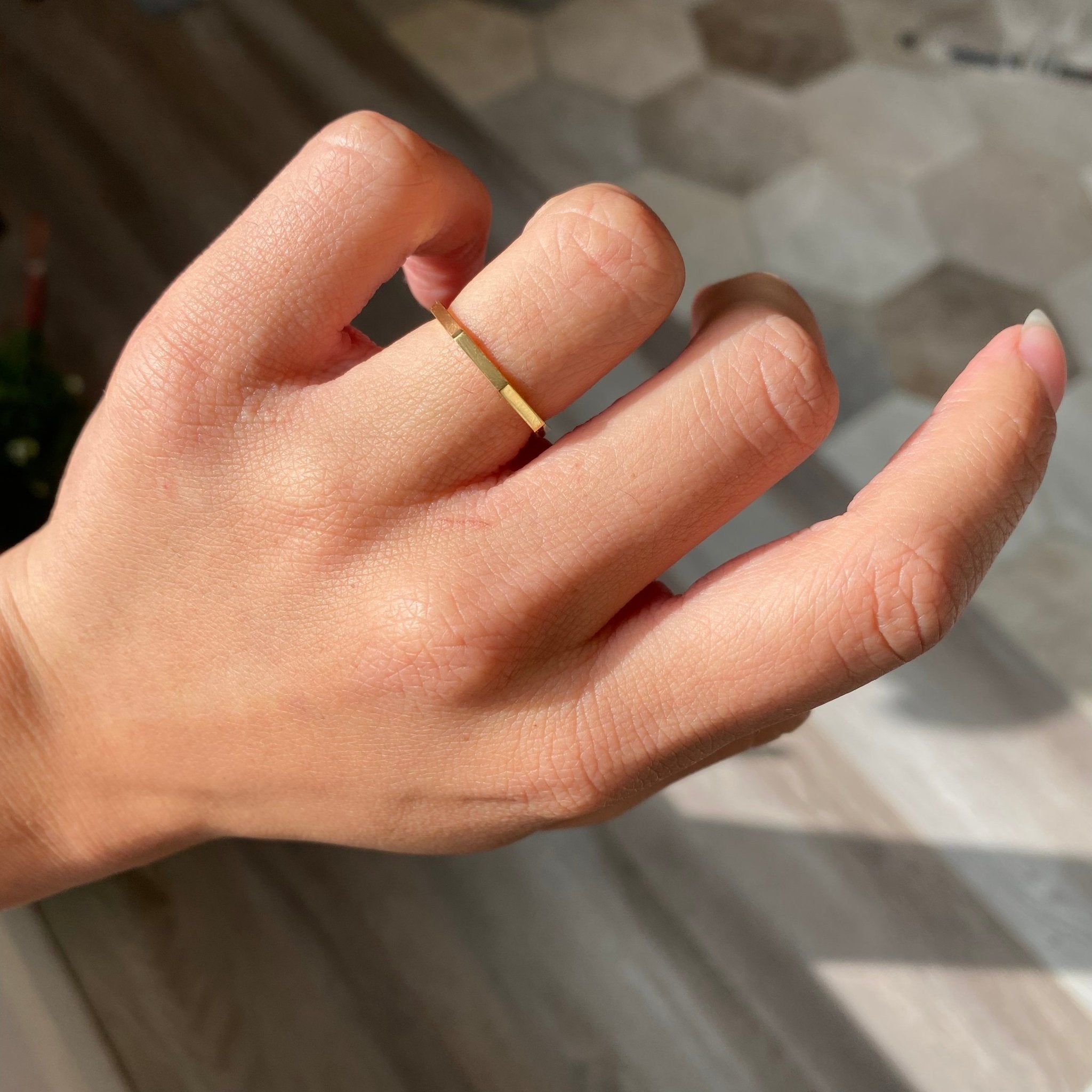 Made in luscious 20kt yellow gold, these guys are the perfect addition to your current band stack or a wonderful spacer to sit in between your engagement ring and wedding band. We absolutely love how they came out - sleek and geometric, but still a classic plain band that can be worn with ease.