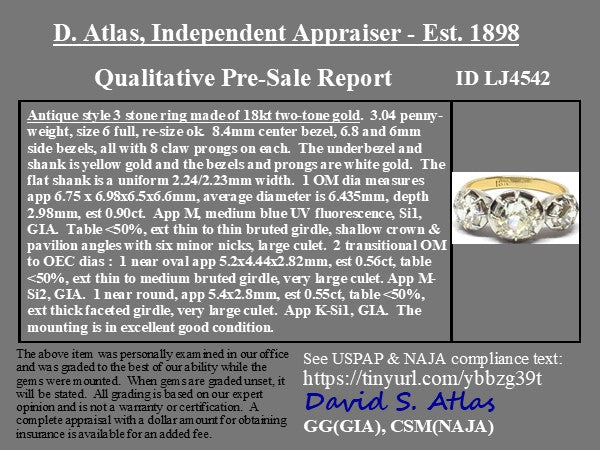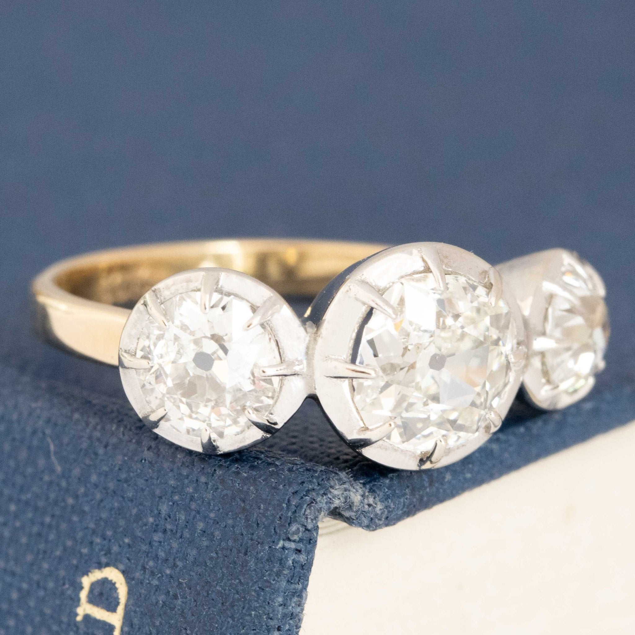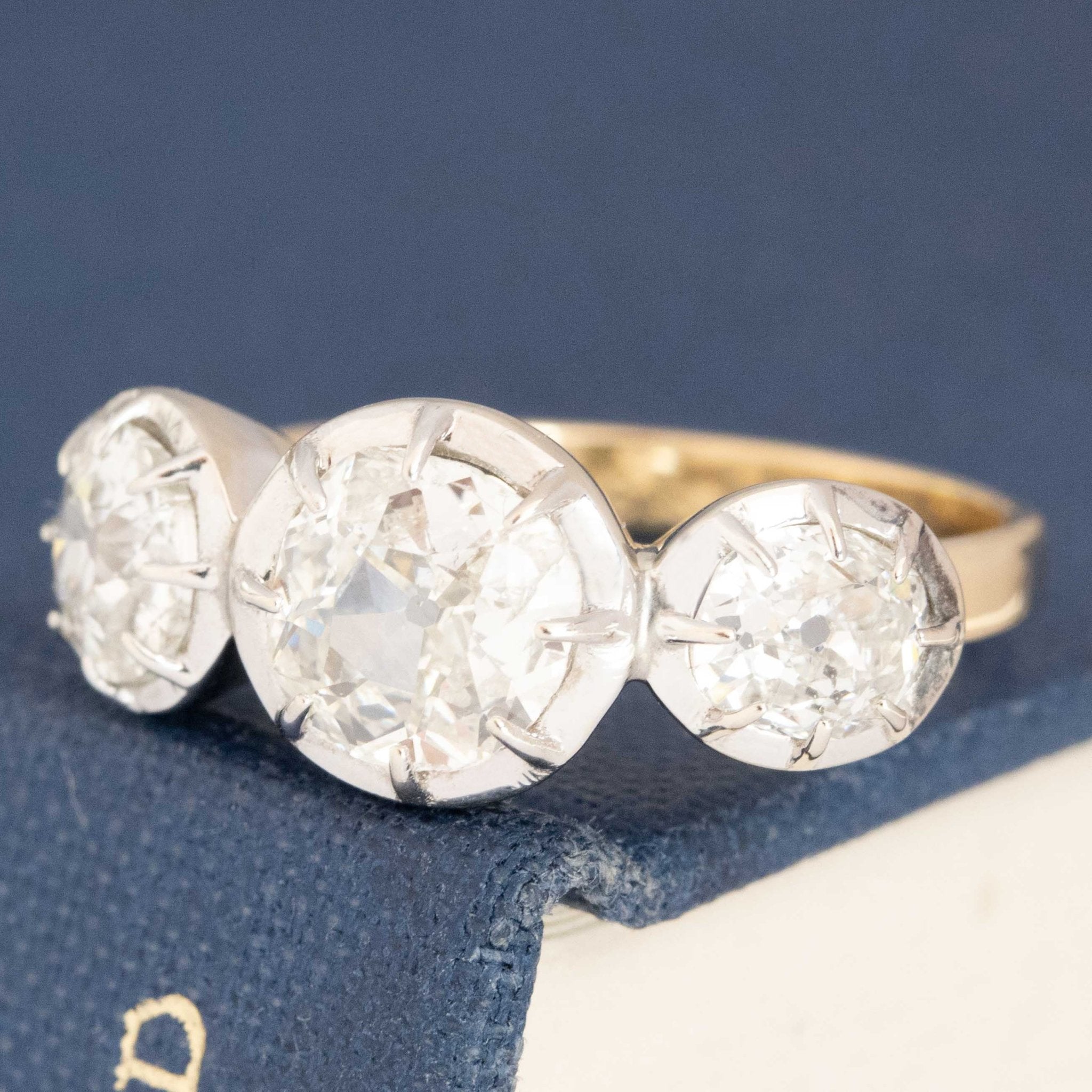2.01ctw Old European Cut Diamond Collet Trilogy Ring
