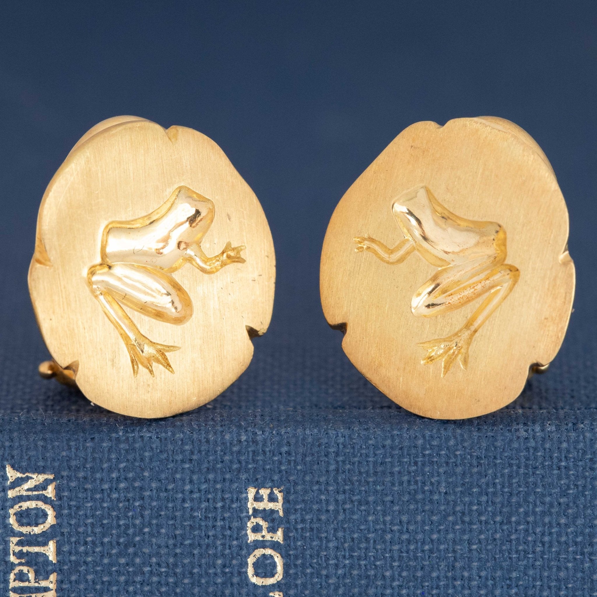 RARE Vintage Frog on Lilly Pad Earrings, by Tiffany & Co.