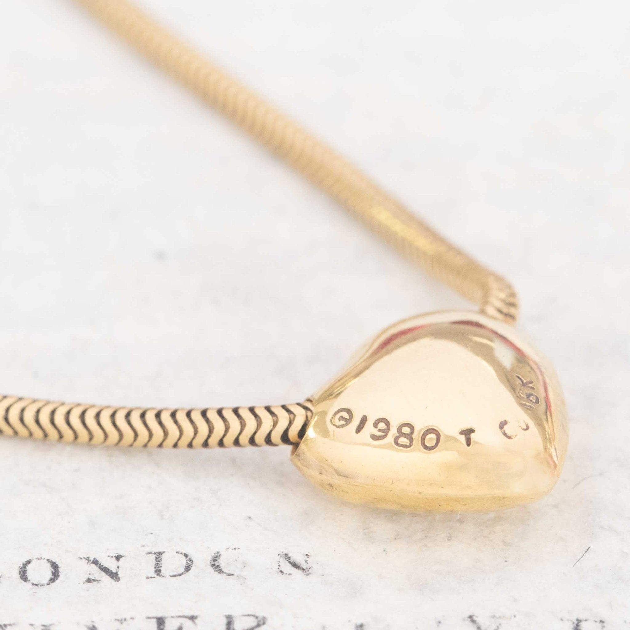 A rarer find for us - this vintage heart necklace from Tiffany & Co, set with a slighly askew heart on a thicker snake chain.  Unmistakably vintage